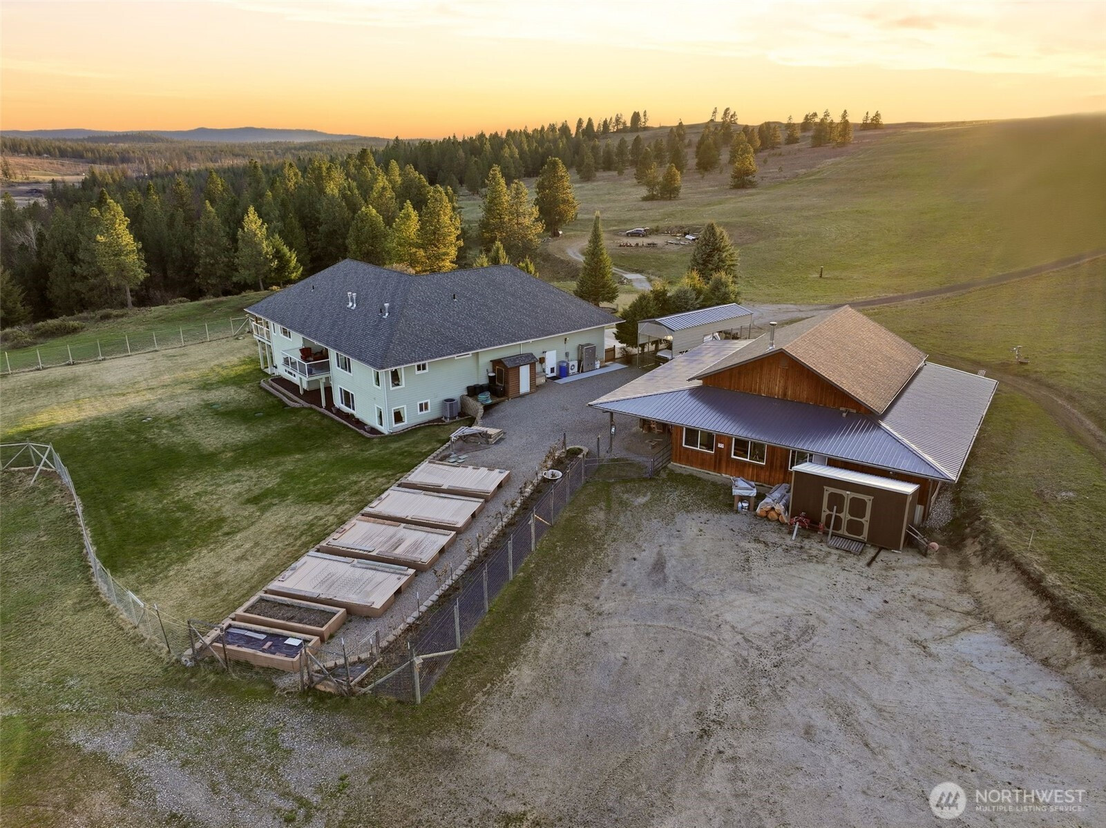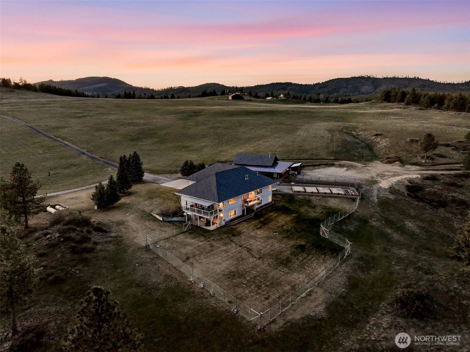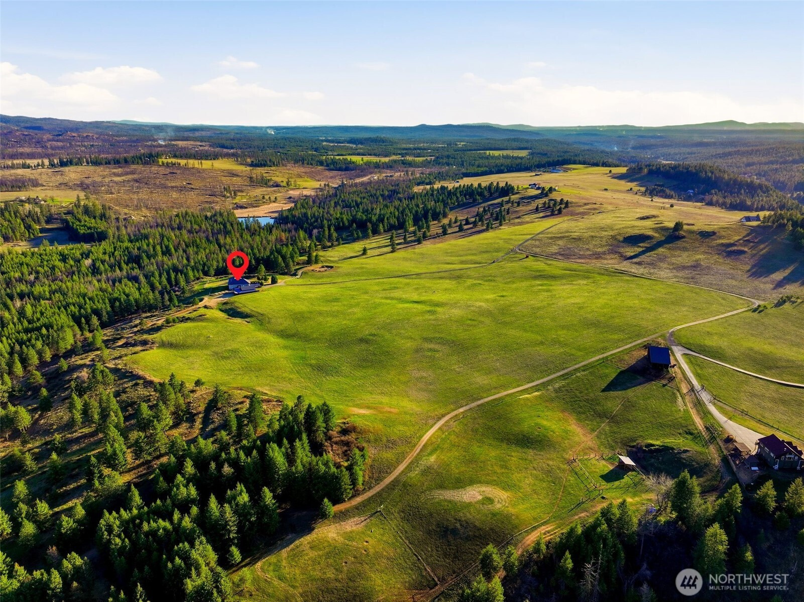 Gated and offering end-of-the-road privacy this 180 acre property has been thoughtfully designed and cared for as a secluded and self-sufficient homestead. Positioned intentionally at the edge of open ground and forest, the 4,000+sqft home offers unobstructed views of Mt. Spokane visible from nearly every room and several covered decks. The home features 3 spacious primary suites, ideal for multigenerational living along with a daylight basement complete with its own kitchenette. Intentional storage is integrated throughout and every space reflects function and efficiency without compromise. The land itself offers a mix of open acreage suitable for grazing, mature timber, space for productivity or recreation including a private pond, direct access to adjacent public land, and additional building sites. In addition to the oversized, climate controlled 3-car garage; this property boasts a 2200+sf, insulated, climate controlled shop with dedicated workspace, storage and a firing range with added ventilation. The high-fenced backyard and raised garden bed area provide added functionality and sustainability. Whether you are seeking a private retreat, working acreage, or a legacy-in-the-making, this Northeast Washington property is a rare opportunity with a multitude of possibilities all less than 30 miles from North Spokane.