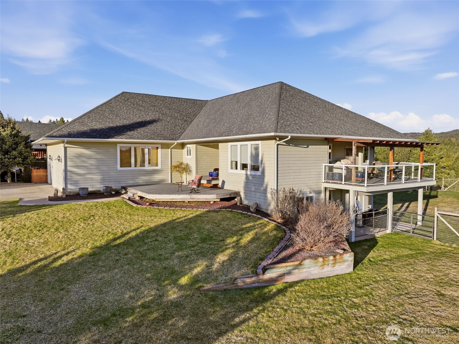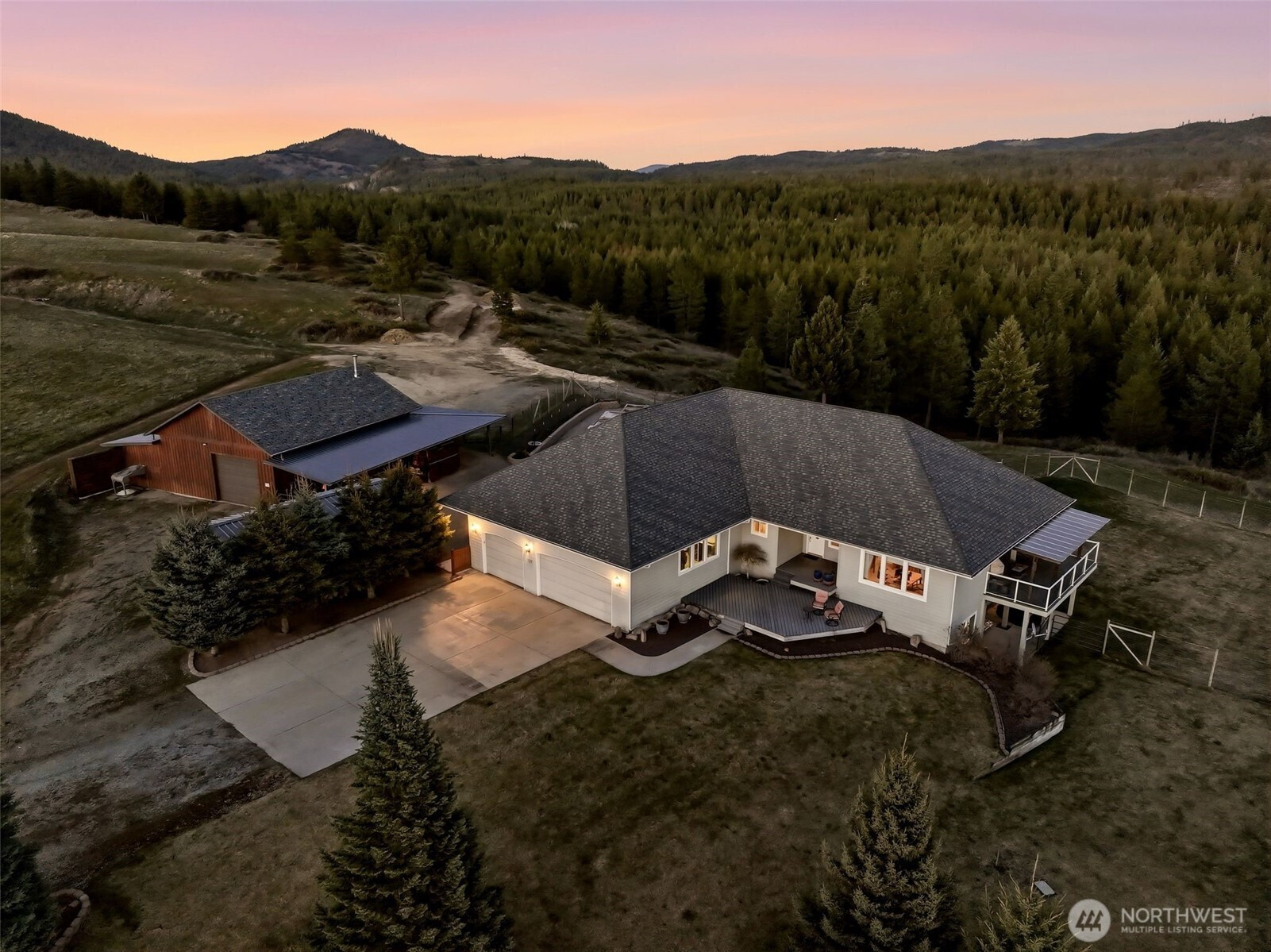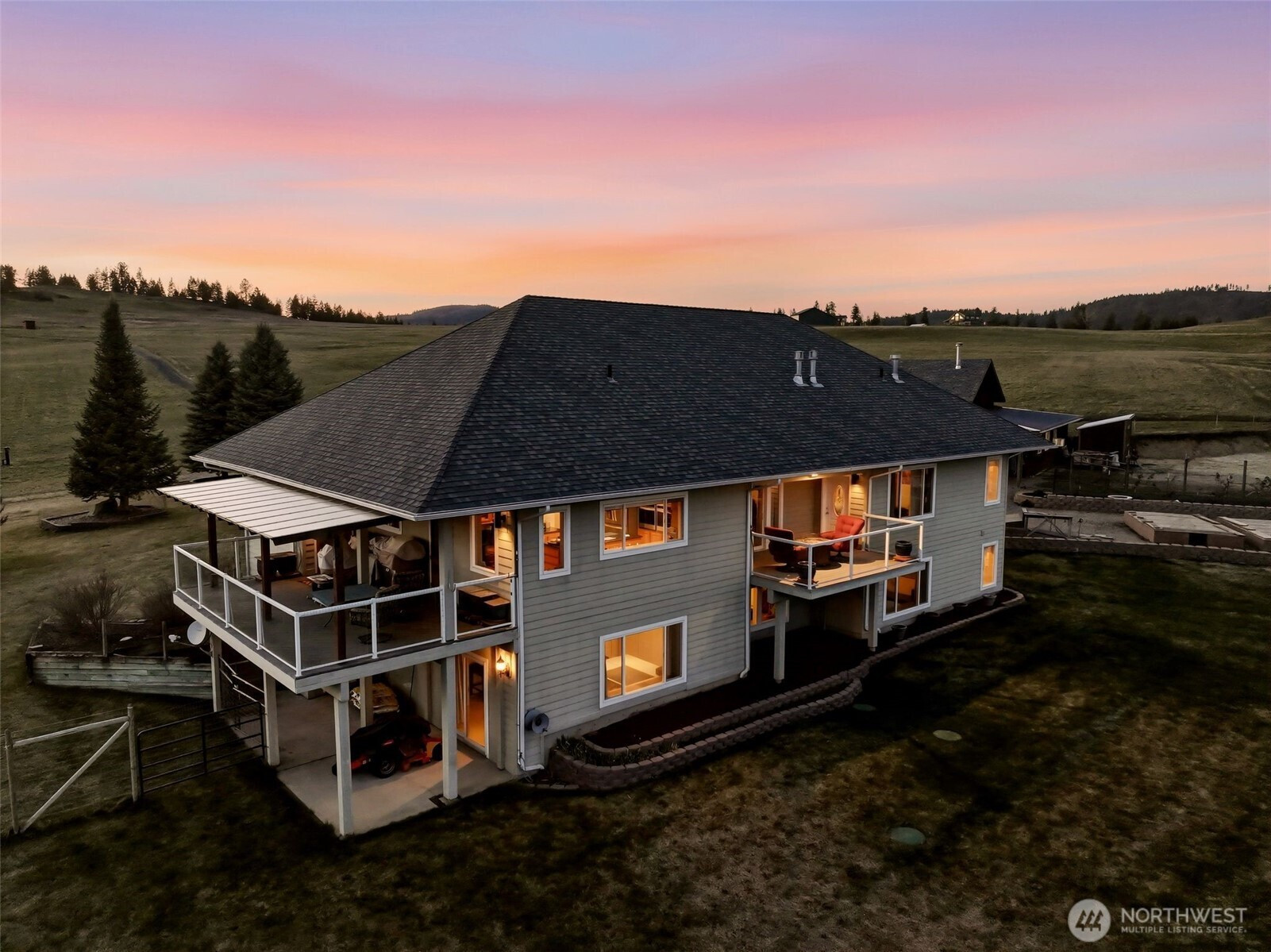 Gated and offering end-of-the-road privacy this 180 acre property has been thoughtfully designed and cared for as a secluded and self-sufficient homestead. Positioned intentionally at the edge of open ground and forest, the 4,000+sqft home offers unobstructed views of Mt. Spokane visible from nearly every room and several covered decks. The home features 3 spacious primary suites, ideal for multigenerational living along with a daylight basement complete with its own kitchenette. Intentional storage is integrated throughout and every space reflects function and efficiency without compromise. The land itself offers a mix of open acreage suitable for grazing, mature timber, space for productivity or recreation including a private pond, direct access to adjacent public land, and additional building sites. In addition to the oversized, climate controlled 3-car garage; this property boasts a 2200+sf, insulated, climate controlled shop with dedicated workspace, storage and a firing range with added ventilation. The high-fenced backyard and raised garden bed area provide added functionality and sustainability. Whether you are seeking a private retreat, working acreage, or a legacy-in-the-making, this Northeast Washington property is a rare opportunity with a multitude of possibilities all less than 30 miles from North Spokane.