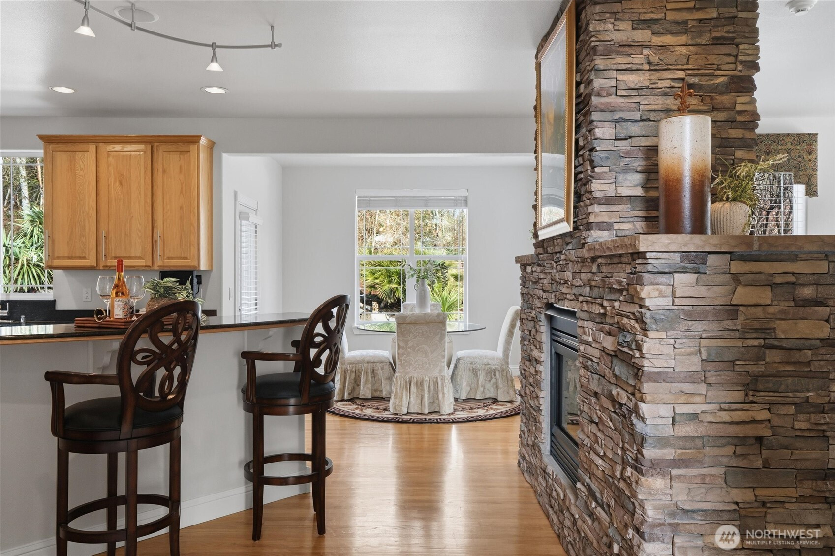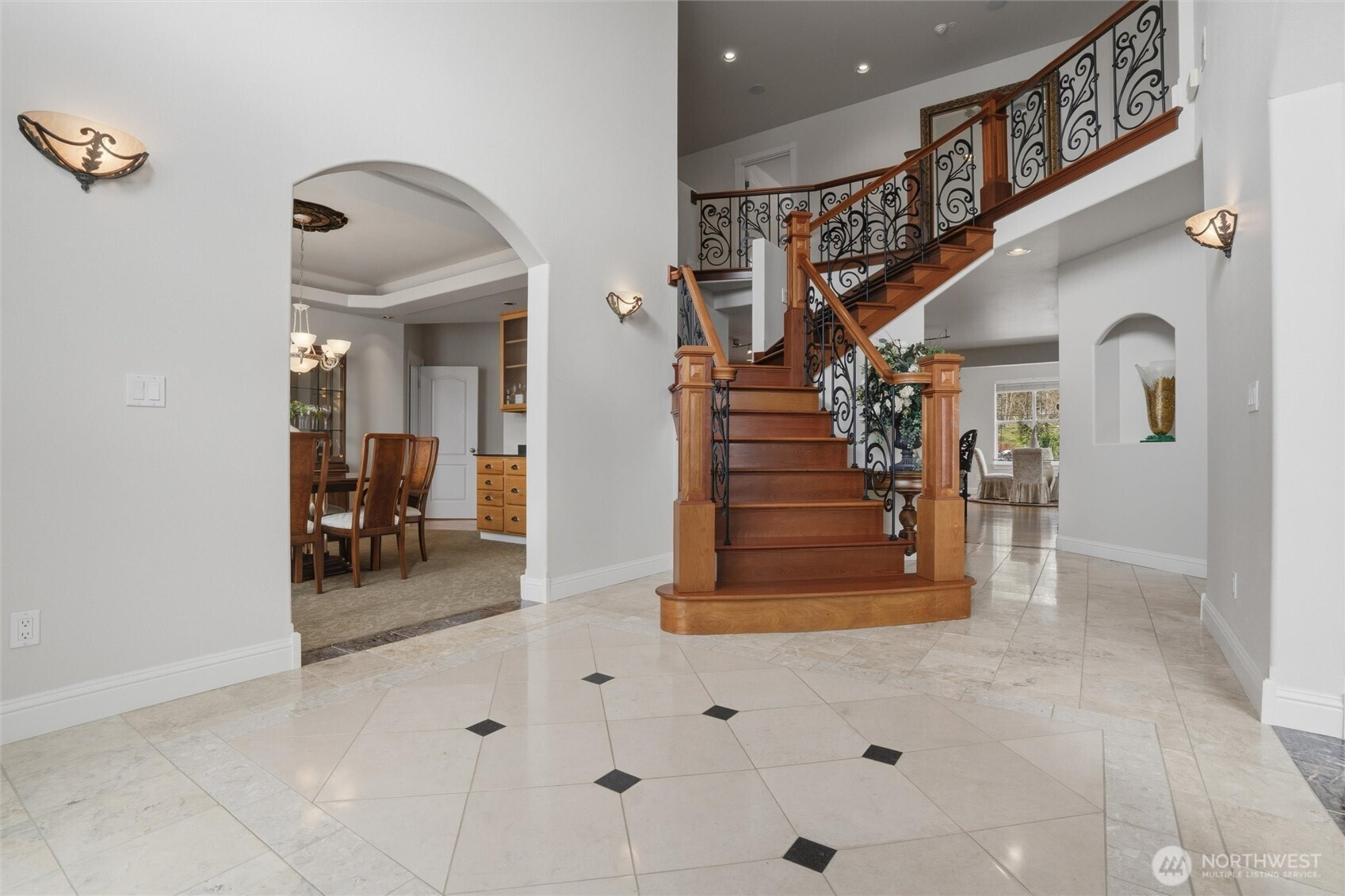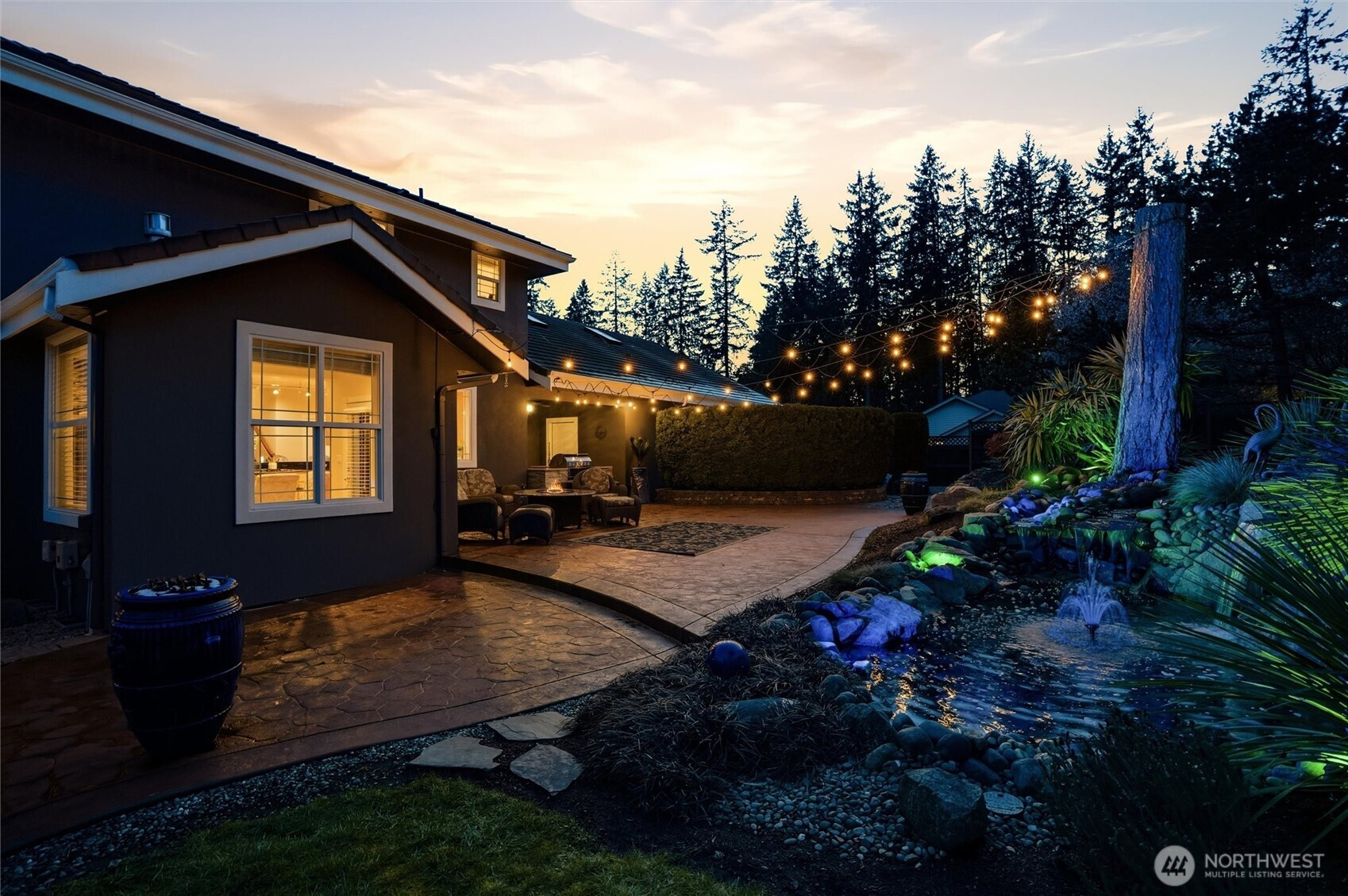 First time on the resale market, this exceptional two-story estate is located within a private upscale gated community offering exclusive beach access, kayak and paddleboard storage steps from the water’s edge and a picnic table to enjoy a waterside bite. This stunning residence welcomes you through custom iron entry doors into a grand foyer showcasing elegant travertine and marble flooring. Your eyes are immediately drawn upward to the breathtaking Brazilian cherry wood and wrought iron double staircase, a true showpiece that sets the tone for the home’s refined design. Entertain with ease in the formal dining room with built-in storage and serving counter, perfect for hosting gatherings. Just off the entry, the sunny sitting room provides an inviting space for conversation or could easily serve as a charming music room. The spacious kitchen is a chef’s dream, featuring stainless steel appliances, double drawer dishwasher, trash compactor, gas cooktop, granite countertops, upgraded oak cabinetry and hardwood flooring, served by a large pantry. A thoughtfully designed custom laundry room makes everyday tasks feel effortless. Nearby, a large office offers the perfect work-from-home environment. A cozy double-sided fireplace connects the kitchen and living room, creating warmth and ambiance for relaxing evenings. The private back yard hosts an outdoor kitchen and a beautiful water feature to unwind by. The Luxurious primary suite ends the day in style. Your new home is calling!