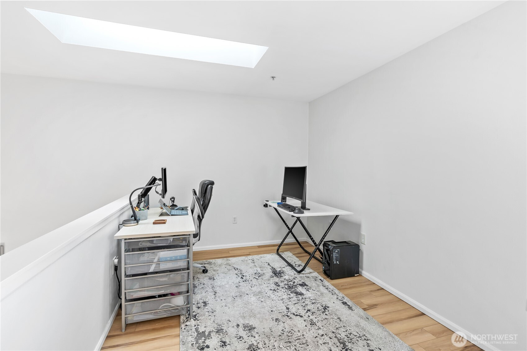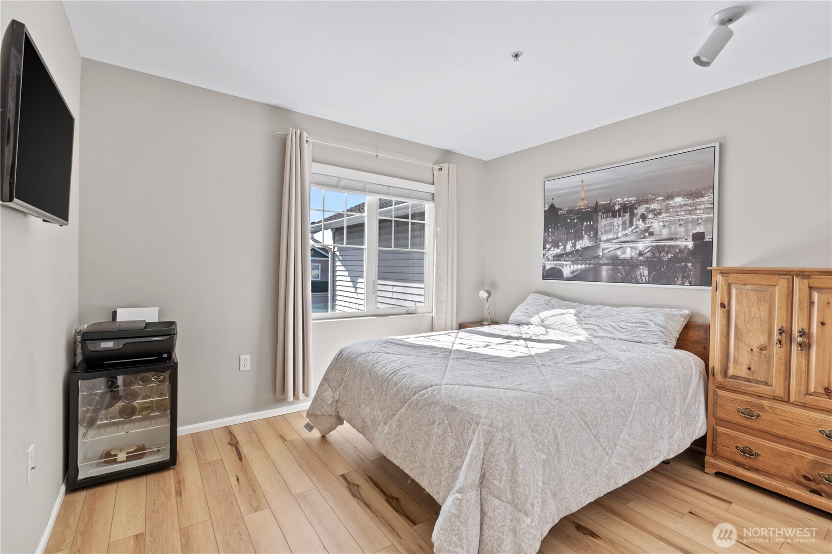 Easily convert to 3bed home! HOA includes lawn, sewer, & water w/dues. Gated community! Fully pre-inspected 2-bedroom, 2.5-bath home offers the perfect blend of style, comfort, & convenience. Vaulted ceilings & expansive windows, filling the space w/ natural light. Hardwood floors throughout the main level, while LVP flooring upstairs adds durability & modern appeal. Kitchen features white cabs, tile countertops, & stainless appliances, flowing into the dining & living areas. Main-floor primary boasts a full tub, shower, & upgraded walk-in closet. Upstairs, loft area leads to a guest bed & bath for added flexibility. Enjoy a privacy deck out back. Ac Included! Top-rated schools, shopping, exercise, & dining just minutes away.