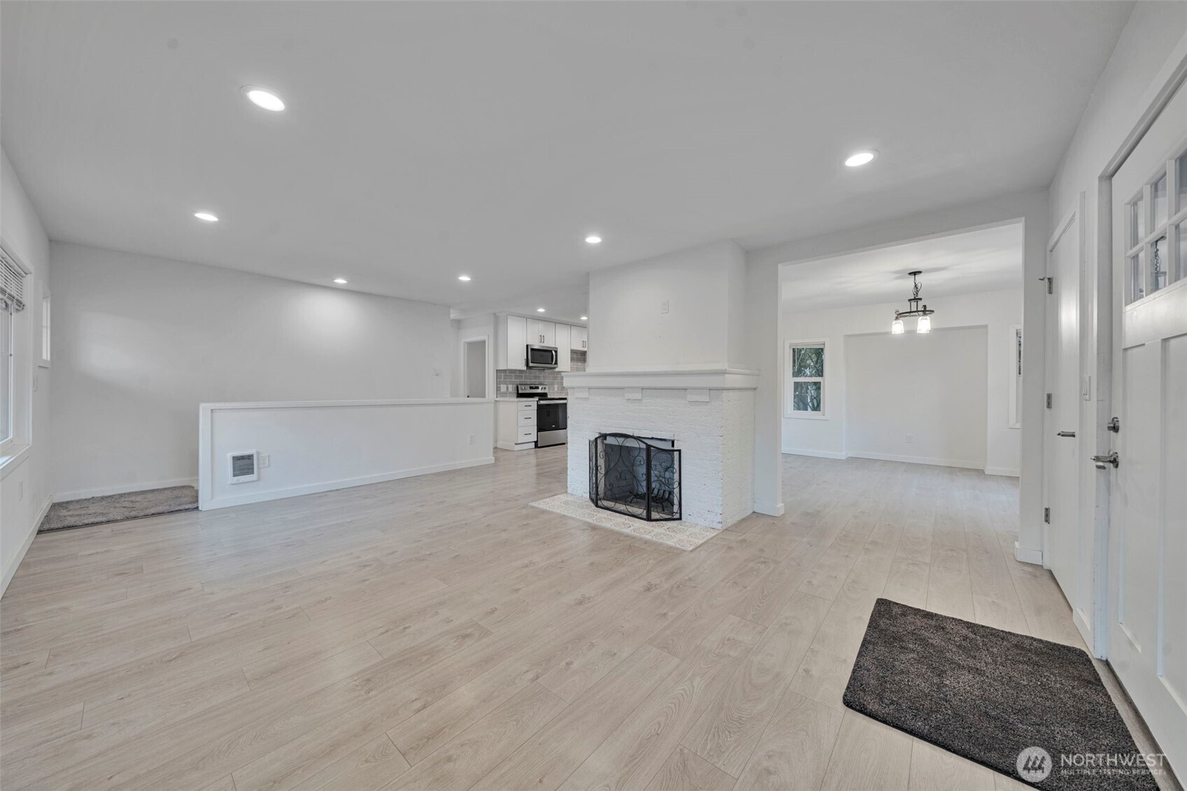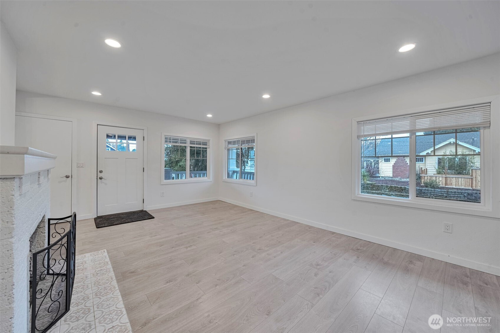 This charming, fully updated Craftsman features a welcoming west-facing wrap-around porch and thoughtfully refreshed interiors throughout. Enjoy upgraded millwork, laminate hardwood flooring, carpet, and renovated bathrooms. The main level offers a spacious, light-filled kitchen, a formal dining room, and a primary suite with an updated 3/4 bath. An additional bedroom and full bath provide flexible options for guests or home office use. The finished lower level includes two additional bedrooms with a 3/4 bath. Outside, a private patio and fenced yard create an ideal space for relaxing. Located in a desirable neighborhood close to amenities, this home blends classic Craftsman character with modern comfort.
