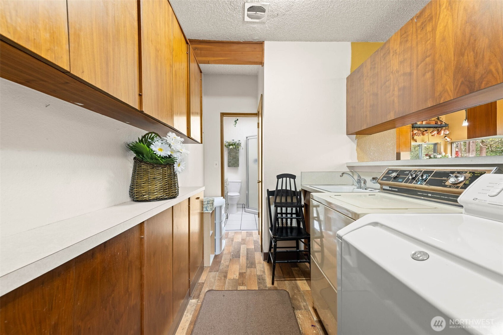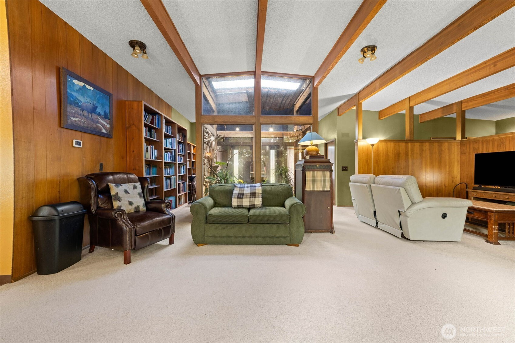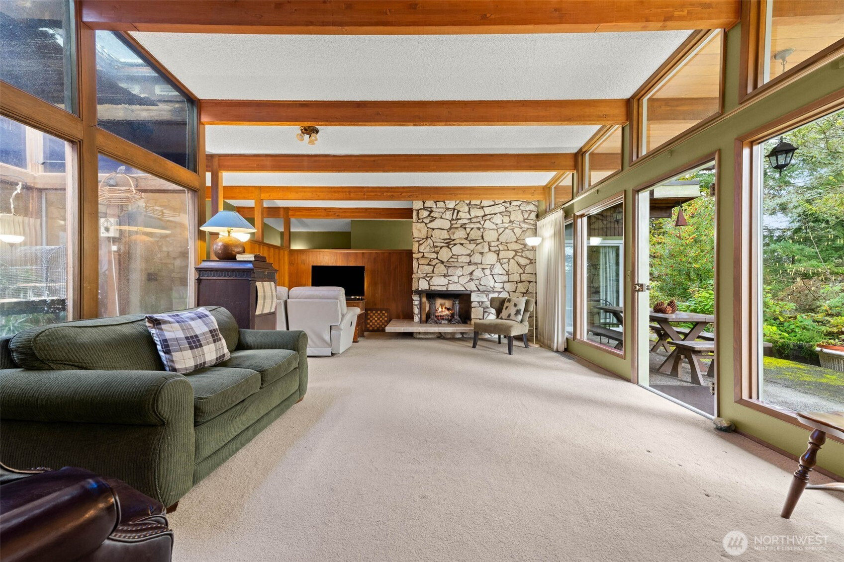 Welcome to 1007 Panorama Ct, tucked on a quiet cul-de-sac in the heart of Fircrest. Set on a desirable corner lot, this lovingly maintained 1965 mid-century rambler blends original character with thoughtful updates. Inside, vaulted ceilings, exposed beams, and a striking gas fireplace anchor the main living space, while skylights and expansive windows provide abundant natural light throughout. A standout feature is the glass atrium with hose hookup—ideal for an indoor garden, plant sanctuary, or bird haven that brings the outdoors in year-round. Original wood cabinetry and paneling add timeless mid-century warmth and enhance the home’s architectural charm. The home offers three spacious bedrooms with large closets and three bathrooms, including a full bath off the primary bedroom. Recent updates include a new HVAC system installed last summer and newer Andersen windows, offering comfort and efficiency. Outside, enjoy a fully fenced backyard oasis featuring a koi pond, established gardens, fruit trees including pear, apple, and plum, plus growing herbs—perfect for relaxing or entertaining. The two-car garage includes extensive built-in storage and a 16-foot swim spa with its own ventilation system. A truly special home in a sought-after Fircrest location—don’t miss the opportunity to see it in person!