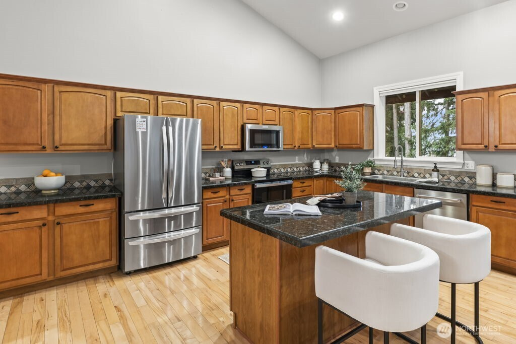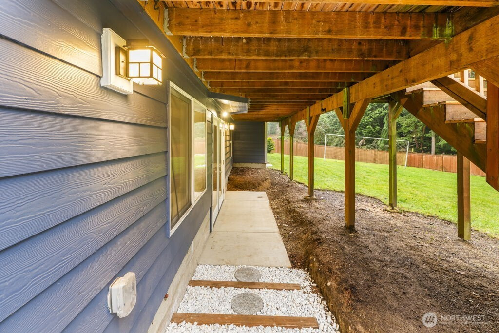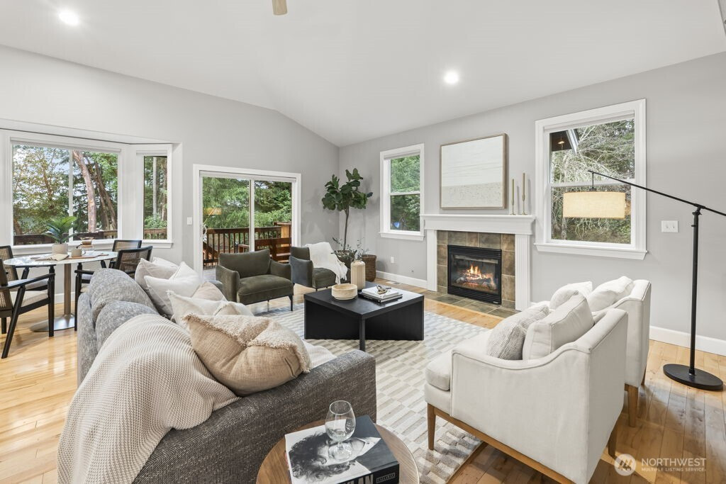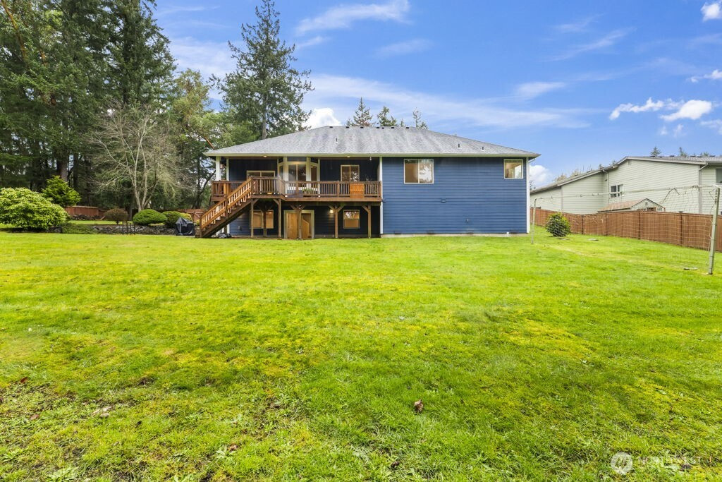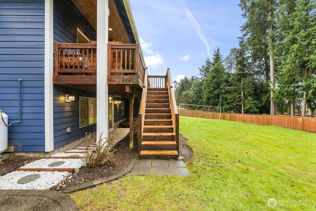 Welcome to this charming Fox Island home, perfectly designed for comfortable living. Set on a beautiful, spacious lot, the large backyard offers endless room to play and gather. Enjoy peek-a-boo Sound views from the deck, while inside, tall vaulted ceilings and a cozy gas fireplace create an inviting living space for movie nights and everyday moments. The open-concept layout keeps everyone connected, and a fun indoor rock wall to keep everyone entertained. The lower level includes a bonus room complete with wiring for projector and HDMI. Additional private studio space—ideal for a home office, or creative area. Fully fenced yard with plenty of space, plus a 2-car attached garage wired for an electric car. Experience the close-knit Fox Island lifestyle just minutes to Bella Bella Beach, Zog’s Pub, and local favorites—where memories are made at home and beyond.