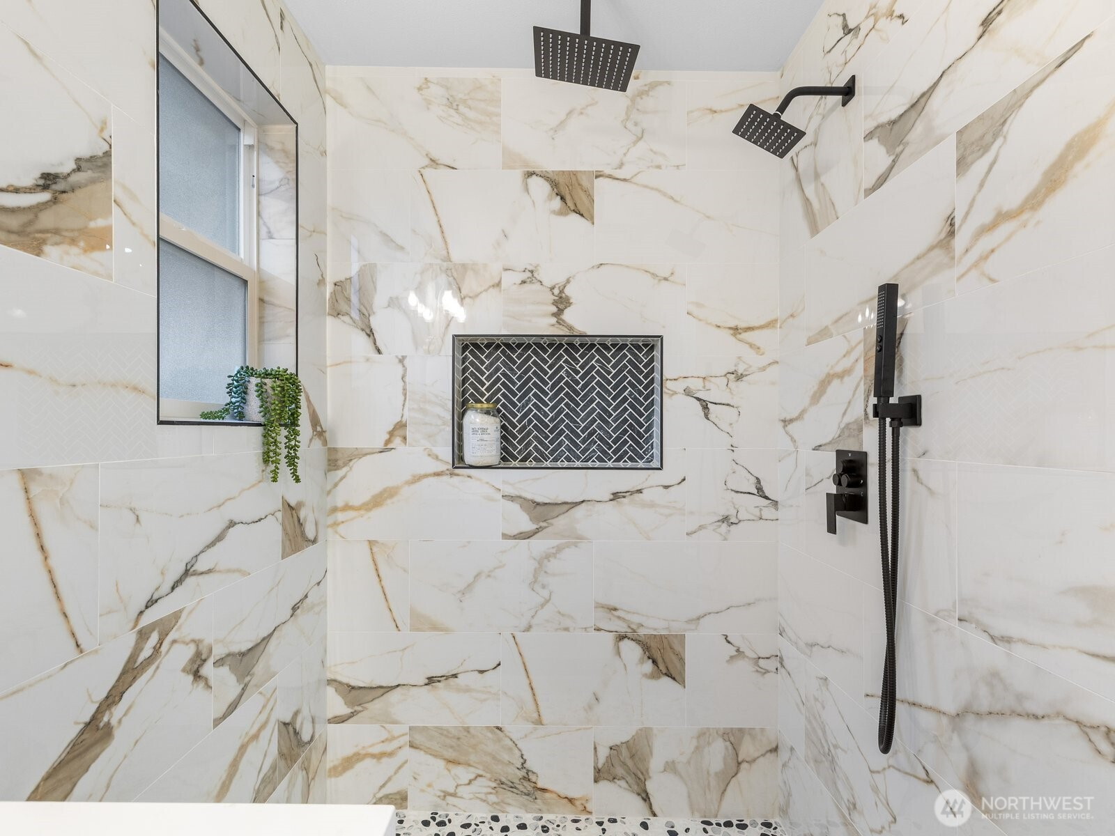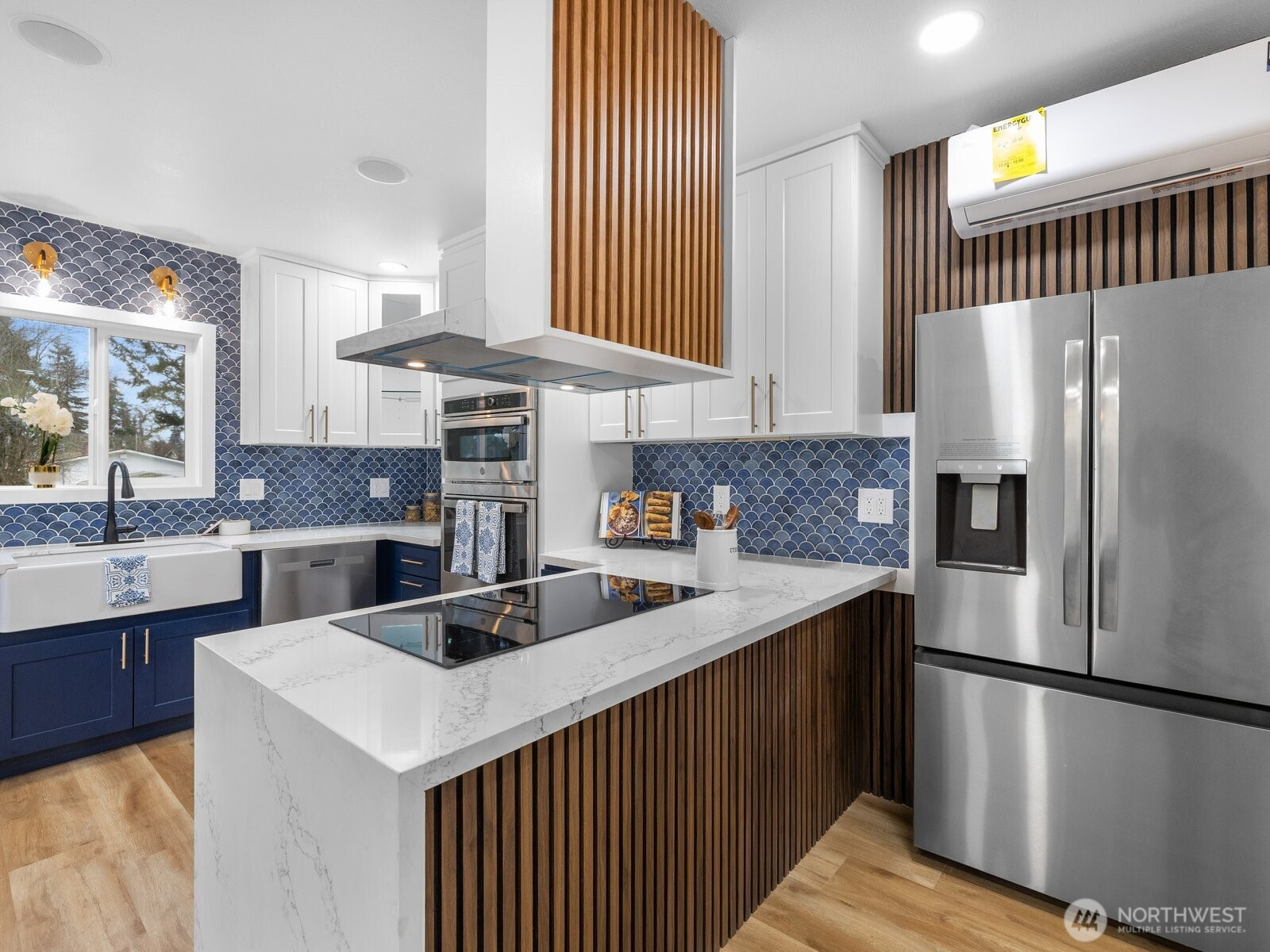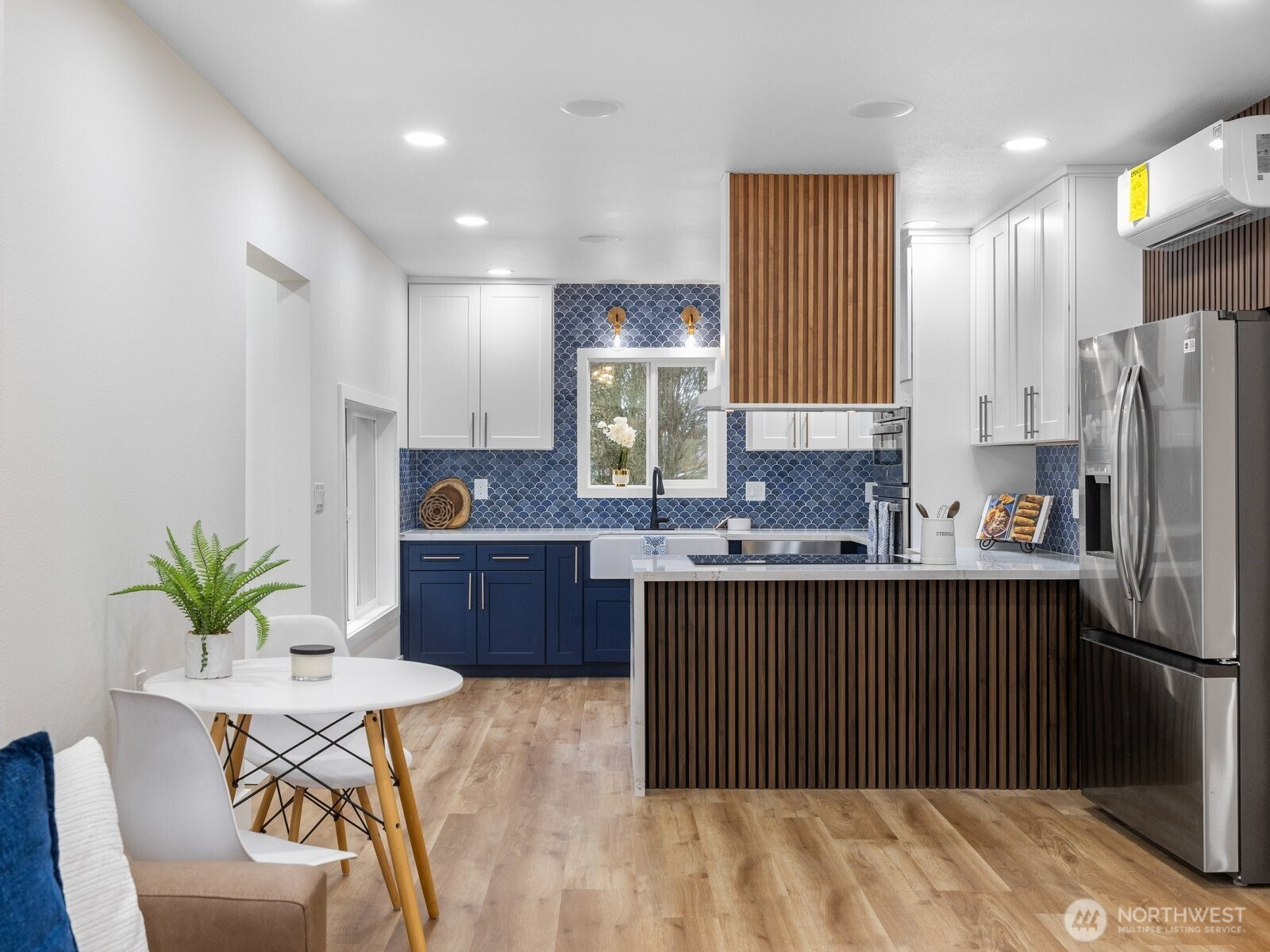Step into a thoughtfully renewed 1940's Tacoma classic. A down-to-the-studs transformation. Everything has been replaced, including electrical, plumbing, roof, insulation, windows, and HVAC—delivering the confidence of a modern build with the charm of its original era. The kitchen's clean contemporary aesthetic with quartz countertops, soft-close cabinetry, a slide-out spice rack, built-in garbage/recycling pullouts, and an induction cooktop. High-end custom tilework elevates both the kitchen and the bath creating a cohesive, refined look throughout the home. With 1,920 sq. ft., the layout includes 3 bed, 1.5 bath and a fully finished basement that expands the living possibilities. The large level lot is exceptional space for outdoor living