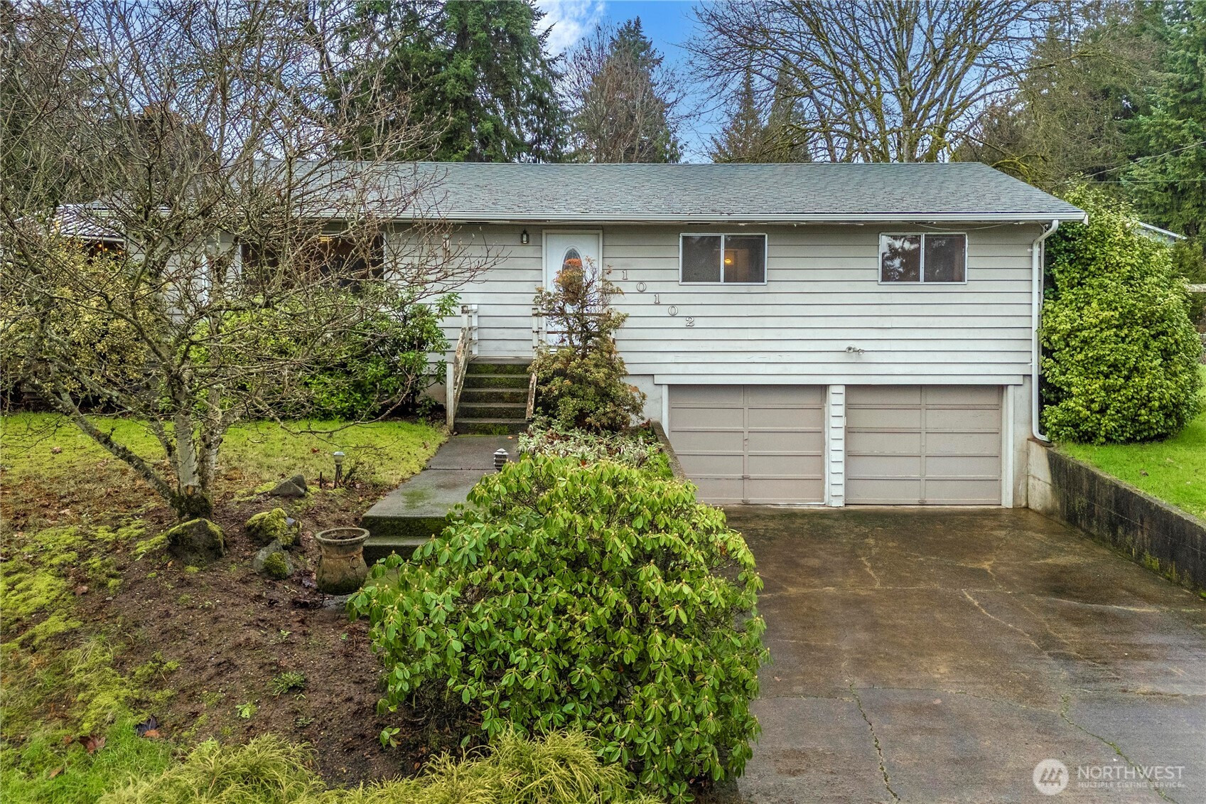 Opportunity knocks! This Puyallup one-story home with a basement offers so much potential - just a little TLC will go a long way. Featuring a newer roof and gutters (2020), Enjoy stunning views of Mount Rainier from your living room. This home offers a bright living space with a wood-burning fireplace, plus a kitchen and dining area conveniently located on the same level as the three bedrooms and 1.5 baths. The lower level includes a spacious family room with a second fireplace, an extra finished room, storage space, and a two-car garage (room in garage can be removed to open full 2-bay garage). Fenced backyard, storage building, and a great neighborhood of lovely homes. Sold as-is.