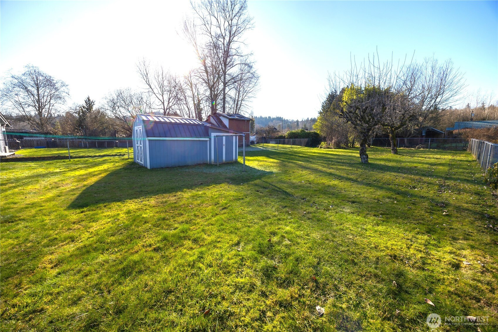 Perfect starter home or downsizer! One level living on a huge lot~ over 11,000 square feet! This is such a beautiful area of Puyallup, it's that country feel but close to downtown and all that it has to offer. Large living room with a huge window to let the light shine in! 2 bedrooms, but would be easy to add the wall again to create 3 bedrooms! Fresh paint and super clean. Attached garage and a really nice shed in the large backyard. Prodigy siding is in great shape. Fully fenced, level, fruit trees, rich soil and even a clothes line! Enjoy AC on those hot summer days. This home has been lovingly taken care of and is ready for you to make it your own!