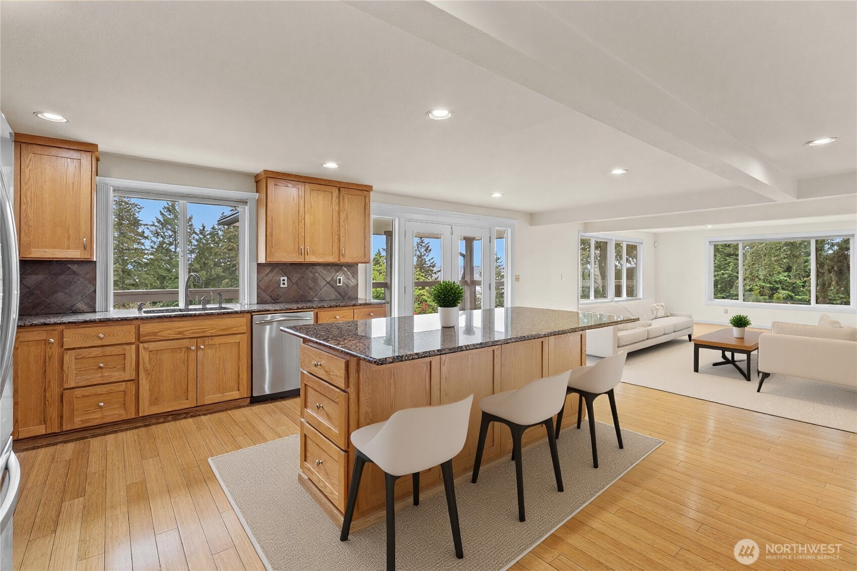 Your Edgewood view home awaits, located in one of Washington states top ten school districts while offering two kitchens and four bedrooms including two primary suites. Drive up to a spacious driveway offering two garage spaces, RV parking, and room for visitors and more. Step inside to a great room full of natural light with large windows showcasing your view and French doors with access to your relaxing balcony. An open kitchen with granite countertops that welcomes entertainment and togetherness while overlooking your dining area, living room, and private office. Upstairs offers a primary suite on the main floor with a five piece bathroom including a sizable soaking tub and walk-in closet. Downstairs offers a second kitchen, large living room, three additional bedrooms including your second primary suite, French floor access to your covered concrete stamped patio and fully fenced yard with a fireplace to sit, relax, and enjoy. Welcome home and be sure to schedule your showing today.