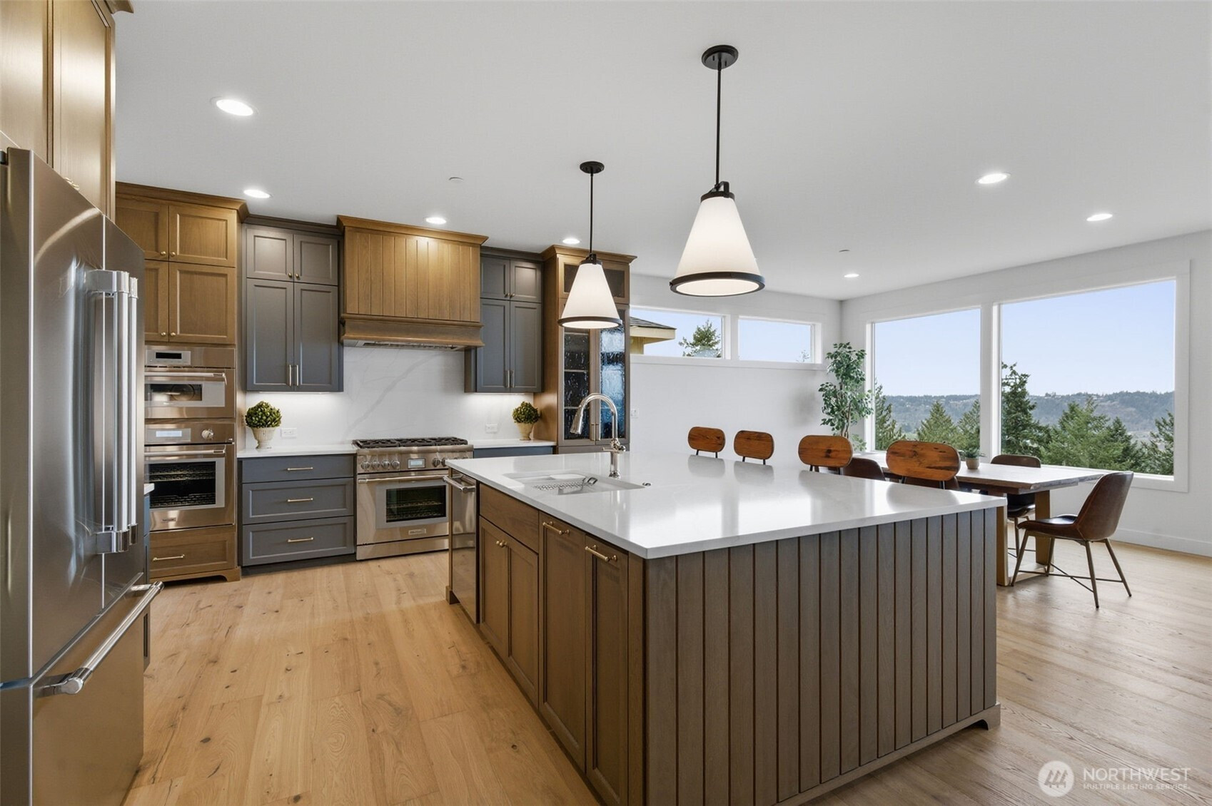 Welcome to the View Ridge of Sky Island, one of Pierce County’s most iconic communities by Zetterberg Homes, showcasing breathtaking views of valley farms, the Port of Tacoma, sunsets and the Olympic Mountains. Lot 24 features a beautifully crafted 4-bedroom, 3-bath, 3,771 sq ft rambler with a finished basement. The main-level primary suite offers convenience and comfort, while the lower level includes a spacious rec room plus an additional finished flex space ideal for a media room or home office. Enjoy abundant storage and a 3-car garage. Luxury finishes include hand-built built-ins and cabinets, a scullery/prep area off the main kitchen, library cabinets in the hall, Thermador appliances, extensive plank flooring upstairs, a hotel-quality primary bathroom with built-in cabinet system and walk-in closet, exposed beams in the family room (raised ceiling design feature) leading to an outdoor living room overlooking the valley, pre-plumbed for gas on the upper covered patio, basement also has a covered patio directly below the upper patio, fully landscaped front and back yards with irrigation and low-voltage landscape lighting in front, heat pump with hot water and air conditioning, and a custom entry wall. Each Zetterberg home is hand-built with distinctive custom details designed for exceptional Northwest living.