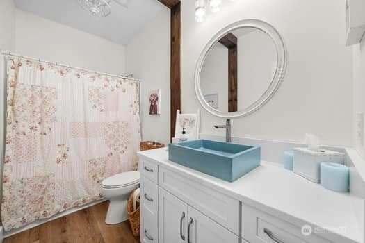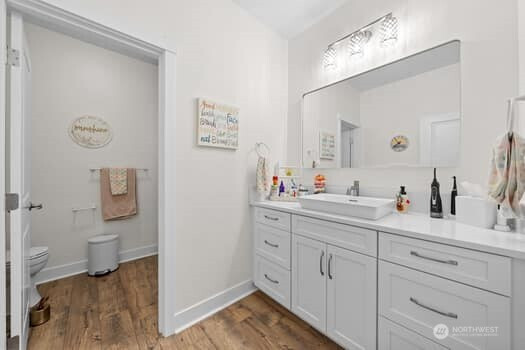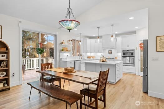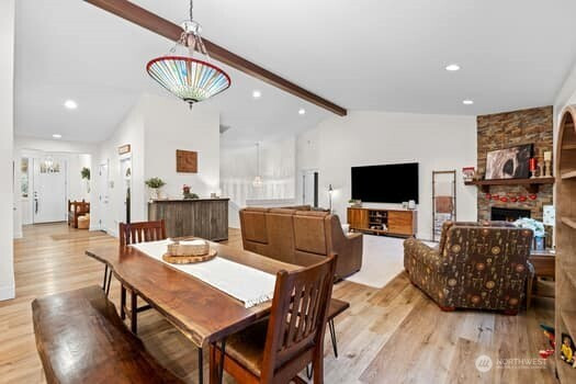 Exquisitely Updated Custom Daylight Basement Rambler in Desirable Edgewood. 4 Bed / 3Baths with just shy of 4000sq ft of living space, 3-Car Garage situated on 1/3 acre with a beautiful wooded private backyard to enjoy! Many new upgrades! Soaring ceilings in the spacious great room with a stunning corner fireplace and accent beam. Gourmet Chefs kitchen with new lighting, new Quartz counters/backsplashes, abundant cabinets, huge island, new farmhouse sink, stainless appliances and high end auto sensor hood vent. Main floor primary suite offers access to the private 60ft aztec deck, spa-like ensuite and huge walk-in closet, brand new shower and soaking tub. New Vanities throughout. Office, laundry and 2nd bedroom also on main floor. New interior paint and flooring throughout! Downstairs is ideal for multi generational living with a full kitchen, 2 large bedrooms, Movie Theatre w/150' screen! A/C heat pump, as well as new Mitsubishi mini splits downstairs. Professionally landscaped, sealed driveway, abundant storage! Easy commuting and desirable Puyallup schools. This home is a must see!