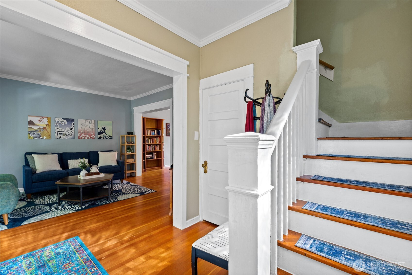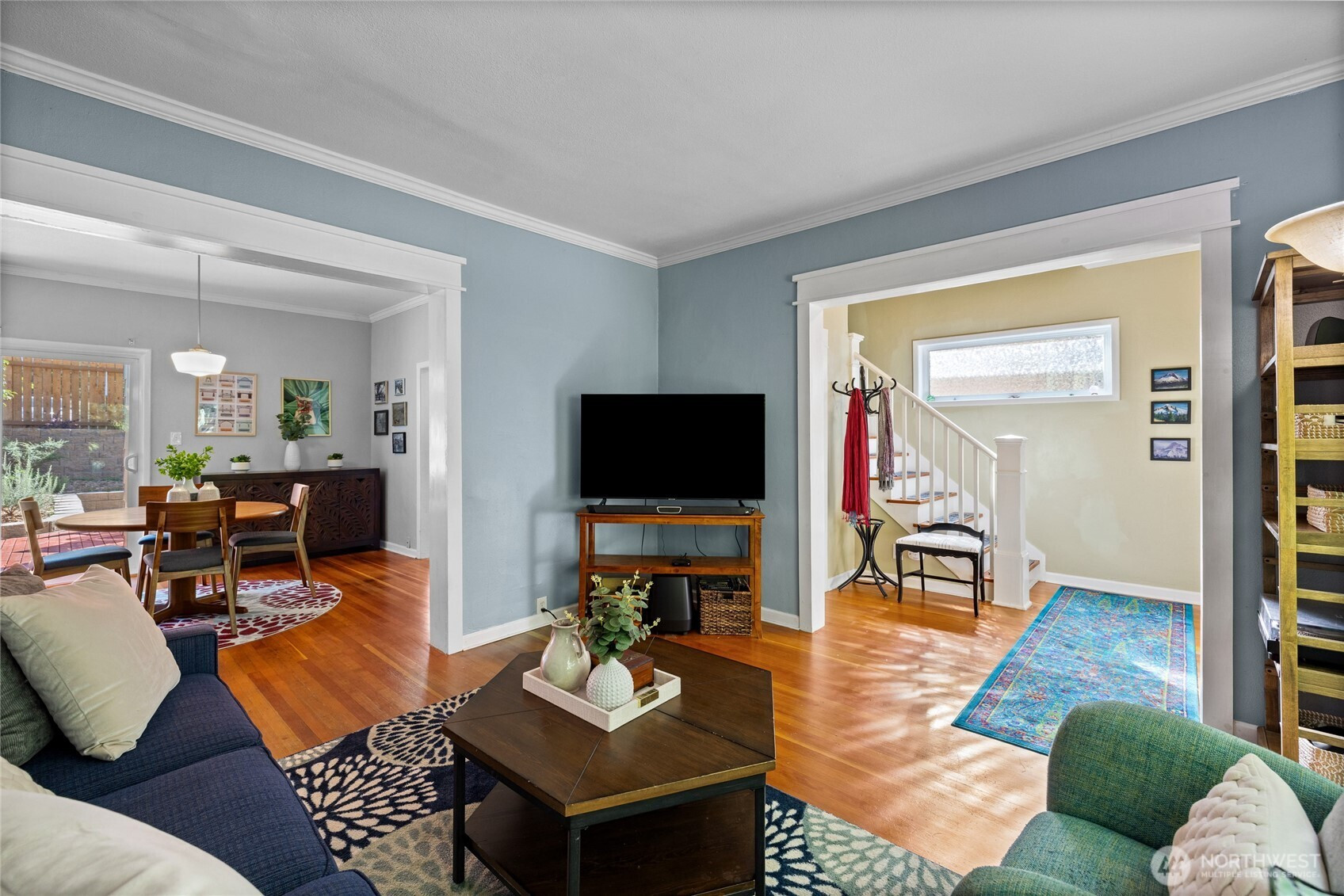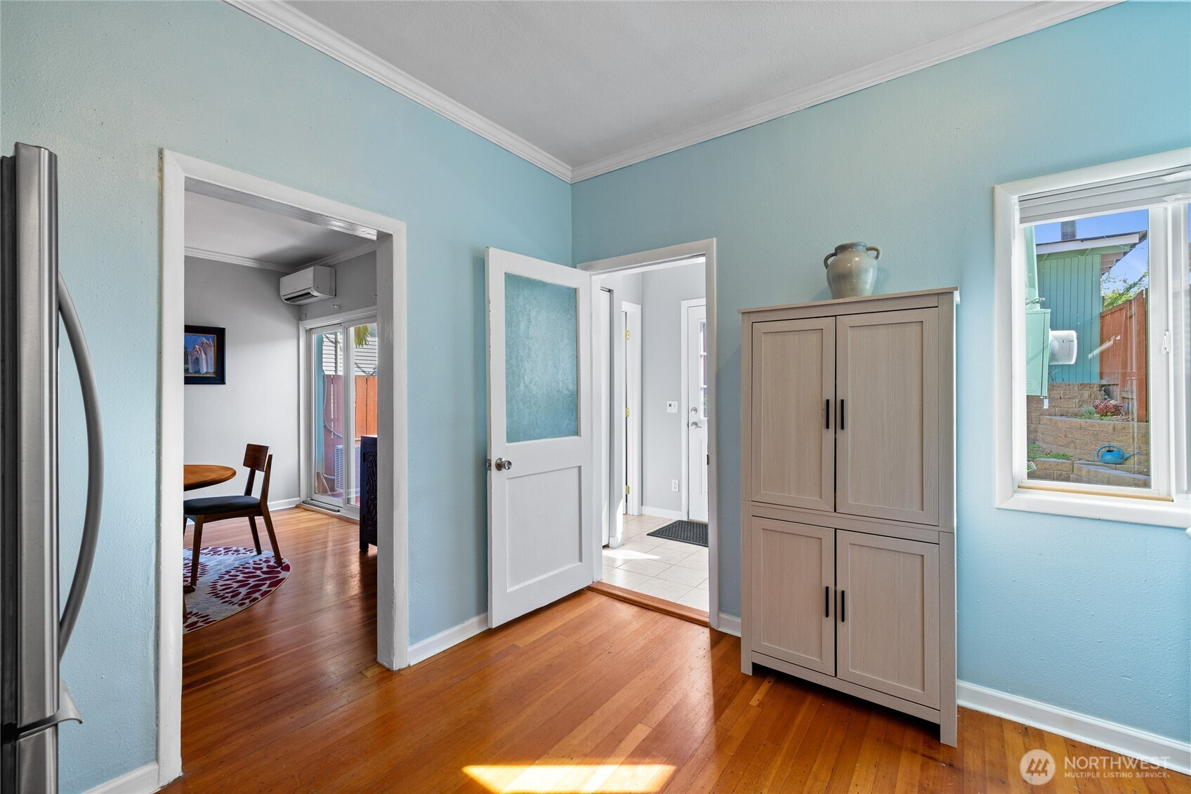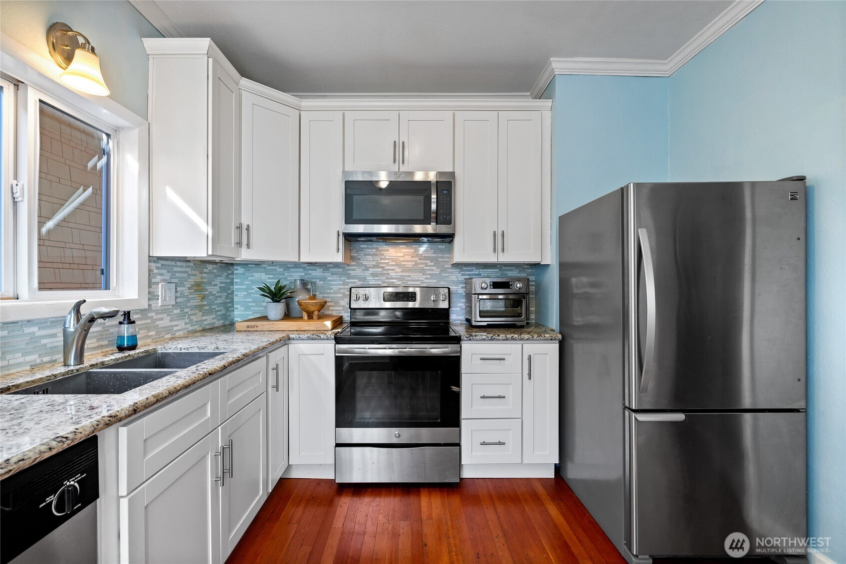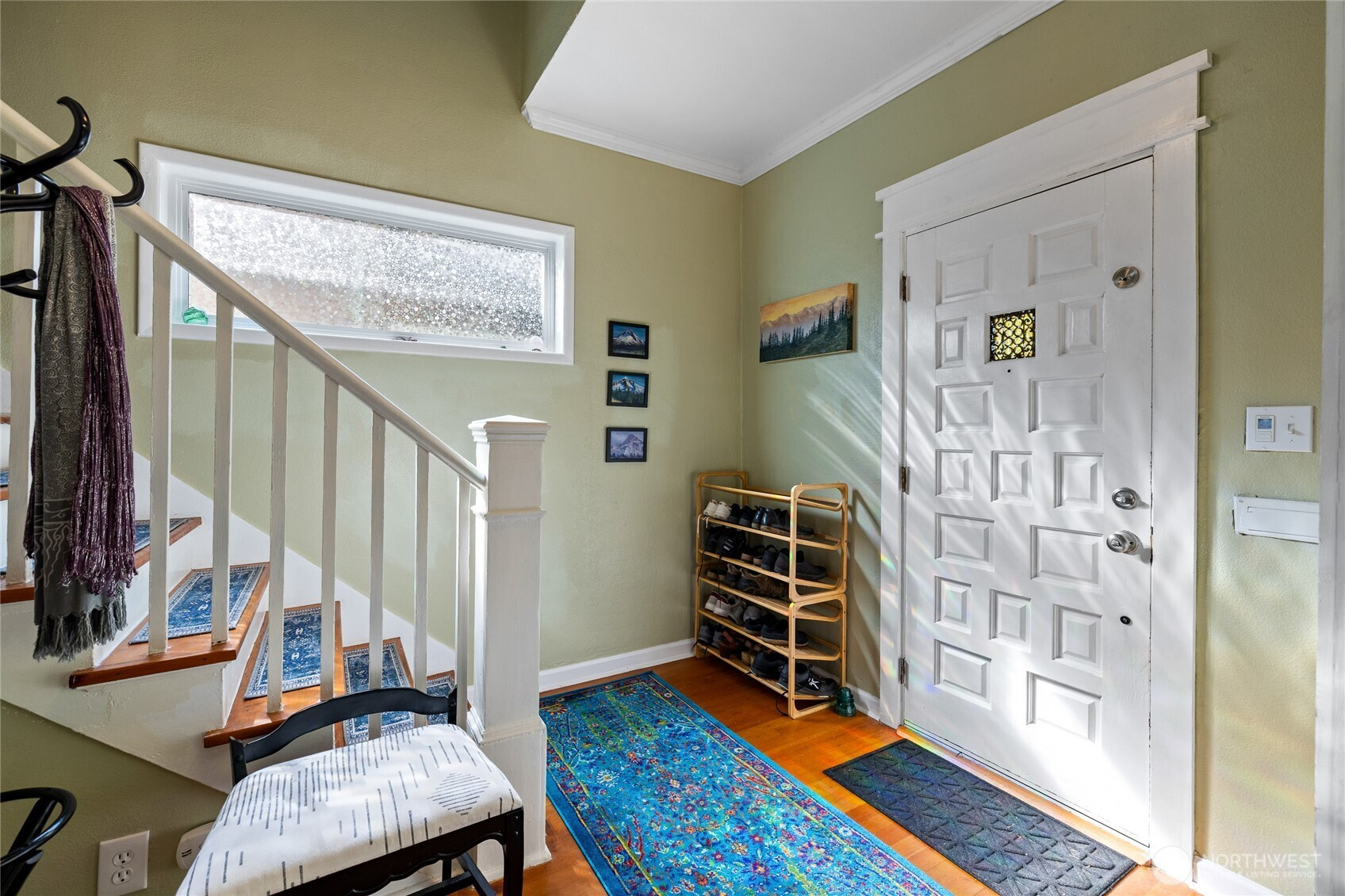 Welcome to this charming Craftsman in North Tacoma’s UPS neighborhood! This 2-bedroom, 1 ½-bath home blends classic character with smart updates. Fir floors, trim, and molding create warmth, while the spacious living and dining rooms open to a freshly painted deck. The kitchen offers granite counters, tile backsplash, & stainless-steel appliances. A ductless split-system heat pump provides year-round comfort. Upstairs are two bedrooms and a remodeled ¾ bath. Outside, enjoy a newly landscaped yard, raised covered carport, and storage shed, new exterior paint, newer roof & gutters. With Quantum Fiber 1GB internet, working from home is convenient. Close to UPS, parks, restaurants, and shopping, this home offers historic charm & modern comfort.