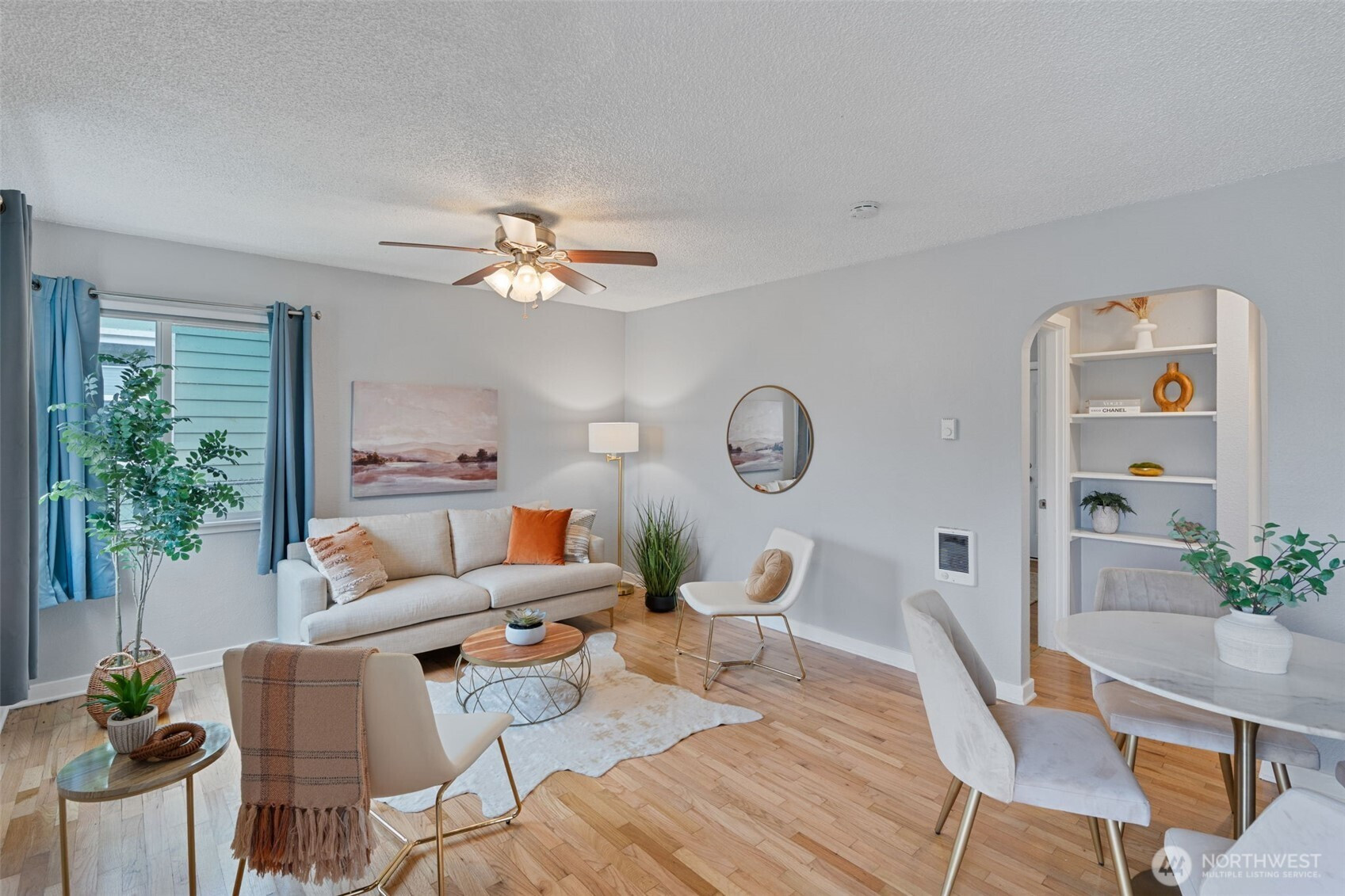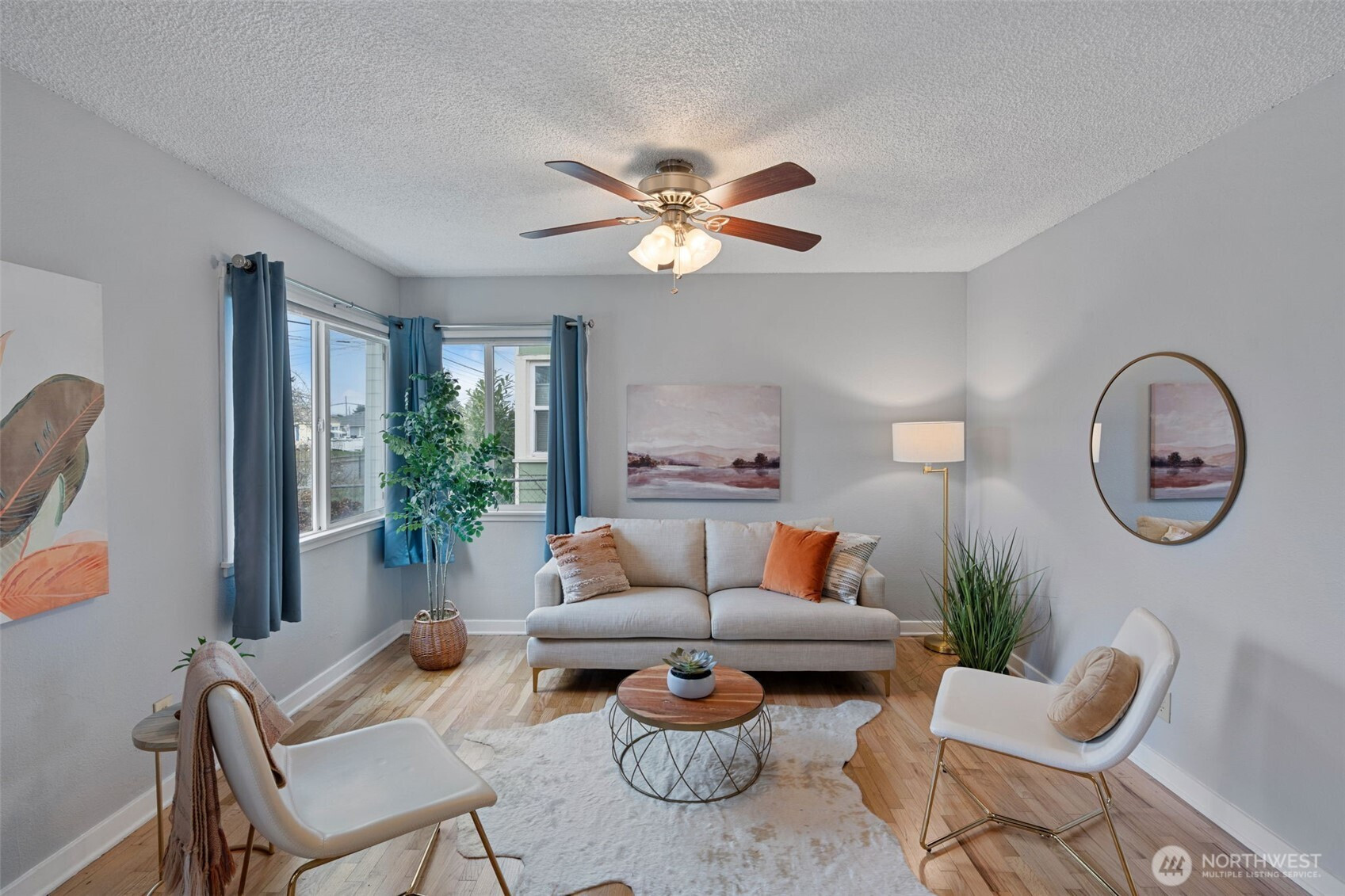 Fall in love with this light-filled 2 bedroom, 1 bath bungalow situated on an expansive 9,000 sq ft lot in one of the West End’s most walkable pockets. Morning sun streams through every room, accentuating the hardwood floors and giving the home its signature warm, inviting feel year-round. Step outside to a garden enthusiast’s haven, where thoughtfully planted perennials provide nearly continuous blooms and a towering Cedar offers shade and natural privacy around the back patio - ideal for relaxing or hosting. Minutes to University Place amenities and West End shopping and dining, with quick access to Highway 16 and the Narrows Bridge for easy commuting and weekend exploring. All this at an approachable price-point with no HOA!