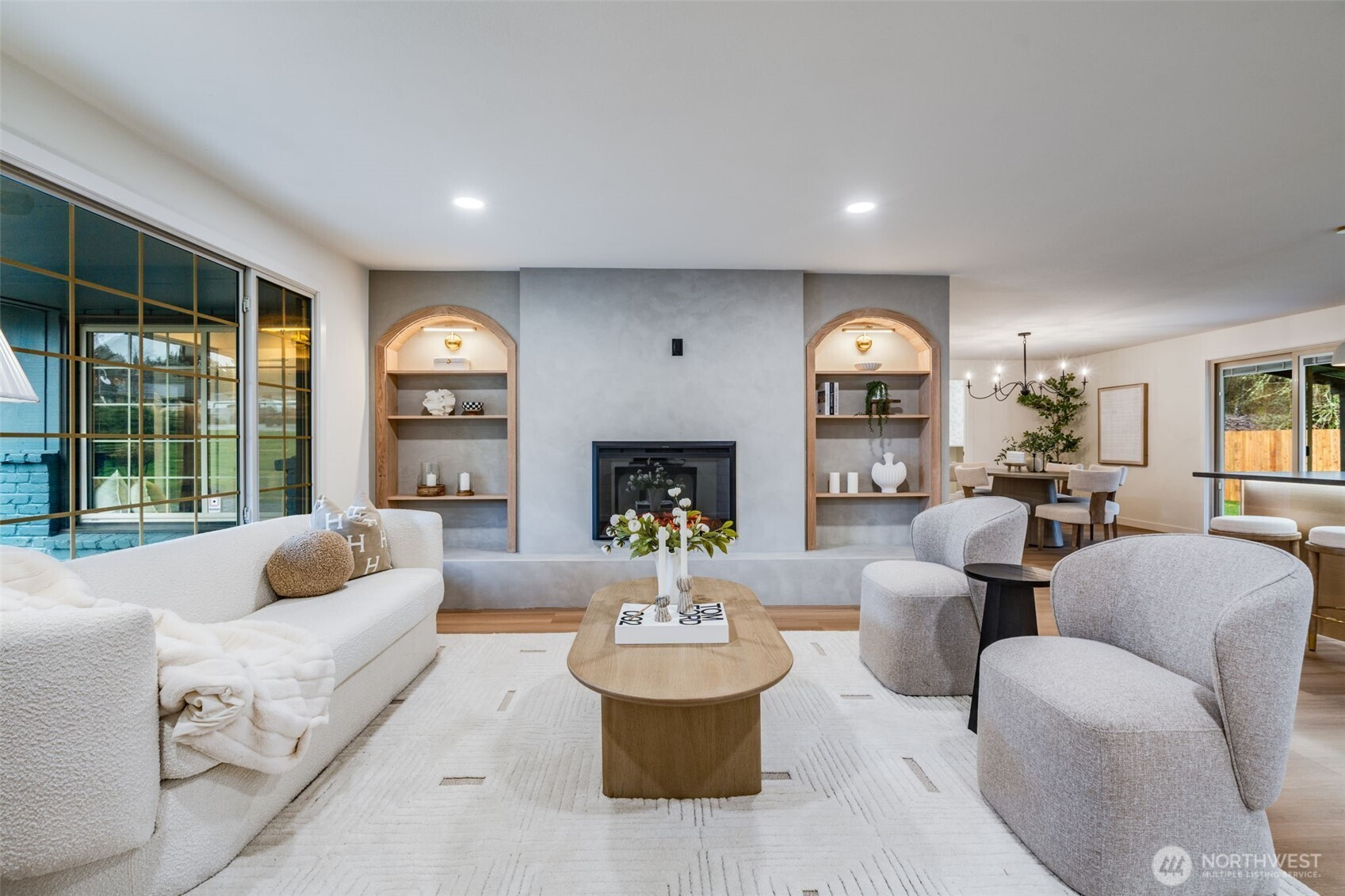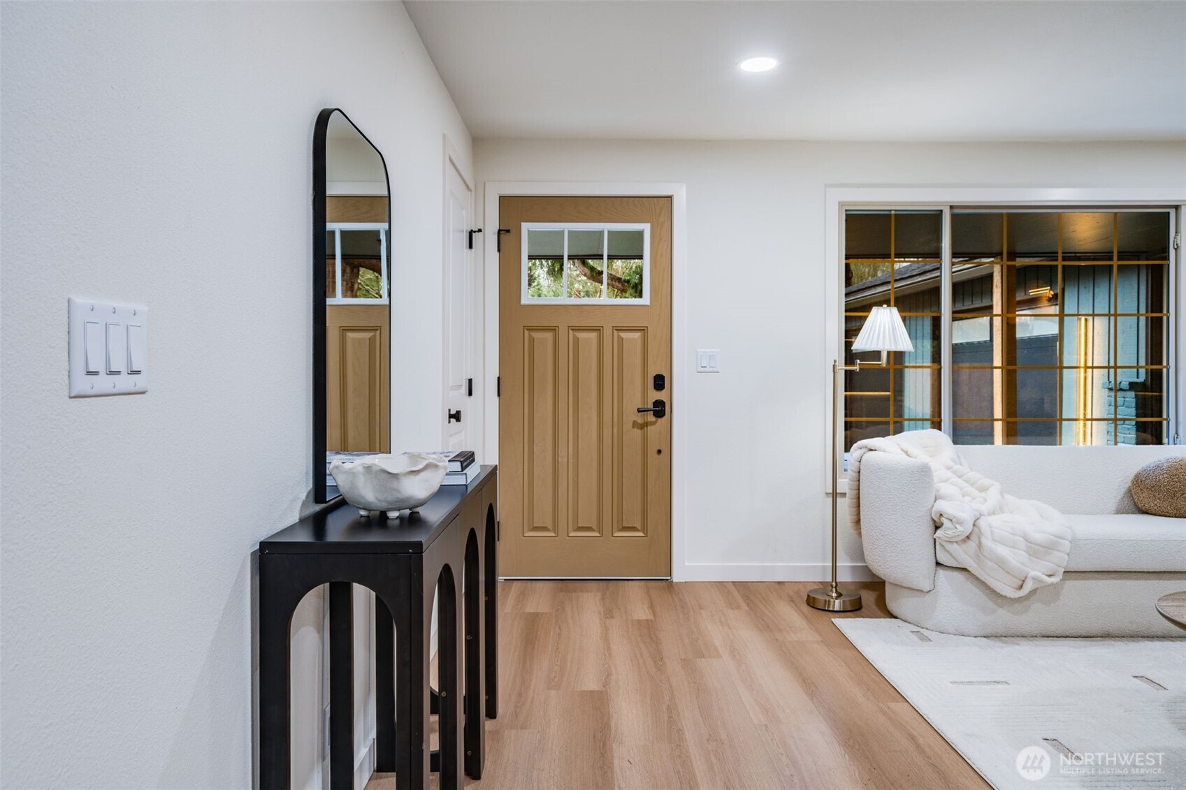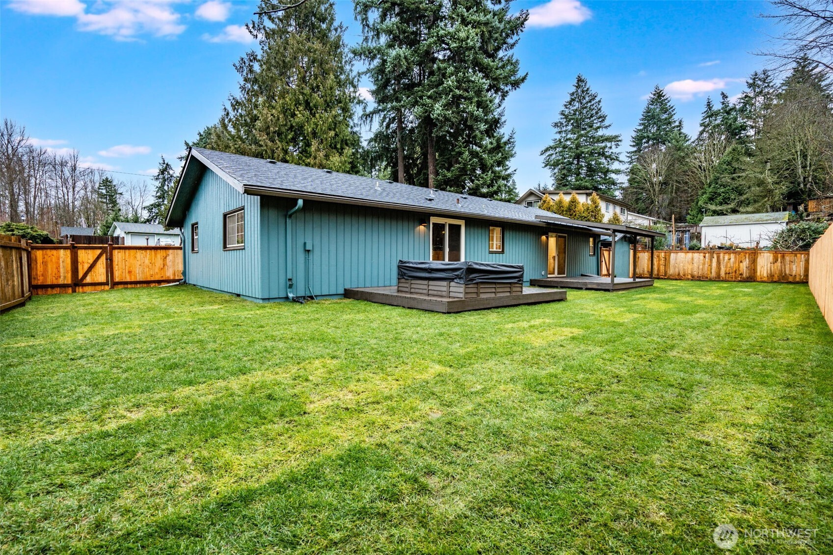 Featuring a newly renovated mid-century, one story home presents timeless architecture and is refined for modern living. Clean lines honor the home’s original design, while elevated, meticulous finishes bring a fresh sense of sophistication. The fully modernized home offers 4 bdrm/2.5 bath extending 1868 square feet precisely designed while perfectly situated on .29 acre. Enter the front door to a welcoming living room presenting a gas fireplace, custom built-in shelving and an open concept to a sizable, entertaining kitchen. The beautifully designed kitchen offers two-toned cabinetry, stainless steel appliances, large sink with polished brass fixtures and gorgeous countertops. The expansive kitchen island provides an eating space with an additional designated dining area. The impressive primary suite with walk-in closet, boasts a full bathroom offering serenity with a stand alone soaking tub and a dual rainshower conceived as an open, immersive experience designed with precision and functionality. Designated laundry room, large walk in pantry and mudroom entrance directly off 2 car garage. Partially fenced backyard with covered and uncovered deck areas, along with a hot tub for evening relaxing. Home ideally setback from the street with plenty of driveway parking, surrounding landscaping and newly laid sod. Conveniently located with easy I-5 access, short distance to shopping and community offerings. This stunning home will not last long!