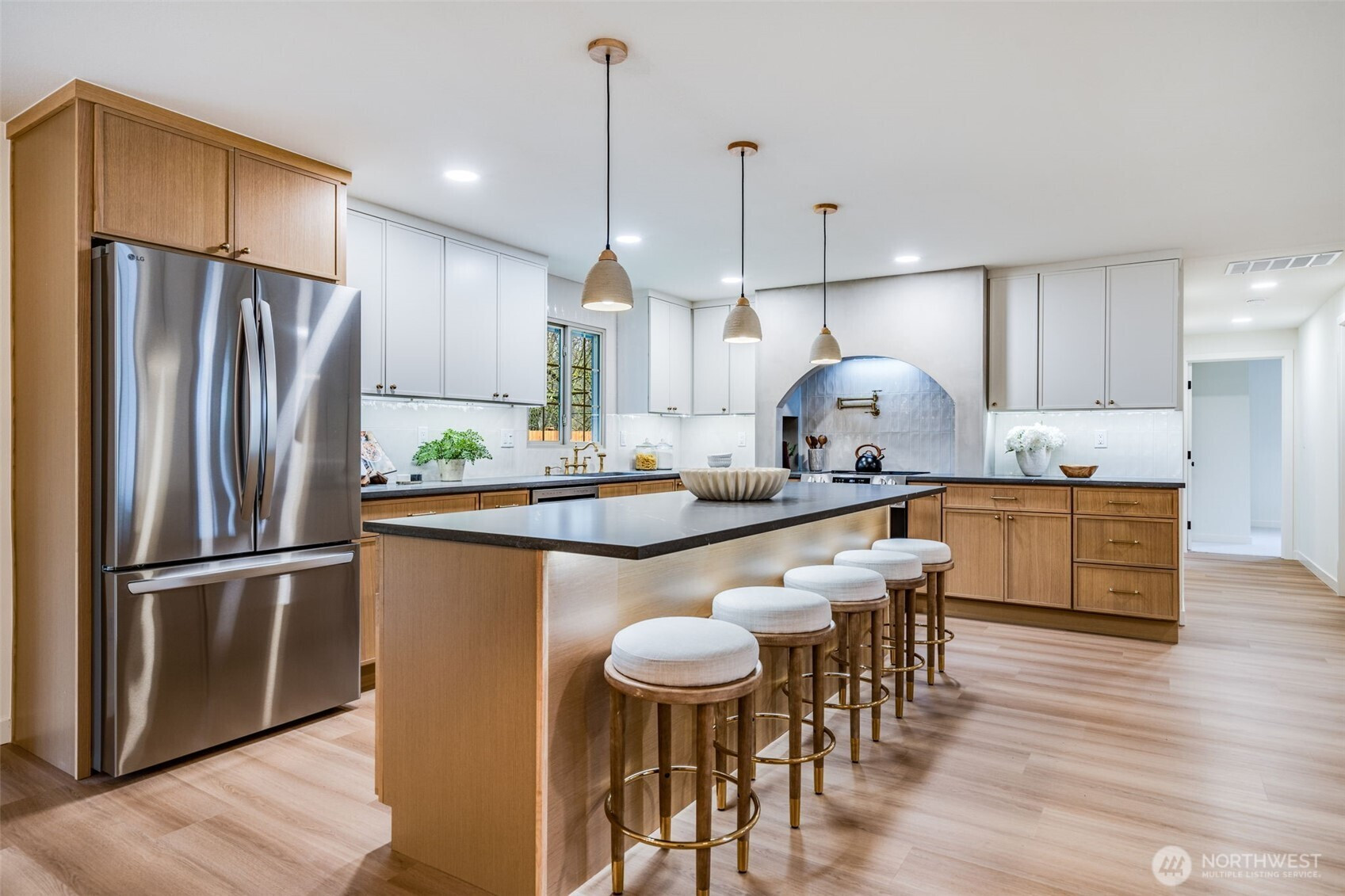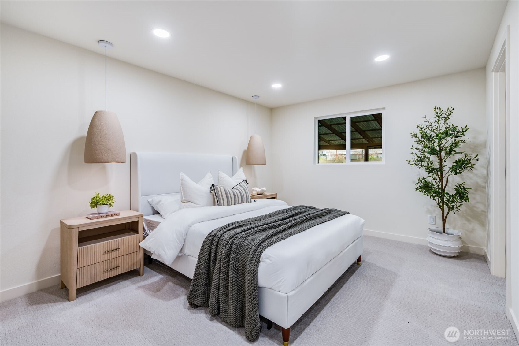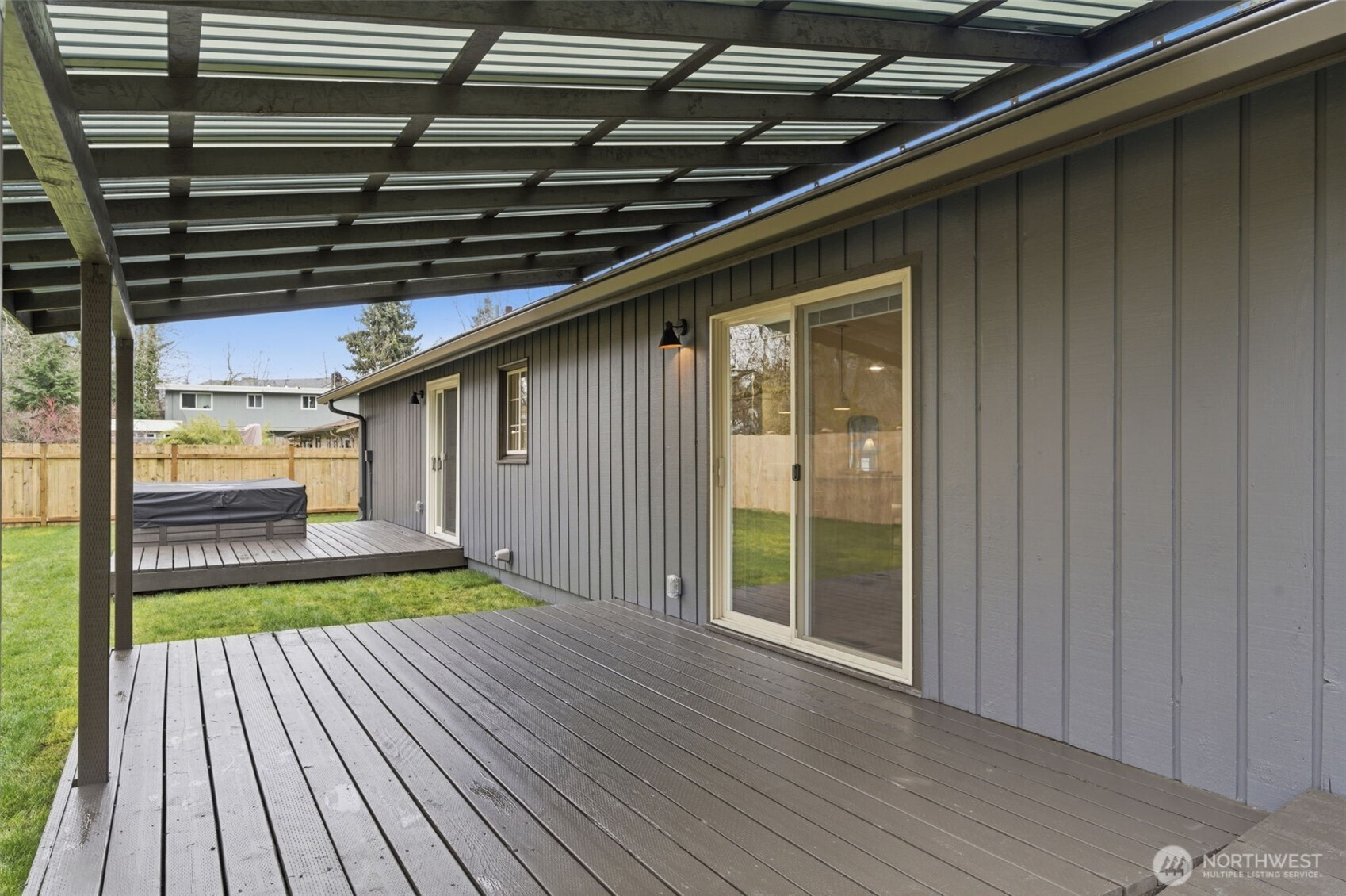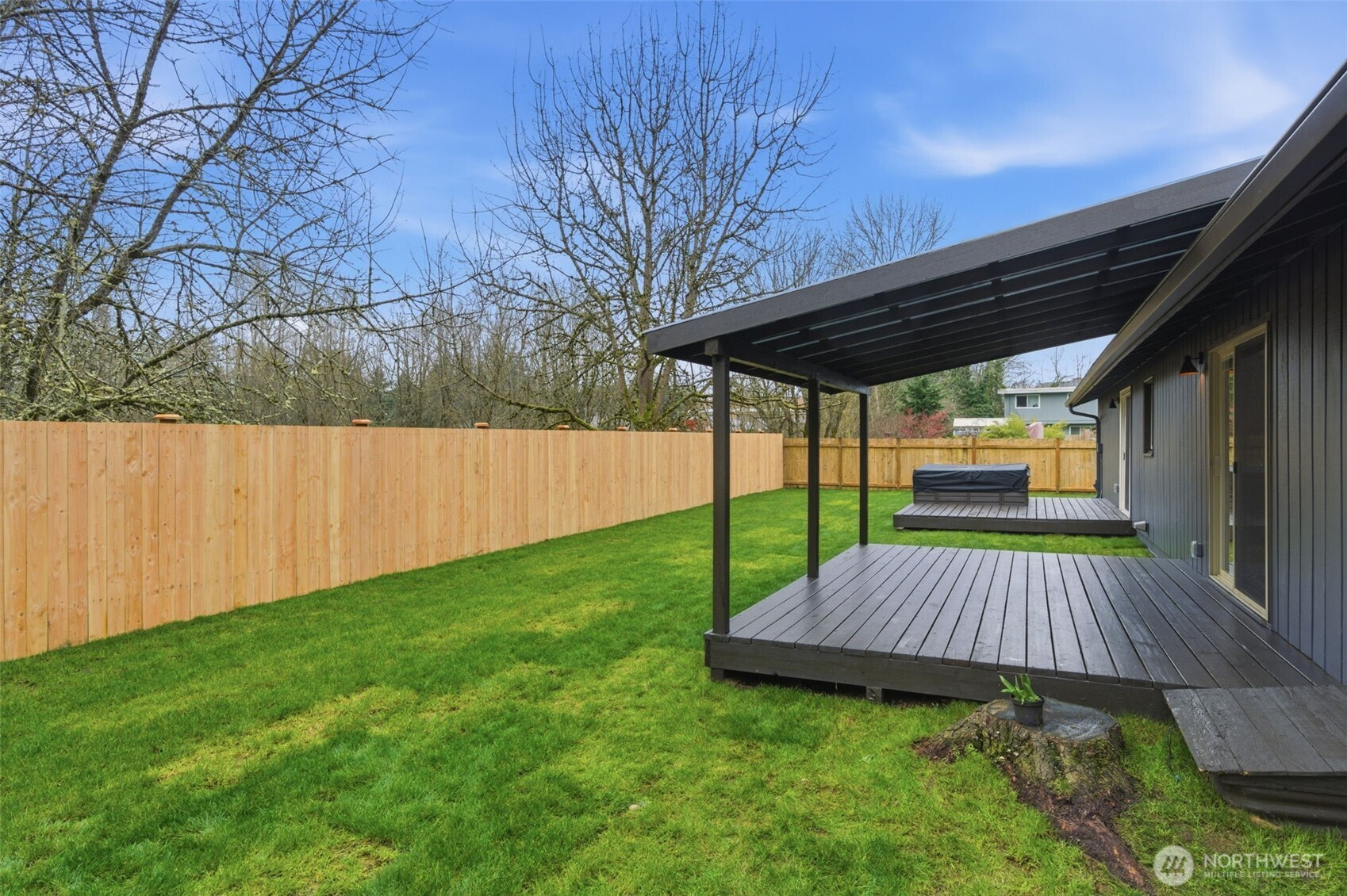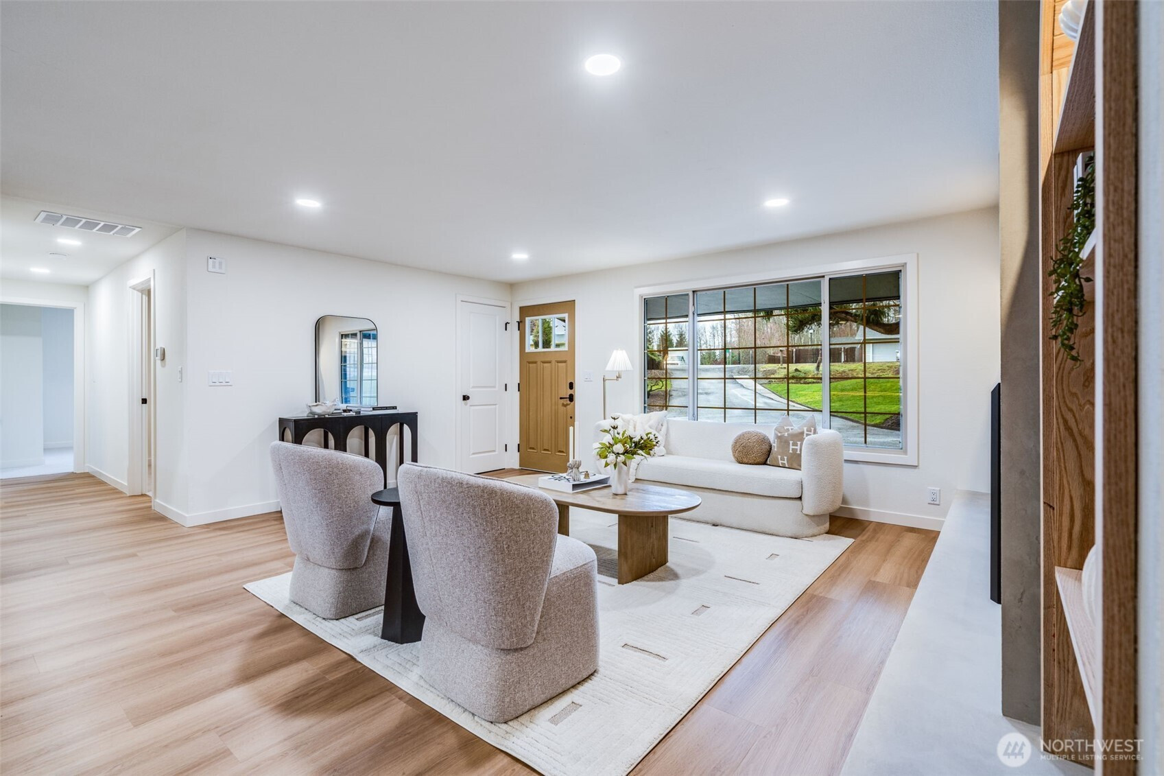 Featuring a newly renovated mid-century, one story home presents timeless architecture and is refined for modern living. Clean lines honor the home’s original design, while elevated, meticulous finishes bring a fresh sense of sophistication. The fully modernized home offers 4 bdrm/2.5 bath extending 1868 square feet precisely designed while perfectly situated on .29 acre. Enter the front door to a welcoming living room presenting a gas fireplace, custom built-in shelving and an open concept to a sizable, entertaining kitchen. The beautifully designed kitchen offers two-toned cabinetry, stainless steel appliances, large sink with polished brass fixtures and gorgeous countertops. The expansive kitchen island provides an eating space with an additional designated dining area. The impressive primary suite with walk-in closet, boasts a full bathroom offering serenity with a stand alone soaking tub and a dual rainshower conceived as an open, immersive experience designed with precision and functionality. Designated laundry room, large walk in pantry and mudroom entrance directly off 2 car garage. Partially fenced backyard with covered and uncovered deck areas, along with a hot tub for evening relaxing. Home ideally setback from the street with plenty of driveway parking, surrounding landscaping and newly laid sod. Conveniently located with easy I-5 access, short distance to shopping and community offerings. This stunning home will not last long!