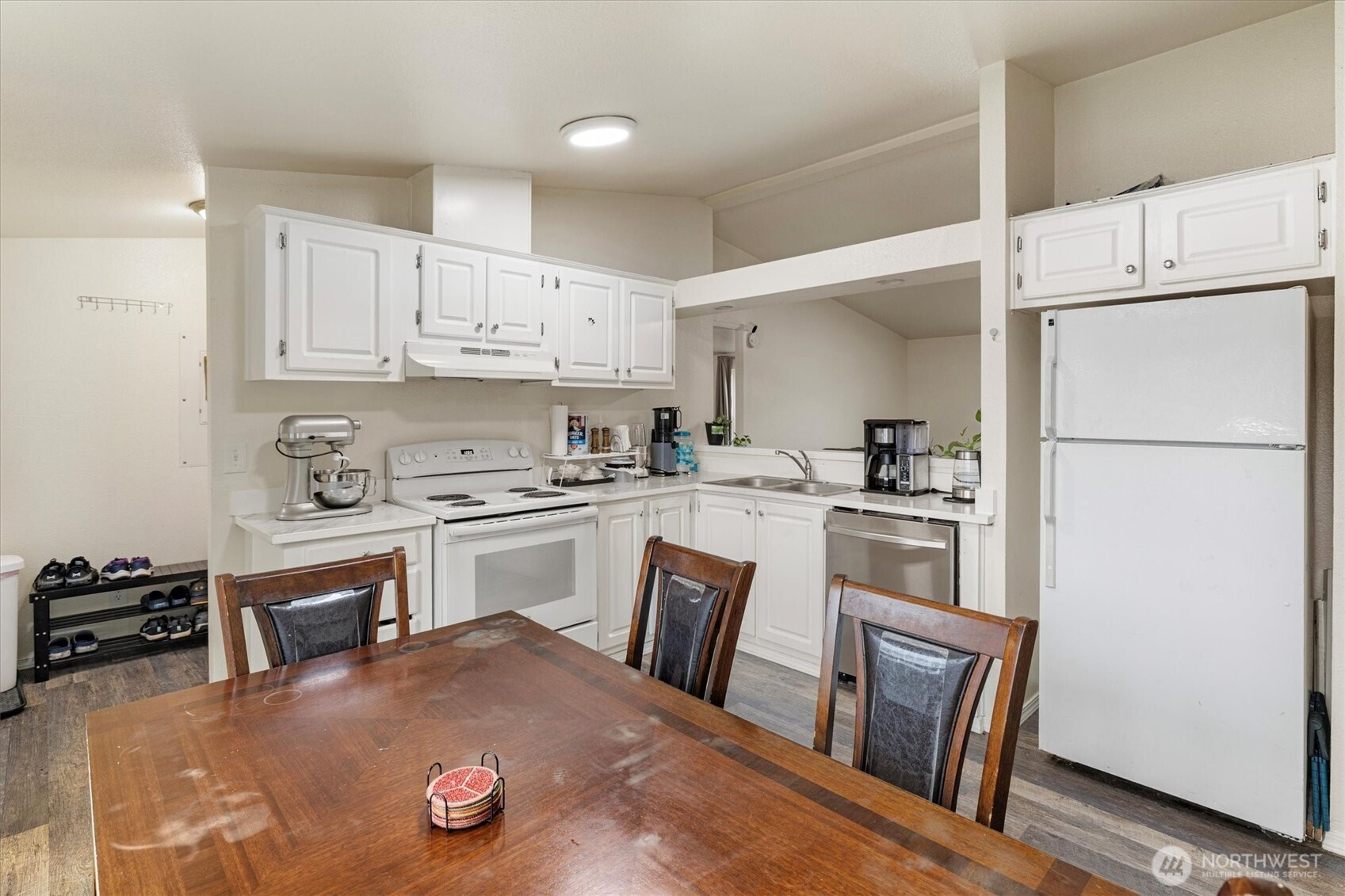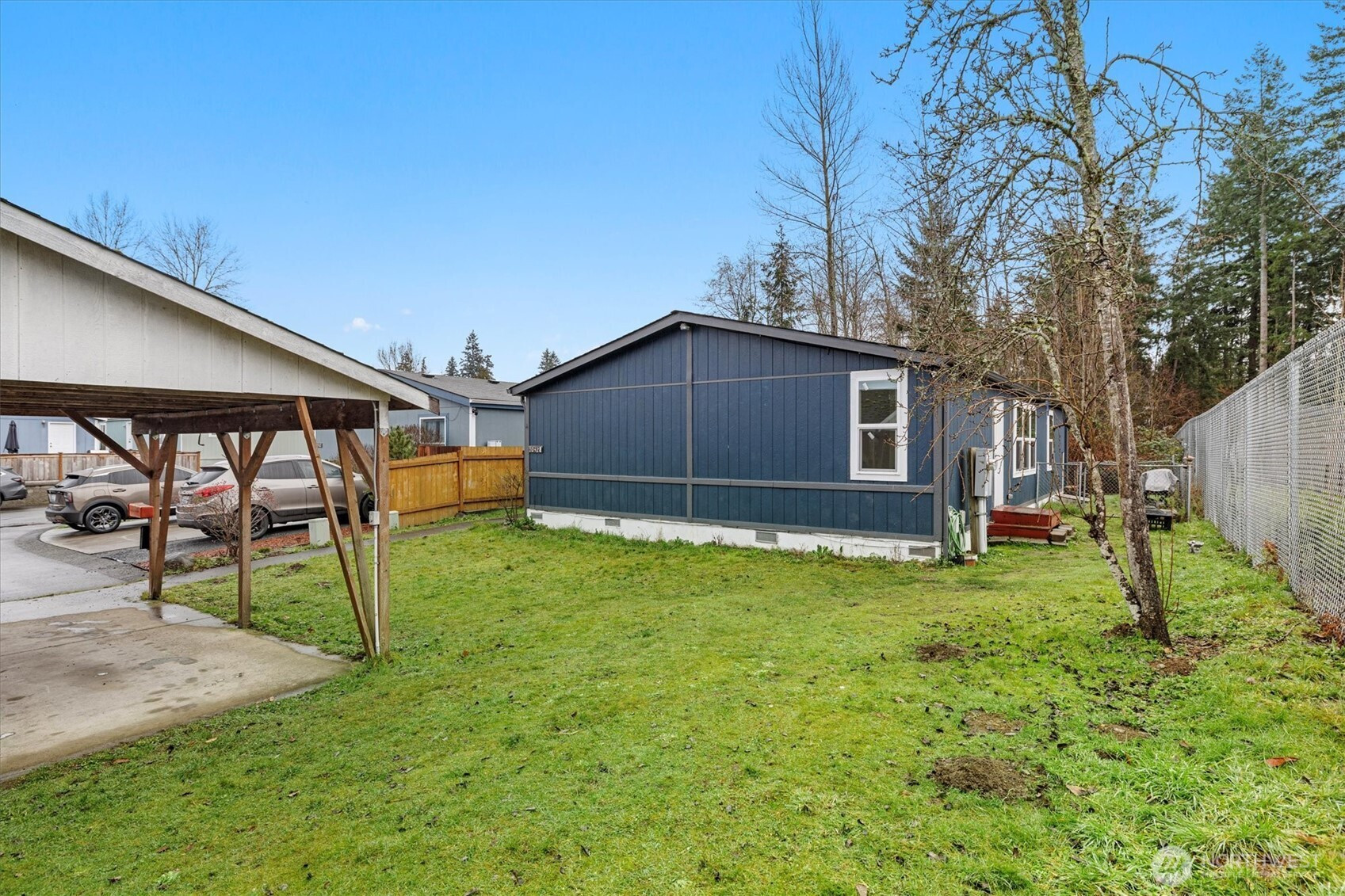 Updated 3 bed, 2 bath manufactured home in Puyallup featuring brand new windows and move-in ready condition. Bright open kitchen with wood cabinets, large pantry, and newer range/oven. Newer vinyl plank flooring, cathedral ceilings, and spacious living and dining areas. Large primary suite with walk-in closet and a big bathroom. Two additional bedrooms, updated second bath, separate laundry with storage, backyard shed, and two-car covered carport. Located in a well-maintained, all-ages community near Meridian Ave. Access to main Hwy arteries.