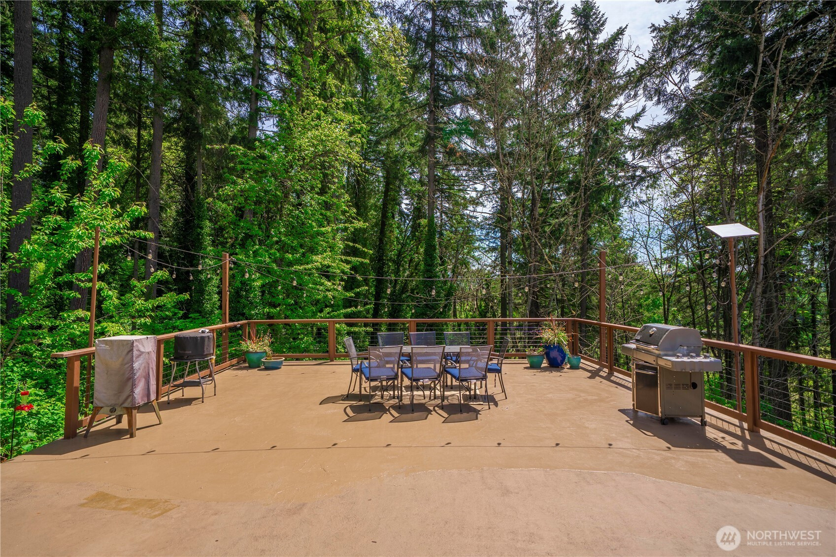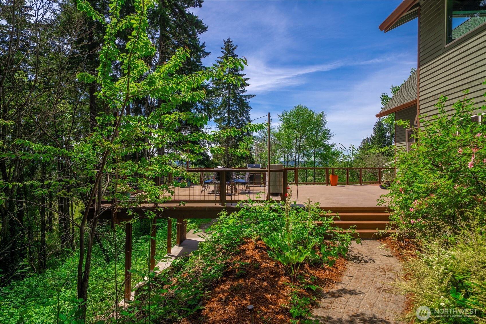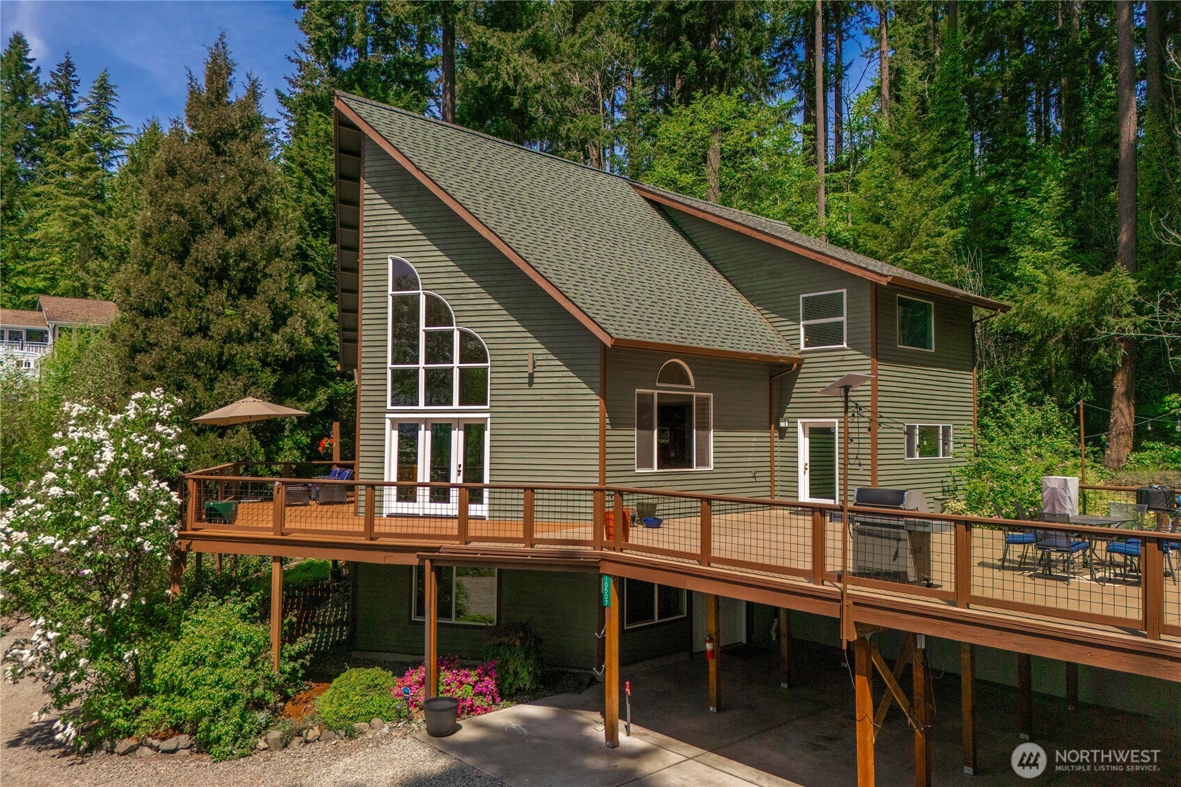 Mechanic’s dream or incredible home business opportunity featuring a 1,400 SF detached shop, paired with a stunning 3,500+ SF custom home tucked away on 1.6 private acres in Edgewood. This thoughtfully designed retreat, built by the original owners, offers beautifully crafted living space with expansive windows that capture sweeping panoramic views and breathtaking sunrises and sunsets. The home features four bedrooms with potential for up to five, as additional rooms include closets, plus a dedicated home office that makes working from home effortless. Soaring ceilings, rich wood floors, and walls of windows fill the home with natural light, while the kitchen flows seamlessly to an expansive deck showcasing privacy and territorial views—perfect for entertaining or simply unwinding in comfort. The lower level offers a spacious recreation room with a full wet bar, abundant storage, laundry room, and a separate entrance ideal for entertaining, multigenerational living, Airbnb, or rental potential. New carpet installed in 2025 adds fresh appeal. Outside, enjoy RV parking with an aluminum cover, garden beds, and a fire pit. The lot extends to the upper cul-de-sac, offering possible subdivision or future build potential (buyer to verify). With no HOA, award-winning water, and a rare blend of luxury, flexibility, privacy, and freedom. This exceptional property truly has it all.