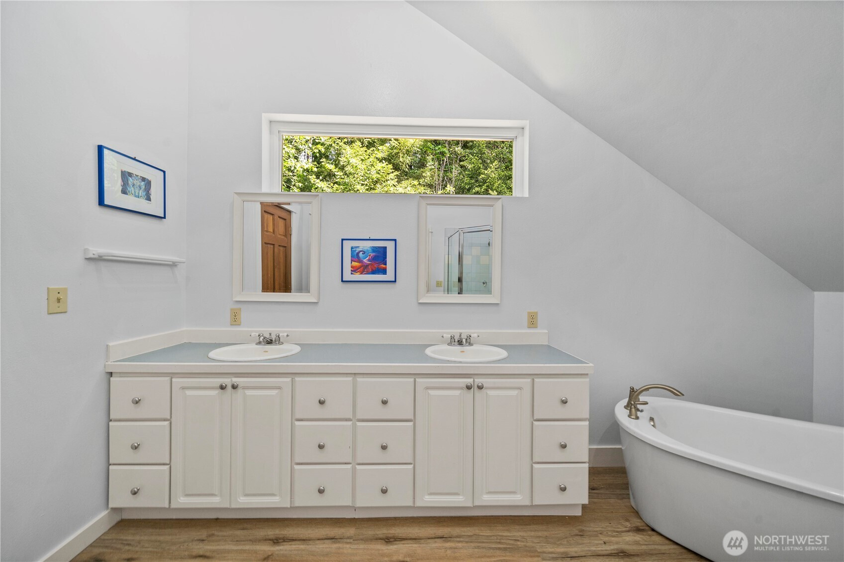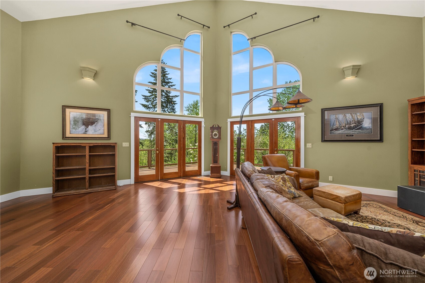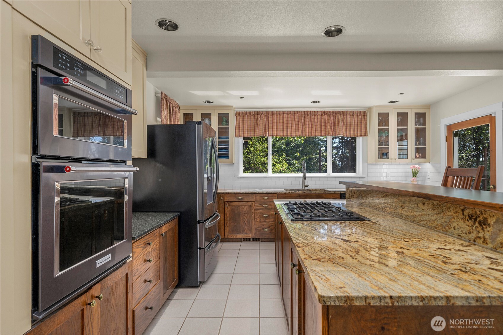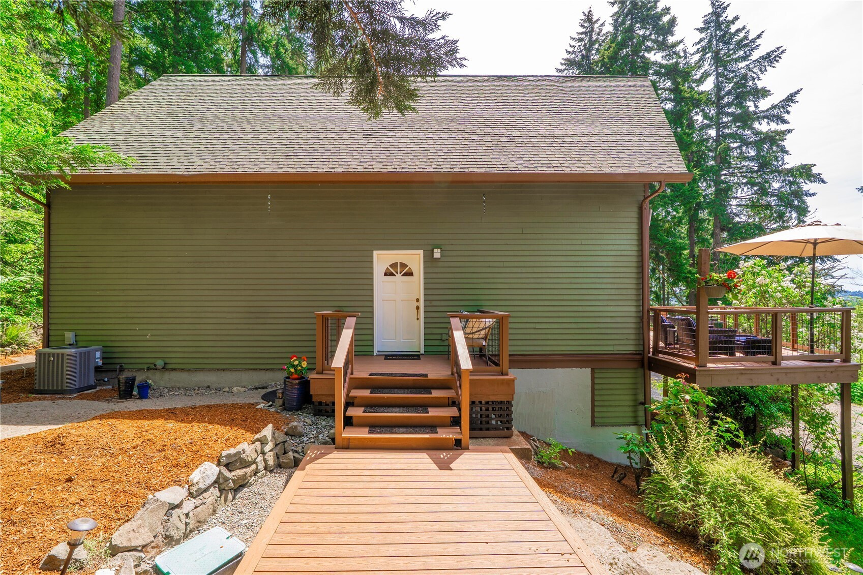 Mechanic’s dream or incredible home business opportunity featuring a 1,400 SF detached shop, paired with a stunning 3,500+ SF custom home tucked away on 1.6 private acres in Edgewood. This thoughtfully designed retreat, built by the original owners, offers beautifully crafted living space with expansive windows that capture sweeping panoramic views and breathtaking sunrises and sunsets. The home features four bedrooms with potential for up to five, as additional rooms include closets, plus a dedicated home office that makes working from home effortless. Soaring ceilings, rich wood floors, and walls of windows fill the home with natural light, while the kitchen flows seamlessly to an expansive deck showcasing privacy and territorial views—perfect for entertaining or simply unwinding in comfort. The lower level offers a spacious recreation room with a full wet bar, abundant storage, laundry room, and a separate entrance ideal for entertaining, multigenerational living, Airbnb, or rental potential. New carpet installed in 2025 adds fresh appeal. Outside, enjoy RV parking with an aluminum cover, garden beds, and a fire pit. The lot extends to the upper cul-de-sac, offering possible subdivision or future build potential (buyer to verify). With no HOA, award-winning water, and a rare blend of luxury, flexibility, privacy, and freedom. This exceptional property truly has it all.