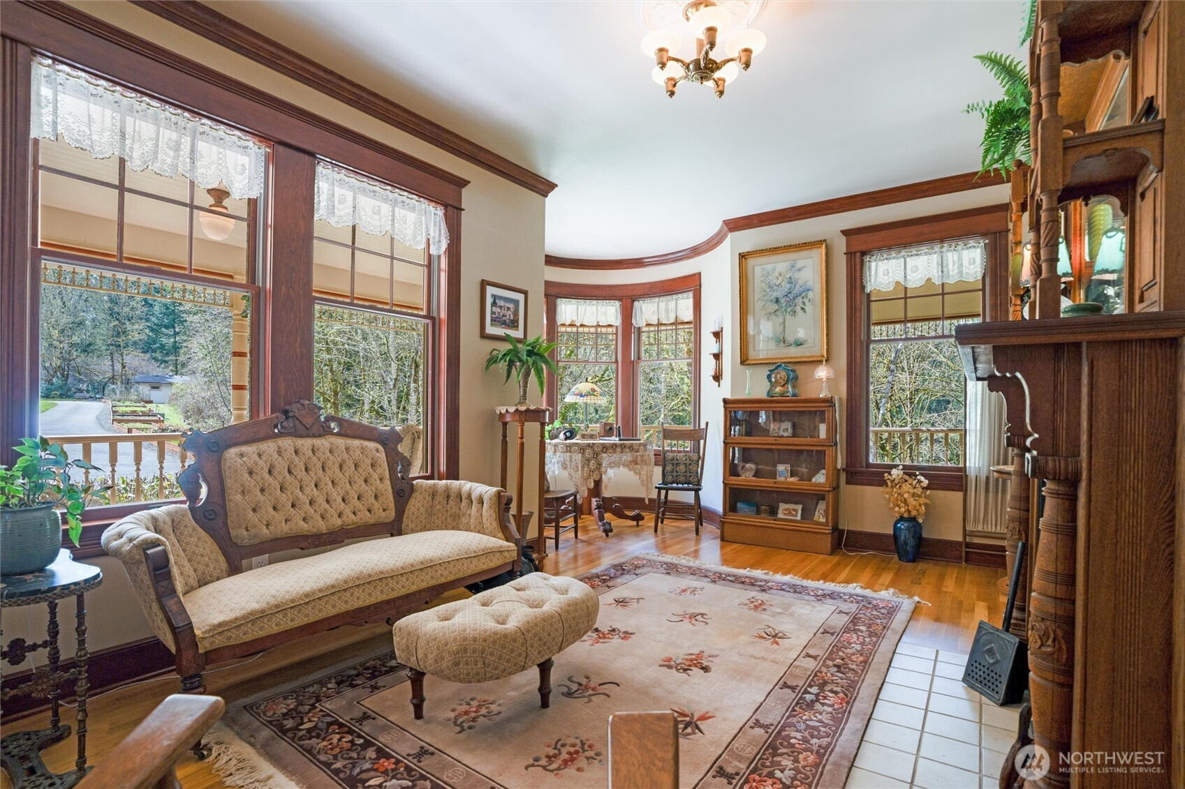 Stunning storybook custom-built Victorian estate in Gig Harbor is on the market for the very first time! Step into a timeless escape where quality craftsmanship, character, & quiet luxury come together perfectly. Nestled on 3.61 acres across two parcels, this home feels like a private retreat with its peaceful seclusion surrounded by natural beauty. Inside, over 5000 sq. ft. unfolds with intention & grace, from the elegant parlor & formal dining room to the warm, welcoming kitchen crowned with a classic tin ceiling. Oak hardwood floors run underfoot, while leaded & stained glass windows cast soft, colorful light throughout. Rich, solid wood millwork & custom cabinetry speak to the level of craftsmanship honored here. This home offers 4 bedrooms, 3 baths, a dedicated office, & an expansive lower-level perfect for gathering, entertaining, or simply spreading out. An unfinished attic provides abundant storage & future potential. Outside, the home's architectural presence is unforgettable. A striking 3-story turret, imbricated shingles, ornamental frieze, & intricate gingerbread trim create a true Victorian masterpiece. The covered wrap-around porch invites morning coffee or evening reflection, while the grounds are designed for both beauty & enjoyment, featuring an in-ground pool, hot tub, circular driveway, & territorial views. With a location across the street from schools & next to Kopachuck State Park, this home offers a rare blend of seclusion and convenience.