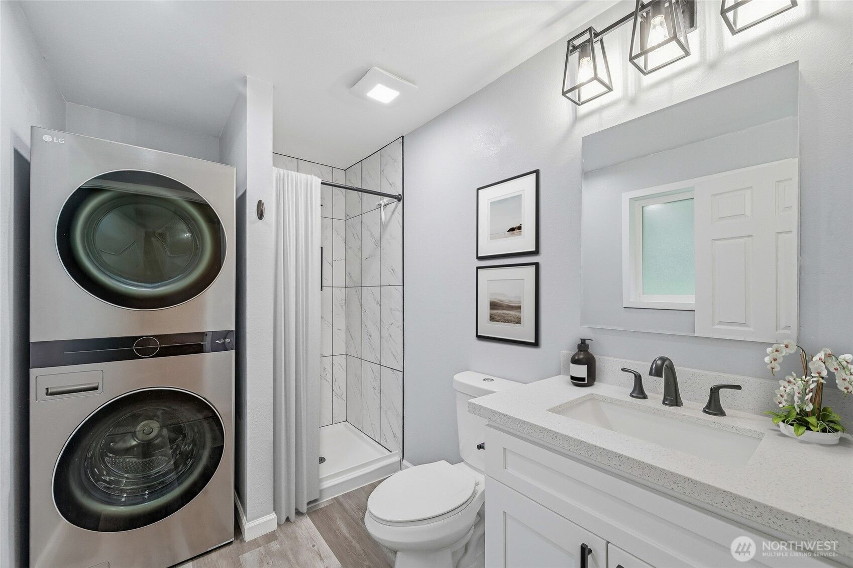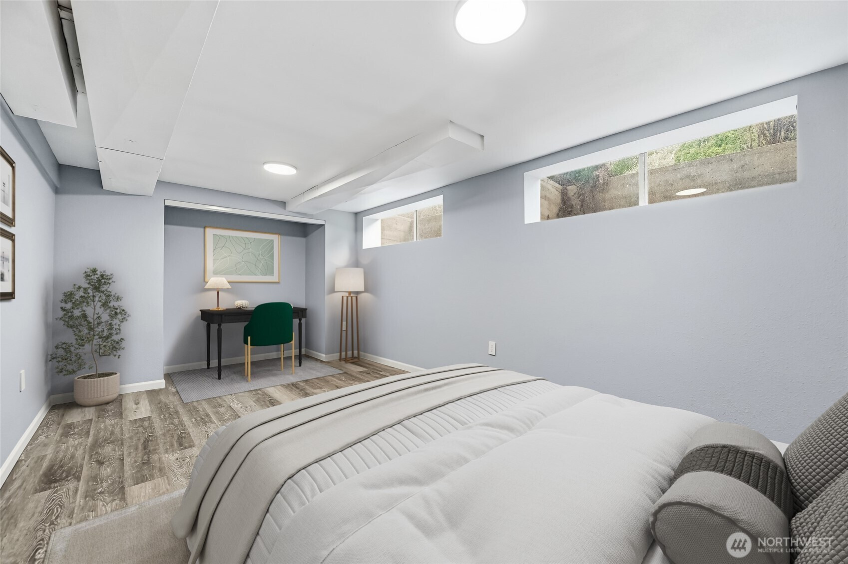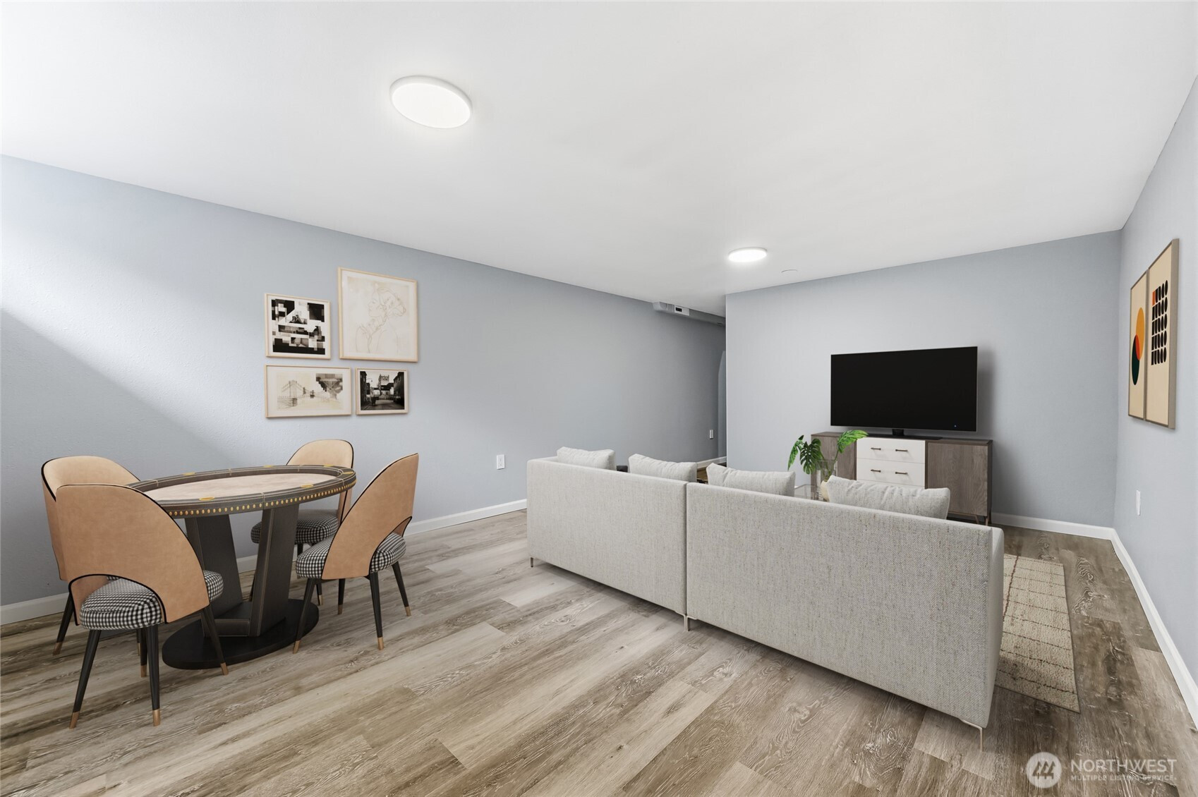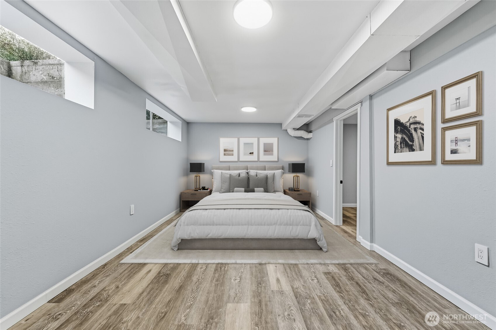 Mid-Century Modern Show Piece! Pristine Home In Quiet Established Neighborhood! Totally remodeled property of 3-4 bedrooms & 2 bathrooms. Polished hard surface floors greet at the front door & continue throughout the home. Great room of windows for living/dining offers plenty of natural light & opens to spacious covered relaxing patio. Expansive sized kitchen has plenty of cabinets, counter space & roomy informal eating nook. Primary ste is airy, good-sized, with attractive bathrm. 2-guest bedrooms share full sized bath. Downstairs basement has a massive family room that can handle your largest of furniture. Additionally there is a bonus or 4th bedrm downstairs. Newer appliances-furnace-water heater, huge level lot, 2-car garage, RV park!