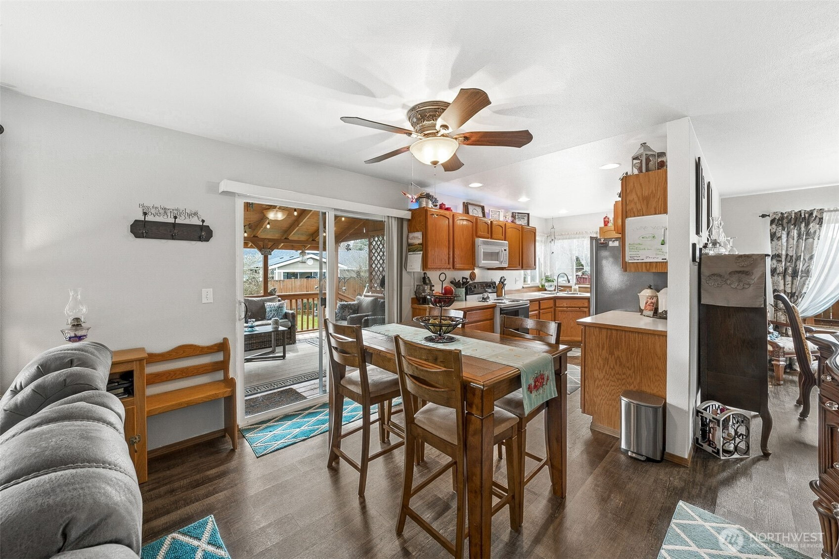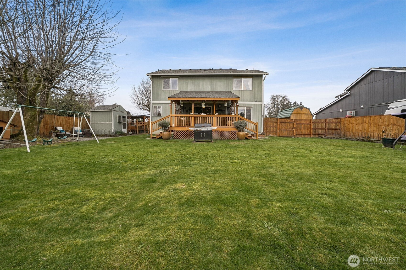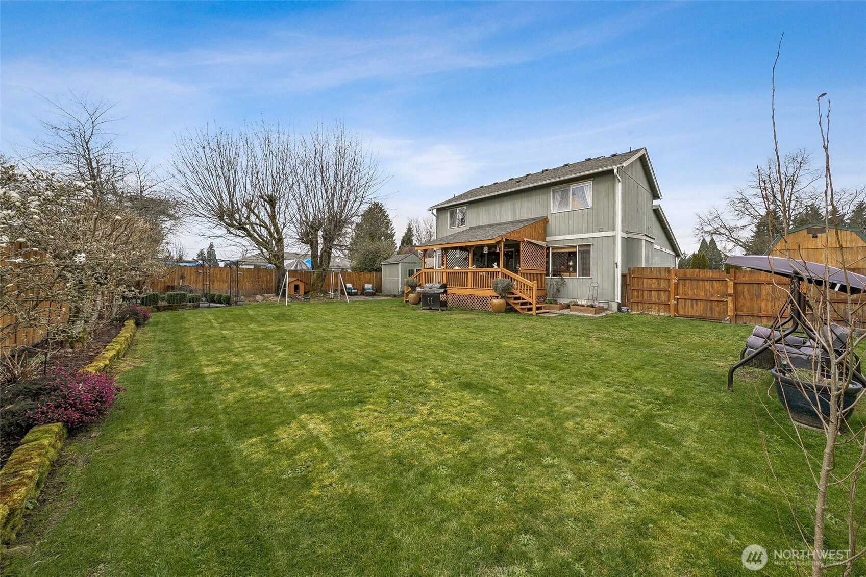Lovingly maintained home in the Parkland community on .22 acre lot! Covered front porch is so relaxing while enjoying views of the mature garden. Inside, the formal living room features a large window that fills the space with natural light. Formal dining room showcases an elegant chandelier, and is joined with the formal LR, making it perfect for gatherings. The kitchen offers abundant prep space and plenty of cabinetry for storage, with a corner window overlooking the backyard. The cozy breakfast nook w/ceiling fan and slider lead you to the covered back deck, while the adjoining family room features a gas fireplace and a niche above for your TV. A convenient half bath and laundry room complete the main level. Upstairs you’ll find the primary suite with ceiling fan, two closets, one of them being a walk-in closet, and full ensuite bath, along with 3 additional generously sized bedrooms and a full guest bath. Step outside to a relaxing covered back deck, perfect for entertaining or unwinding. The HUGE fully fenced backyard offers incredible landscaping, fruit trees, shed, chicken coop, with plenty of room for gardening and play! To the side of the house, there is plenty of room for your RV along with an additional large Shed with plenty of storage. Centrally located with easy access to shopping, schools, dining, and entertainment! A great location with everything you need just minutes away. Schools, shopping, and entertainment! 10k towards new flooring w/full price offer.