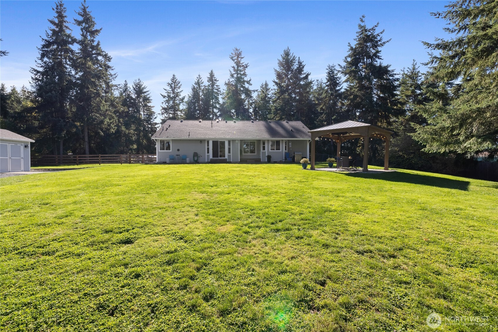 Why not top off your home search today? You’re close to Meridian yet, without a HOA dues or regs, it’s like country living. Quiet! Yes! From the main entry to the dining area the vaulted ceilings afford a distinct openness, making the living areas with den, sitting area & the enhanced kitchen with granite and abundant cabinets feel much larger than 2,024 sf. Of course there are 3 bdrms, 2 bathrooms & the spacious primary has a WI Closet, bath featuring vessel sinks, soaking tub & shower. Plus sliders to the backyard. Additional features include 3 car insulated garage, cabinets galore in the laundry room and the fully fenced backyard has a garden area, storage shed and a gazebo. Outdoor living at its finest. I think you’ll agree.