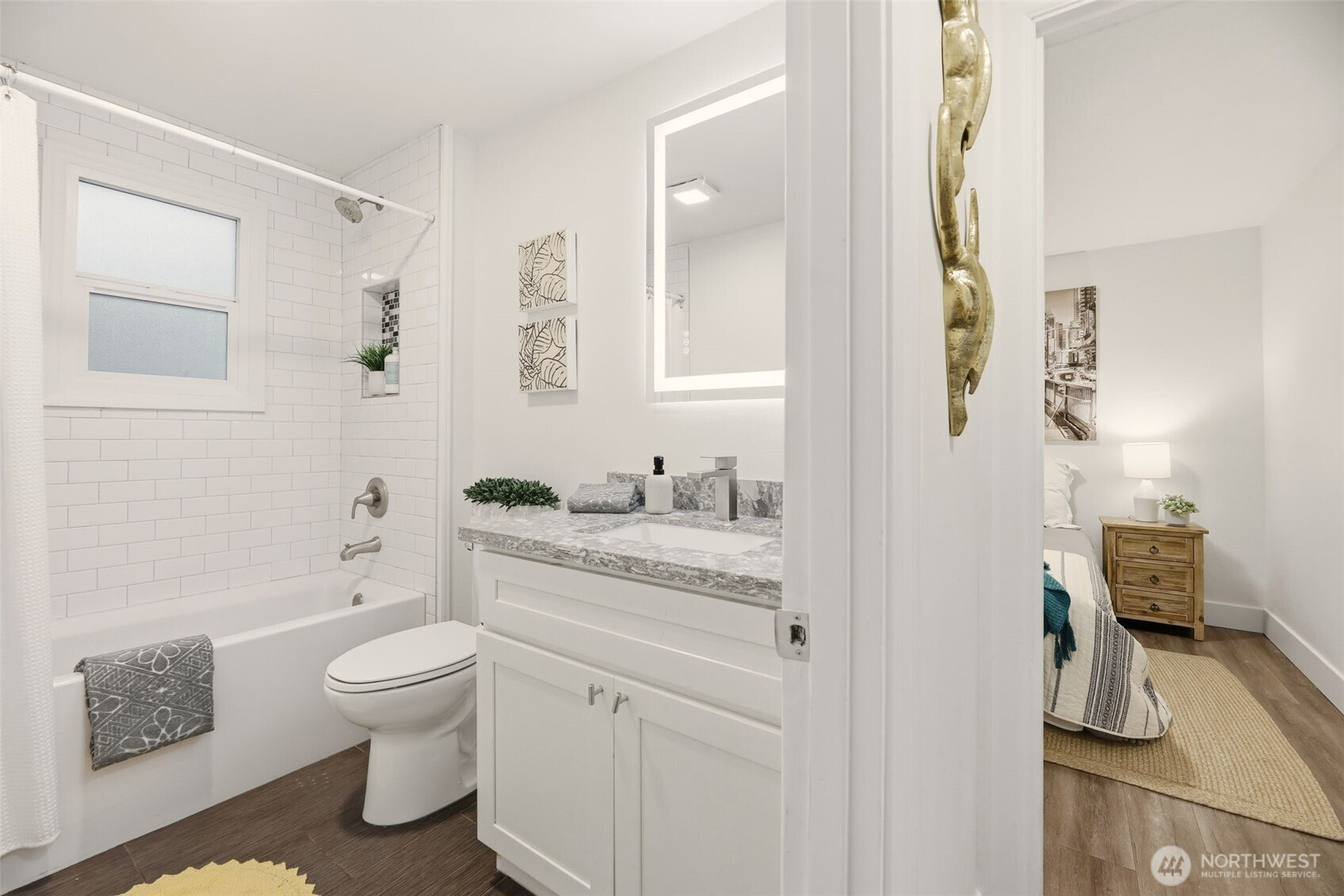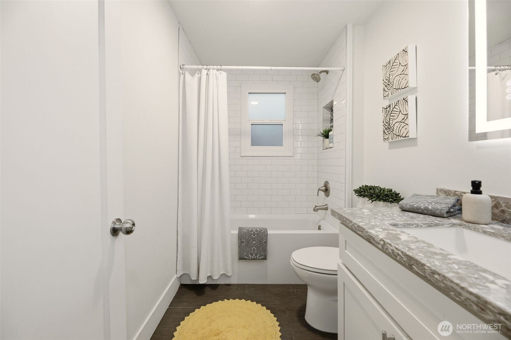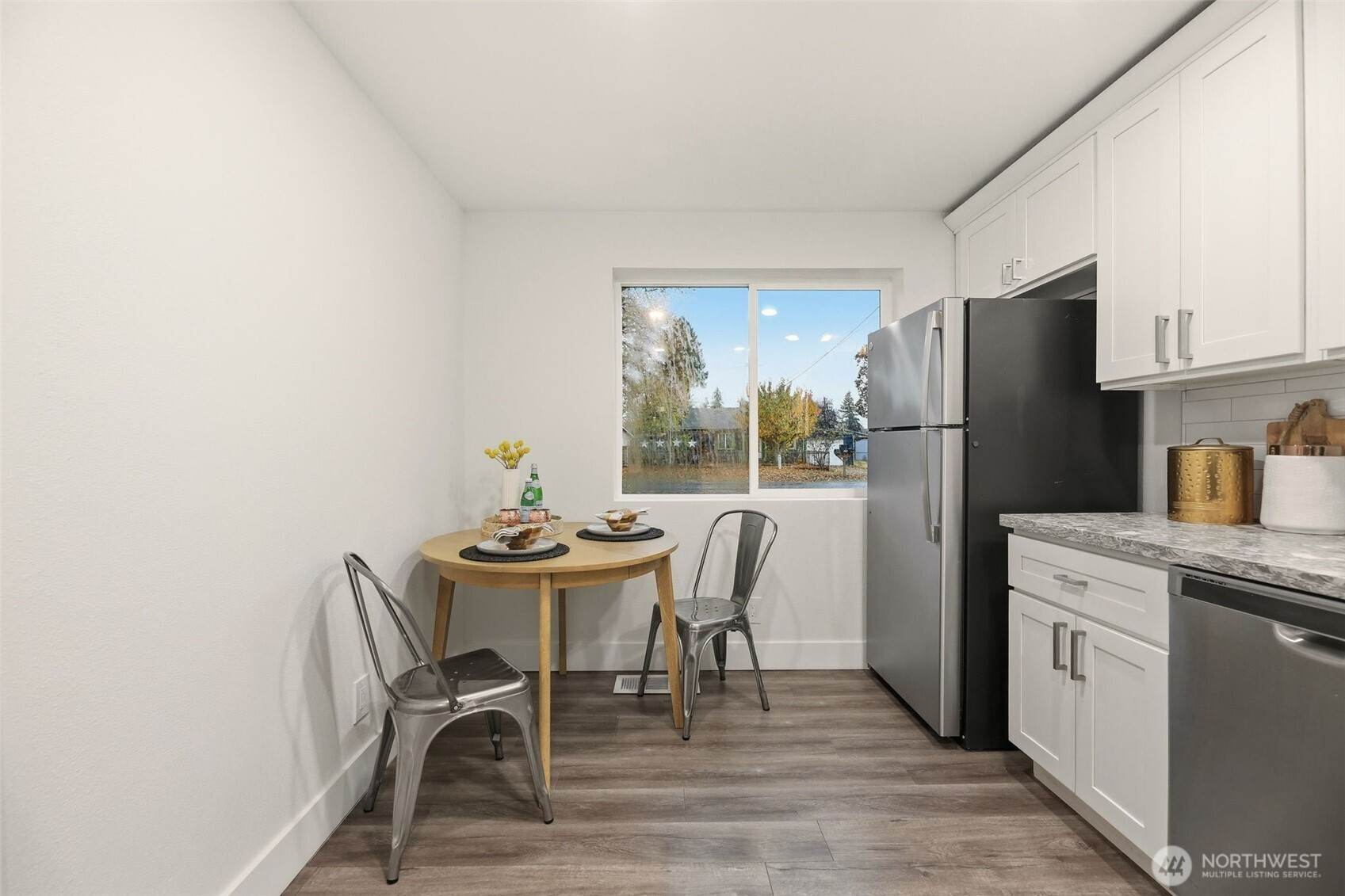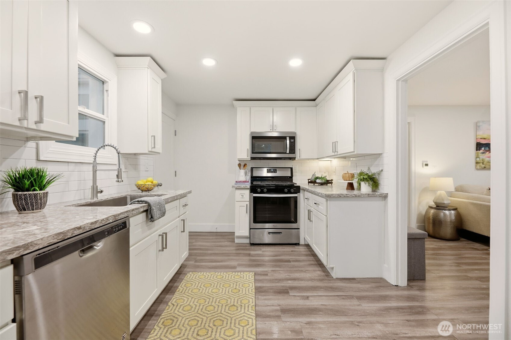This charming 1 story home is fully remodeled with a kitchen that features quartz counters, SS steel appliances, white shakers, Double pane windows throughout. Interior/exterior is freshly painted with spacious bedrooms.The bathroom have new vanities, quartz counters,& faucets. One car garage with a automatic opener that was recently installed and just added fresh gravel for the driveway. Bring your vision for the 702sf unfinished basement where washer and dryer is located. Take advantage of the leveled backyard for all your outdoor or build a potential DADU! Centrally located around the coveted Parkland area with access to major highway's & JBLM (Military Base).