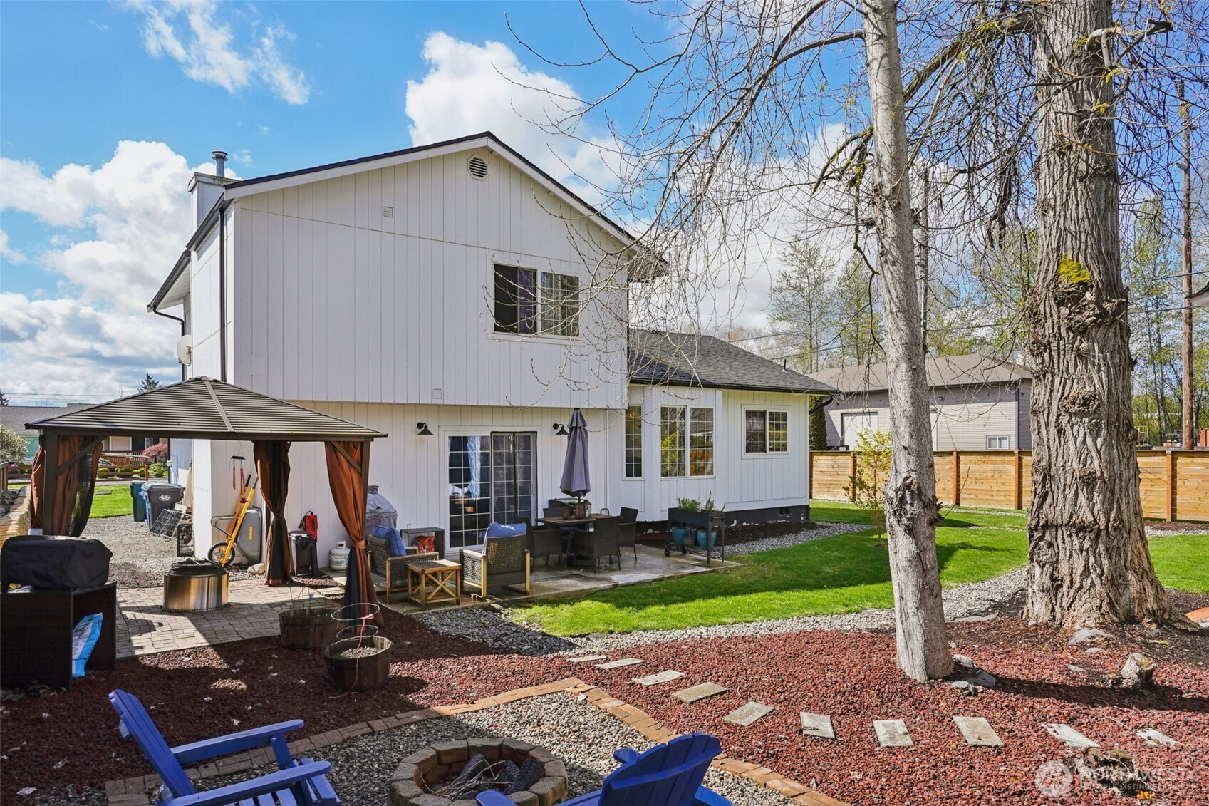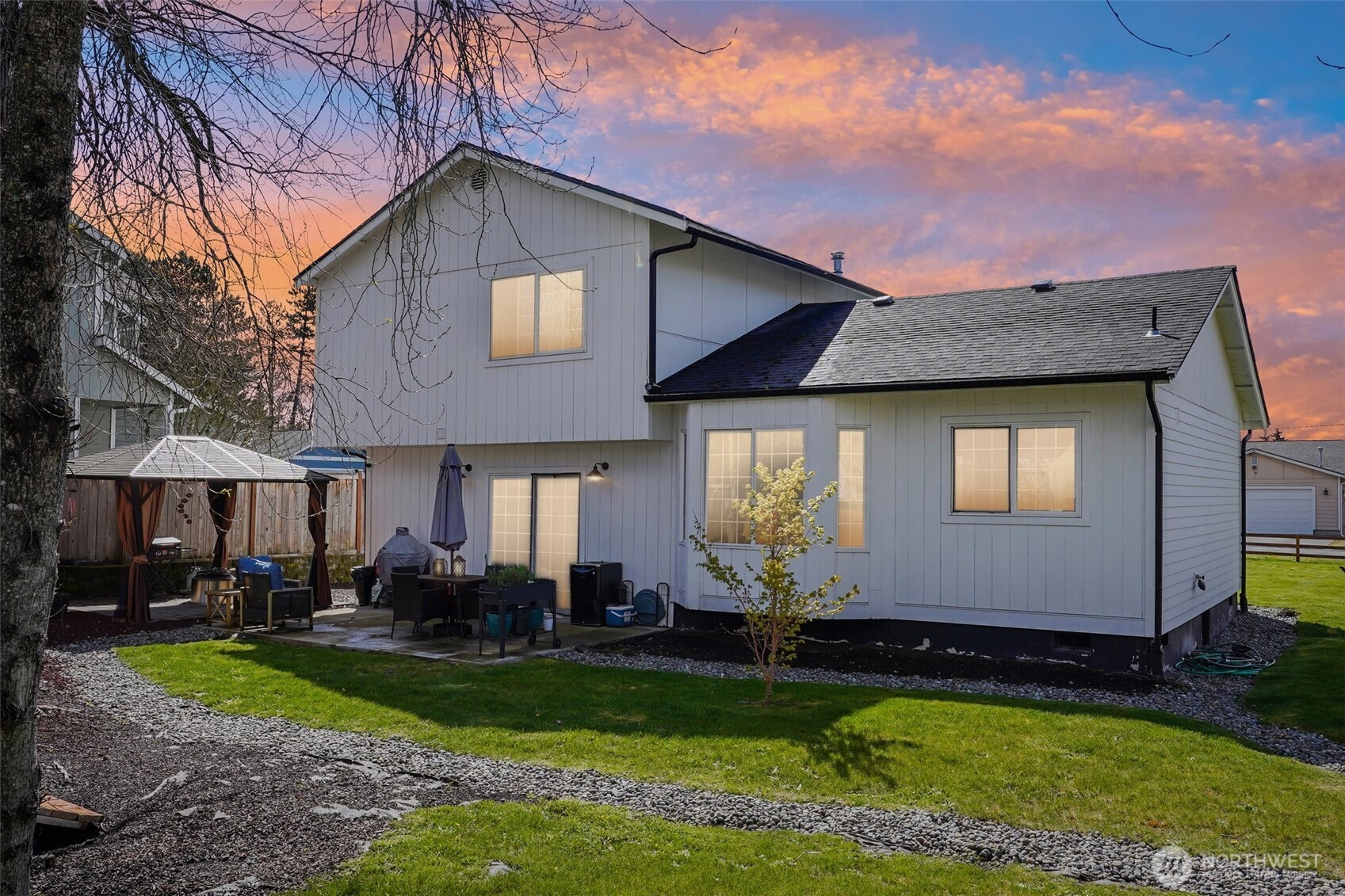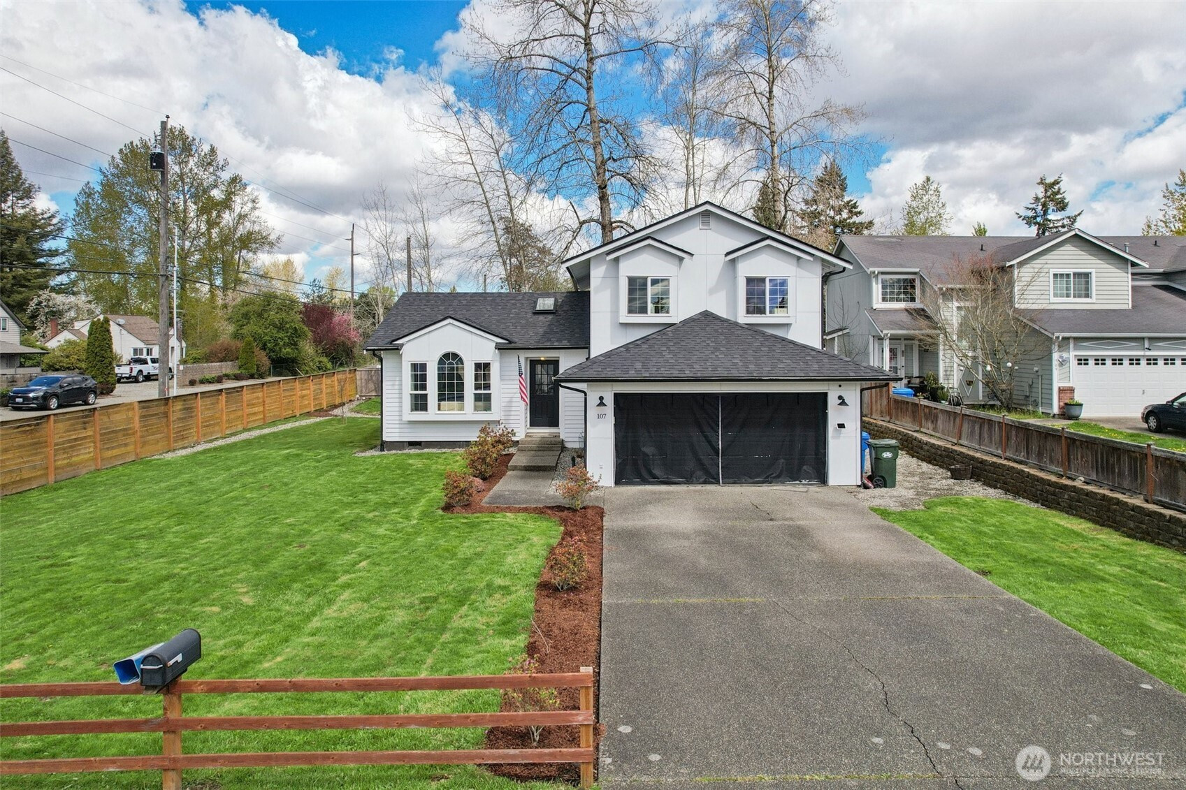 Beautifully remodeled Midland home with extensive 2022 updates, open concept living, vaulted ceilings, and abundant natural light. The renovated kitchen features quartz countertops, custom cabinetry, stainless steel appliances, tile backsplash, and an oversized island. Just a few steps down, the spacious living room offers a comfortable second living space, while upstairs features 3 bedrooms, including a spacious primary suite with walk-in closet and jetted tub. Newer roof, siding, kitchen, bathrooms, flooring, millwork, doors, fence, and landscaping. Situated on over a 9,000 sq ft corner lot in a cul-de-sac, this home offers an extended driveway, RV parking, 2 car garage, storage shed, partially fenced yard, and a brick patio with pergola, creating a great space for relaxing or entertaining. Convenient access to JBLM, shopping, schools, and major commuter routes. VA eligible buyers may have the opportunity to assume the seller’s 4.125% interest rate. In addition, buyers may be eligible for up to a 1% credit through 1st Security Bank.