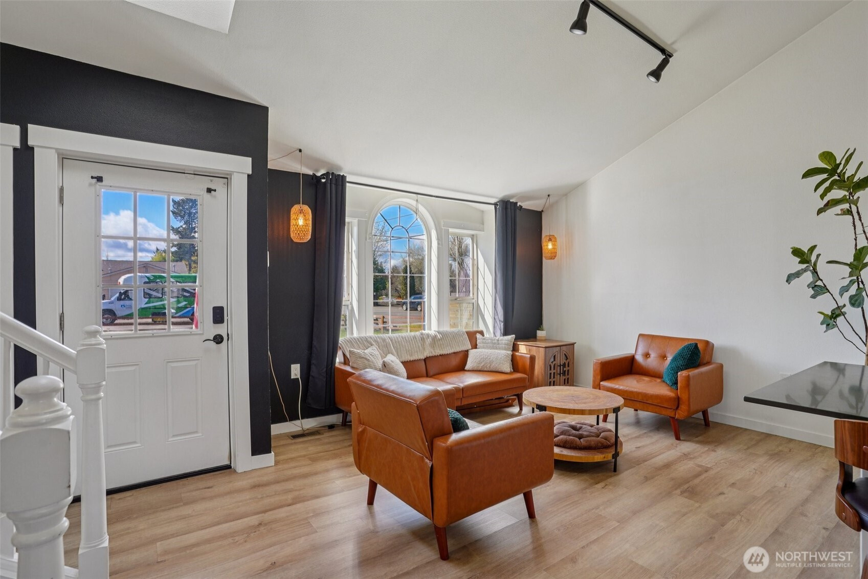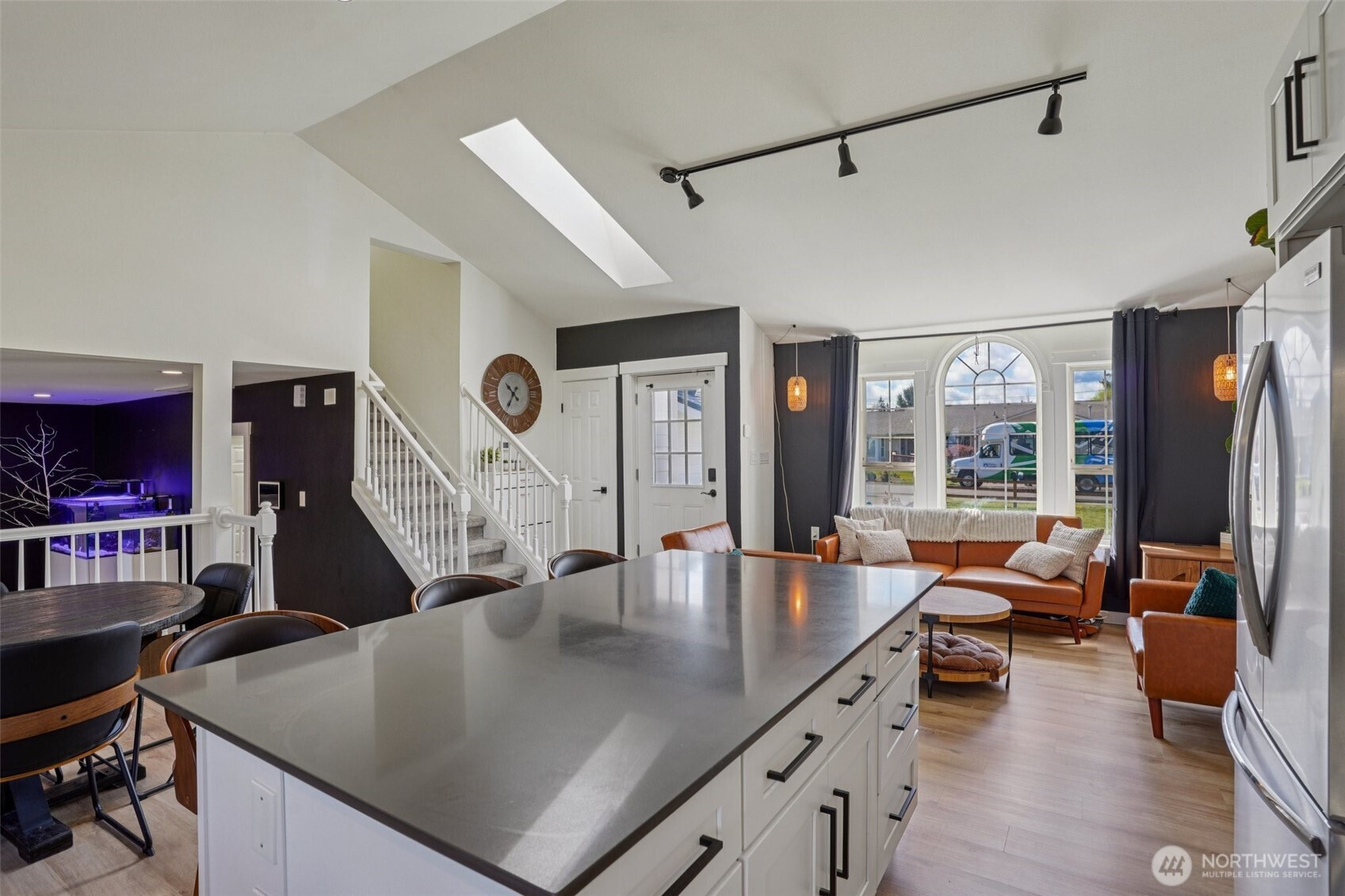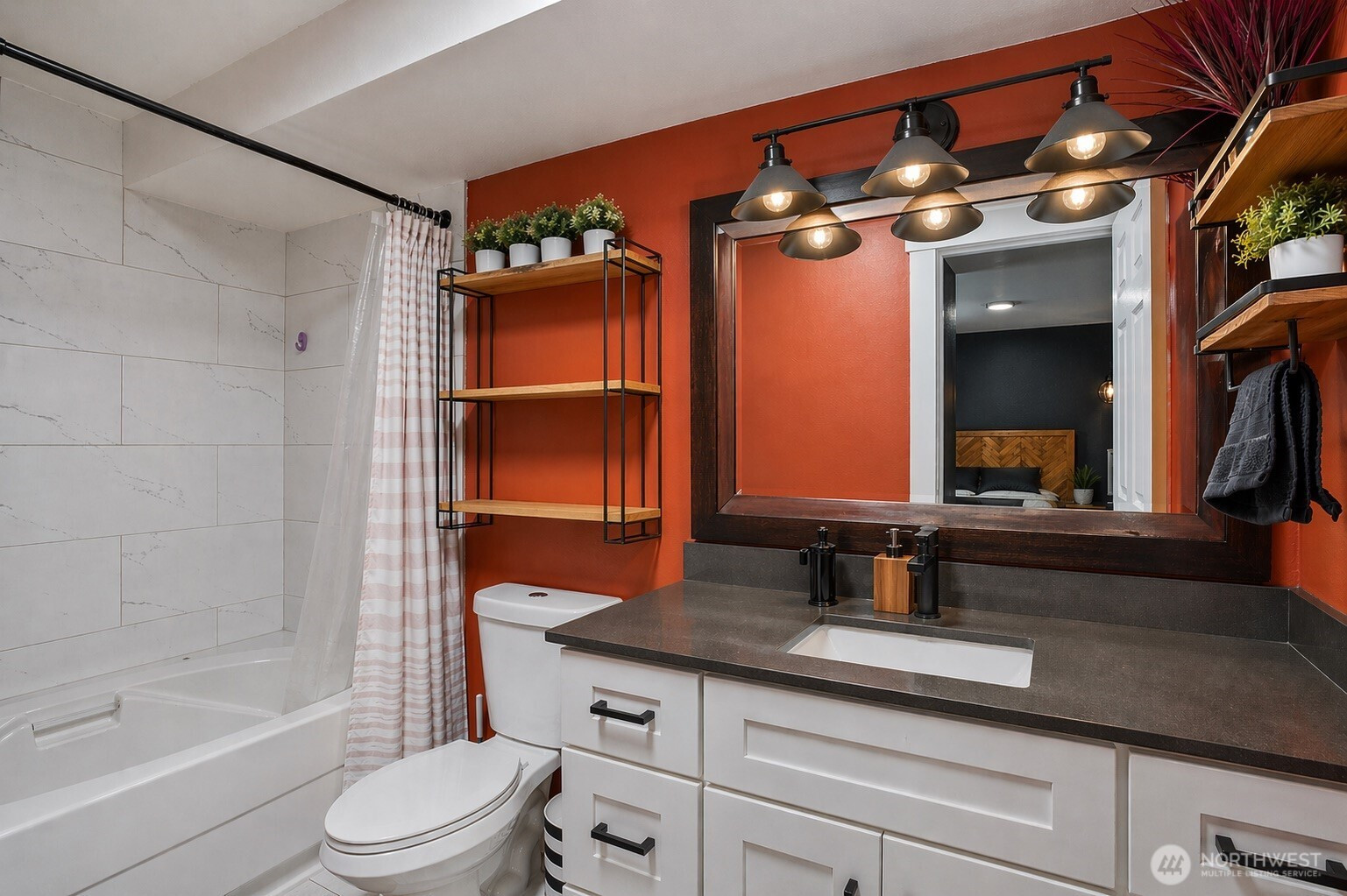 Beautifully remodeled Midland home with extensive 2022 updates, open concept living, vaulted ceilings, and abundant natural light. The renovated kitchen features quartz countertops, custom cabinetry, stainless steel appliances, tile backsplash, and an oversized island. Just a few steps down, the spacious living room offers a comfortable second living space, while upstairs features 3 bedrooms, including a spacious primary suite with walk-in closet and jetted tub. Newer roof, siding, kitchen, bathrooms, flooring, millwork, doors, fence, and landscaping. Situated on over a 9,000 sq ft corner lot in a cul-de-sac, this home offers an extended driveway, RV parking, 2 car garage, storage shed, partially fenced yard, and a brick patio with pergola, creating a great space for relaxing or entertaining. Convenient access to JBLM, shopping, schools, and major commuter routes. VA eligible buyers may have the opportunity to assume the seller’s 4.125% interest rate. In addition, buyers may be eligible for up to a 1% credit through 1st Security Bank.