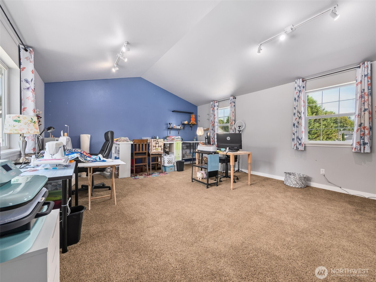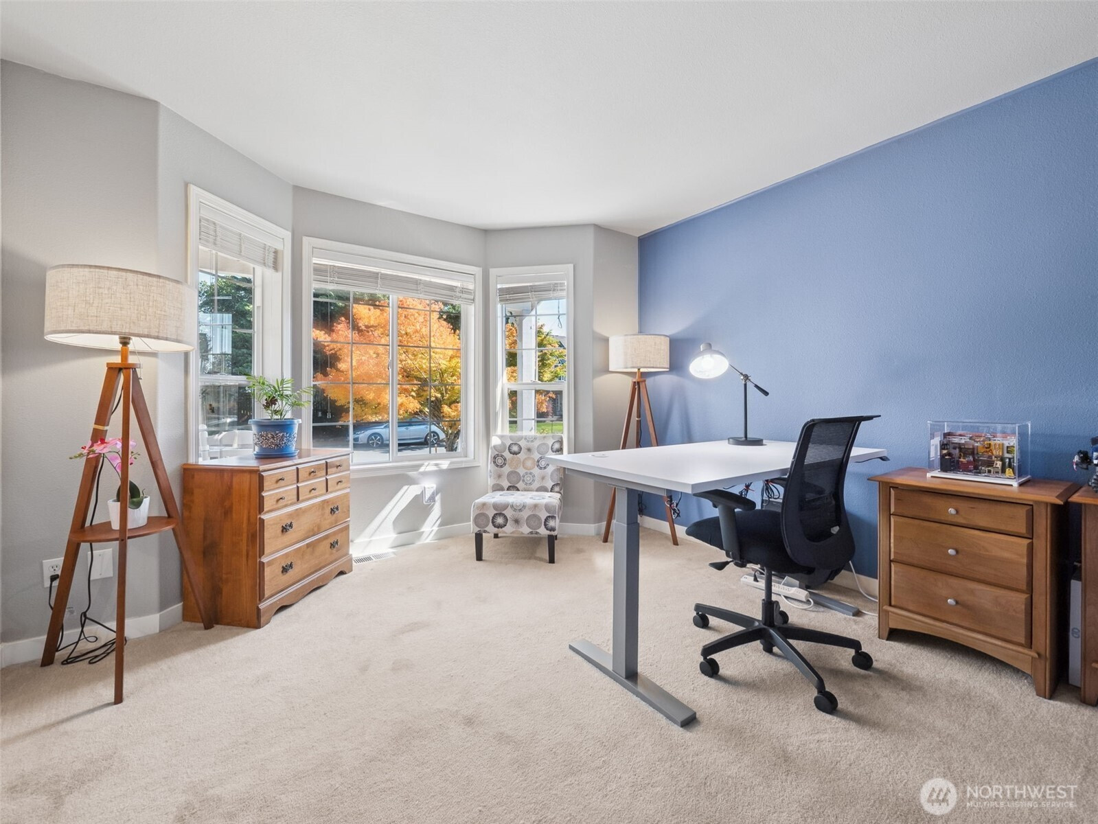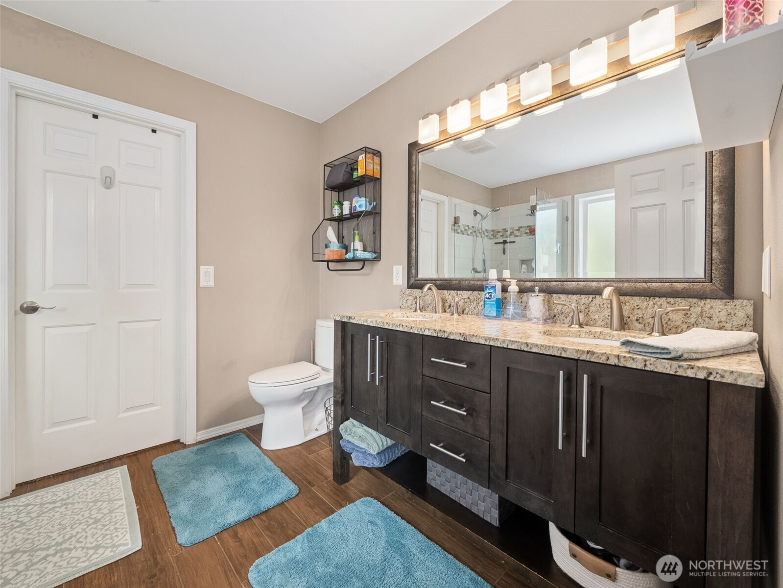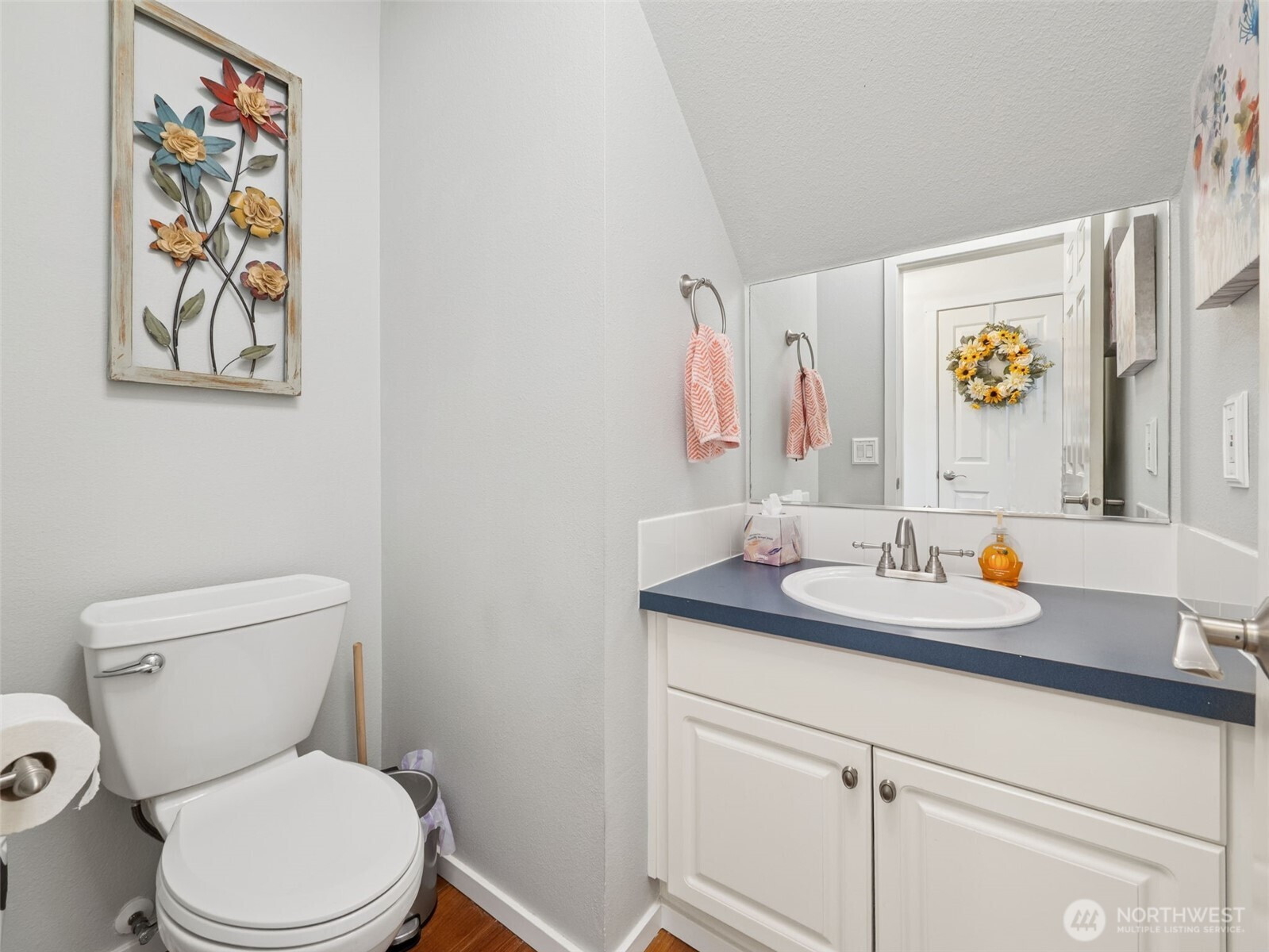 Tucked in a quiet neighborhood, this stunning 3-bedroom, 2.5-bath, 2,260 SQFT home rests on nearly a half-acre! Step inside to an inviting entry with hardwood floors, vaulted ceilings, & arched doorways. The main level offers an office, half bath, & formal dining room. Bright & open family room w/gas fireplace, flowing seamlessly into the updated kitchen. A slider leads to your fully fenced yard & backs to greenbelt, perfect for indoor-outdoor living. Upstairs, the owner’s suite boasts a five-piece bath w/soaking tub,shower, double vanity,& walk-in closet. Two bedrooms share a full bath, plus a bonus room above the garage. Storage Shed, RV parking, 3 car garage & massive driveway-all the space you've been looking for! This is a must-see!