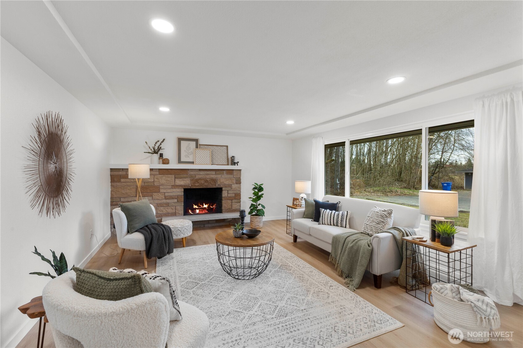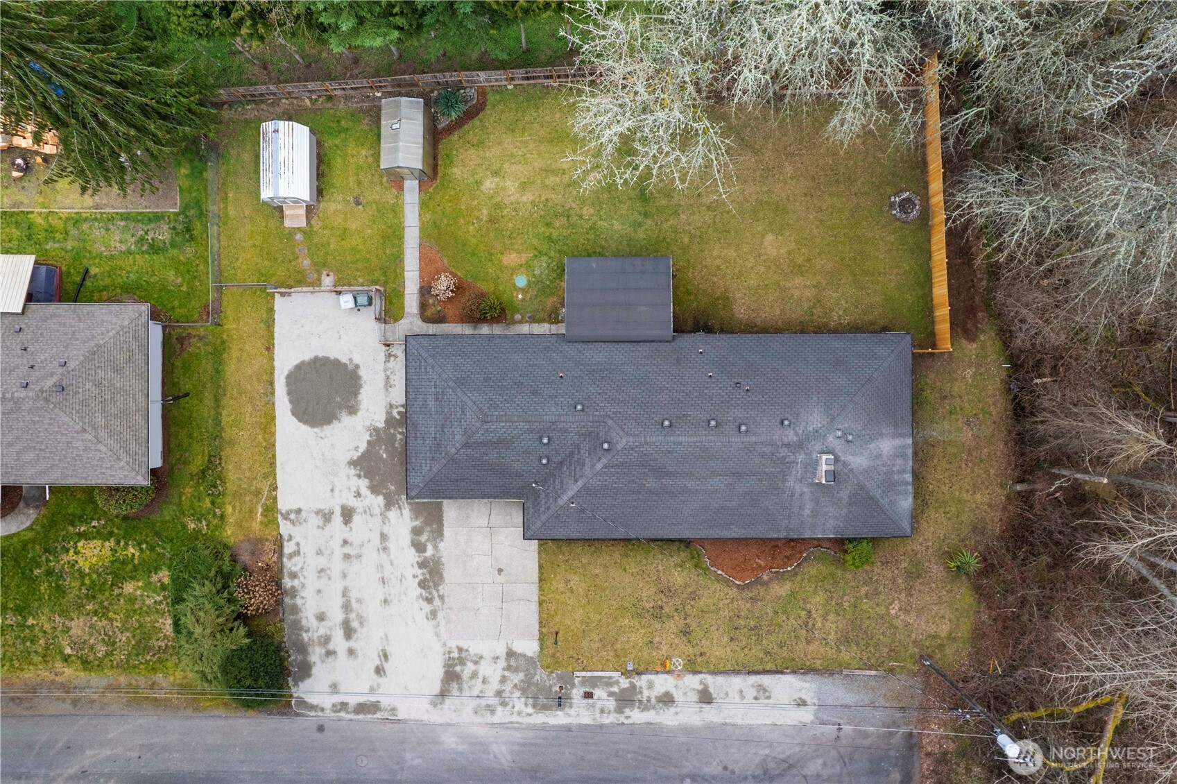 Tucked away on a quiet dead-end road and buffered by peaceful green space, this spacious single-story home offers privacy, flexibility, and room to spread out. The fully fenced backyard features a greenhouse, outbuilding, and plenty of space to garden, play, or entertain including a lovely covered patio. There’s also a massive gravel parking area perfect for RVs, boats, or extra vehicles—plus a two-car attached garage. Step inside to a light-filled interior that has been beautifully refreshed! The brand-new kitchen shines with modern cabinetry, quartz countertops, stainless steel appliances, and a stylish shiplap backsplash. Durable laminate flooring flows seamlessly throughout the home, connecting the generous living room, dining area, and separate family room—ideal for everyday living and hosting. A dedicated utility room and guest half bath add convenience and functionality. The primary bath features a fully tiled shower surround, new fixtures, and updated cabinetry, and shiplap accents for a fresh feel. All 3 bedrooms are spacious with ample closet space and plenty of room for all of accomodations. With new windows, fresh interior and exterior paint, updated lighting, and thoughtful upgrades throughout, this Midland Tacoma home is truly turnkey and ready for its next chapter.