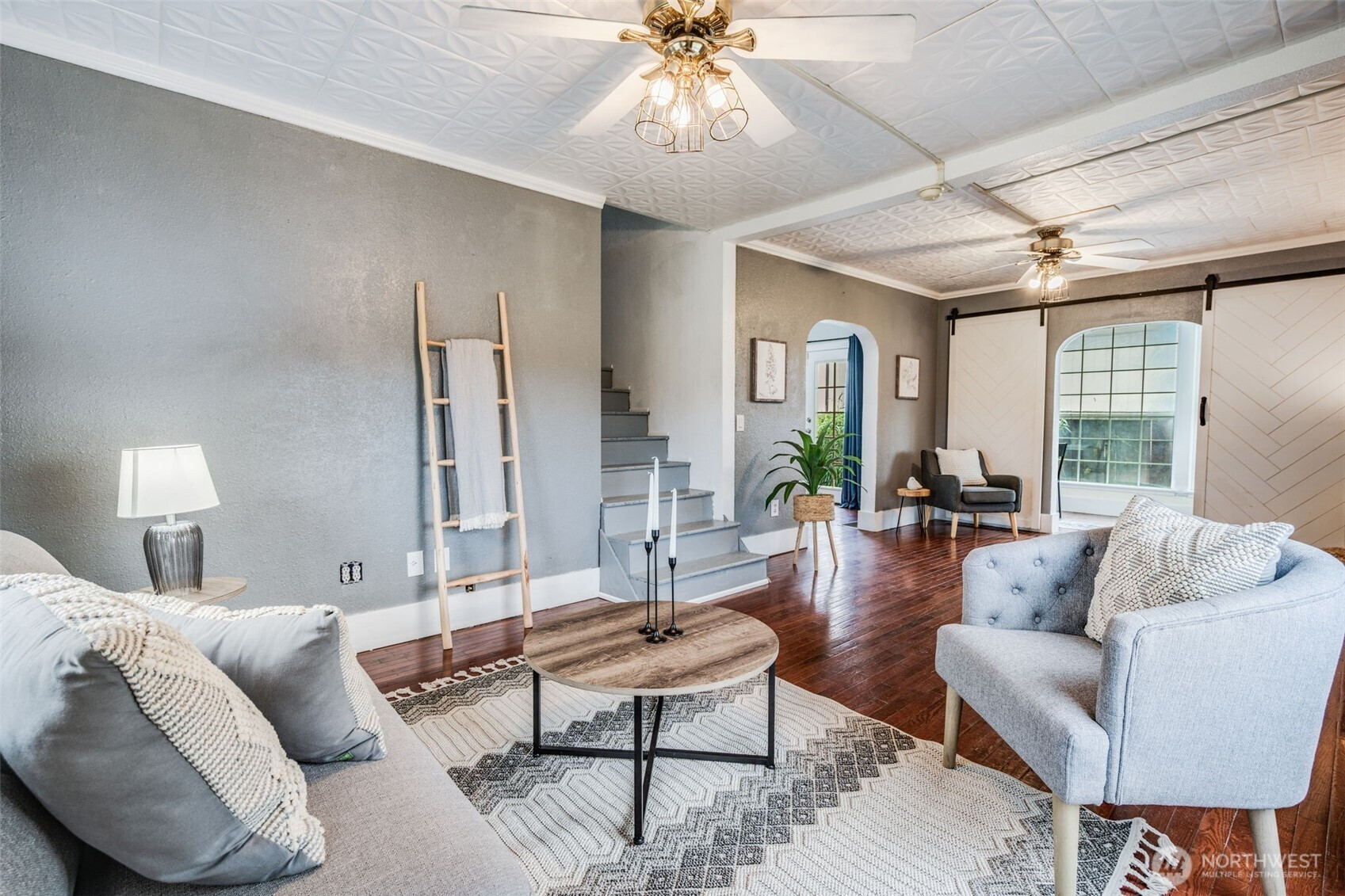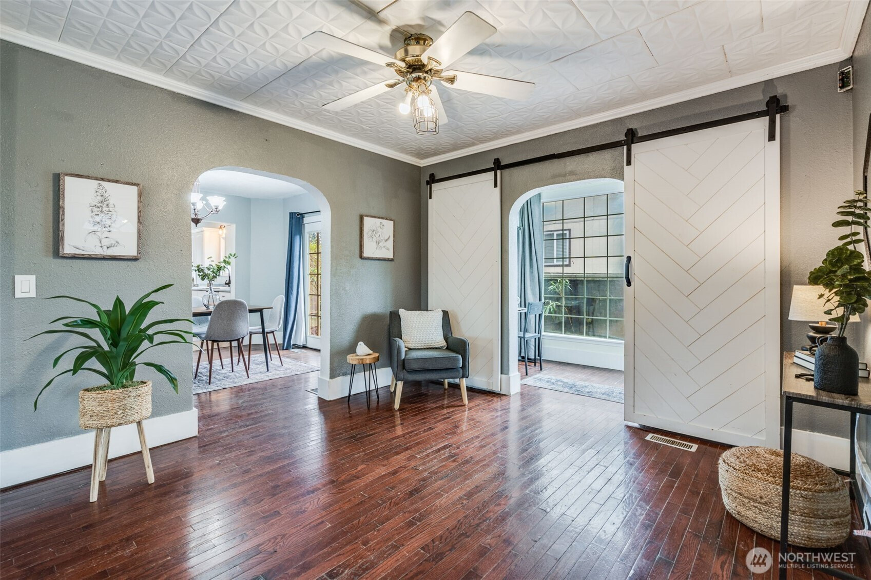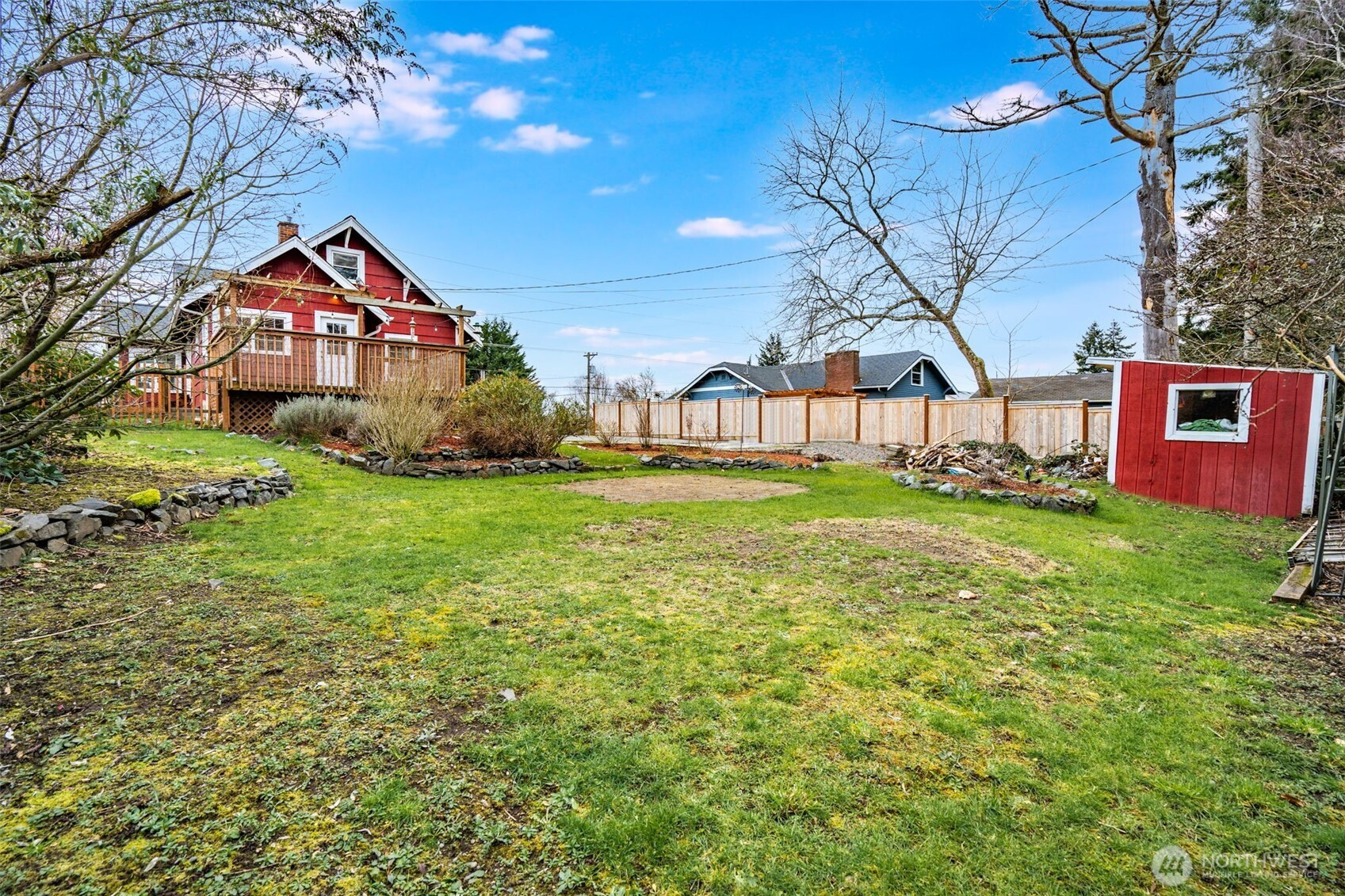 Charming 1910 Craftsman set on a generous sized lot in Tacoma! This 3 bedroom, 1 bath home offers over 1,500 SF of inviting living space with timeless character and thoughtful updates. Arched openings, French doors, barn door sliders, and abundant natural light create a warm, welcoming feel throughout. The spacious living and dining areas flow seamlessly, while the kitchen features ample cabinetry, updated appliances, and an adjacent eating nook. Upstairs, enjoy flexible bonus space ideal for a home office or media room. The unfinished basement provides excellent storage and future potential! Step outside to a large deck and partially fenced yard with garden space - perfect for entertaining, room to play, or even just relaxing evenings at home. A detached shed adds additional storage, and the long driveway offers plenty of off-street parking. With close proximity to transit, and easy access to local amenities, this classic Craftsman blends historic charm with everyday functionality. A rare opportunity to own a beautifully maintained home on an oversized lot in a convenient Tacoma location!