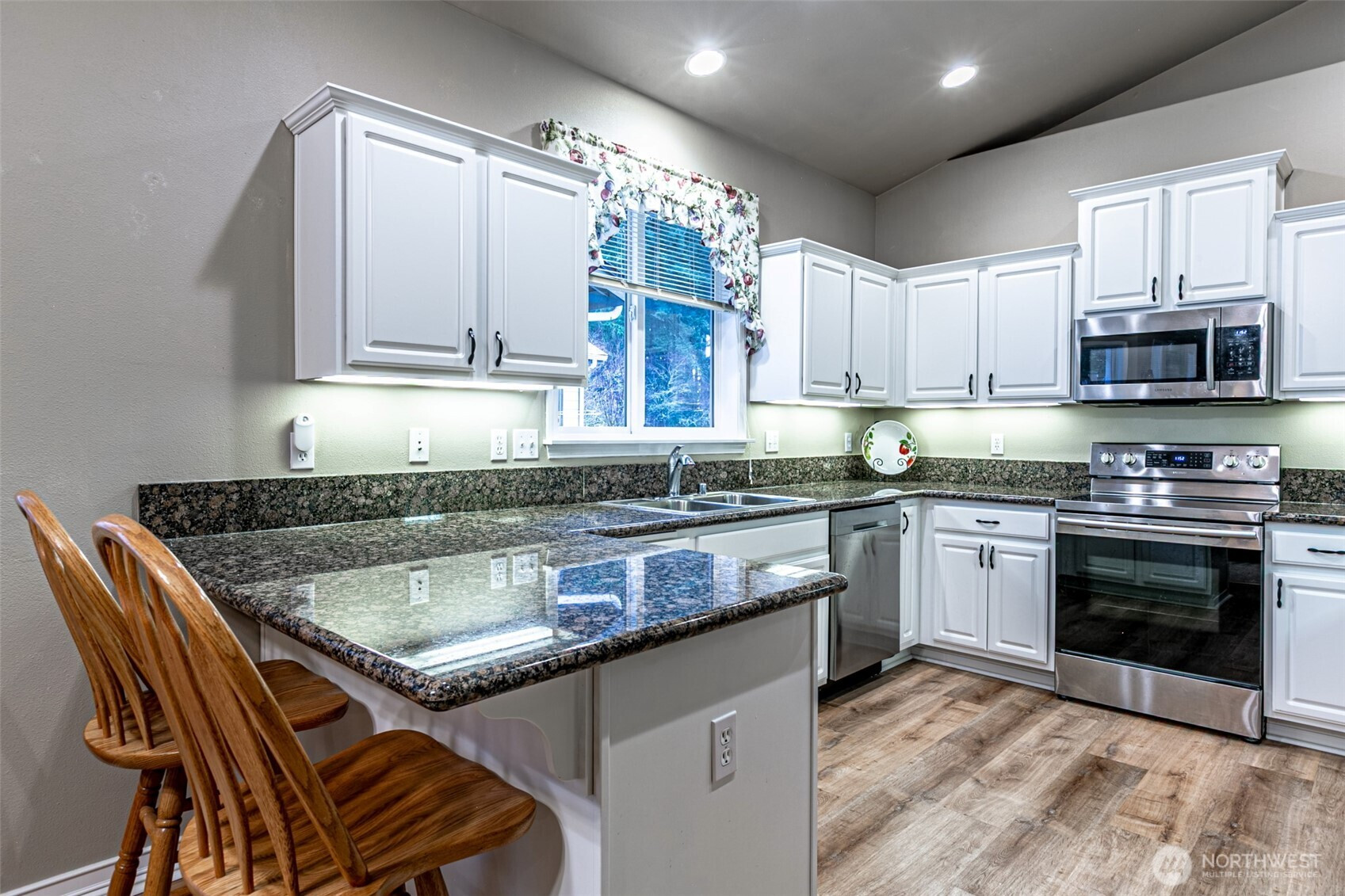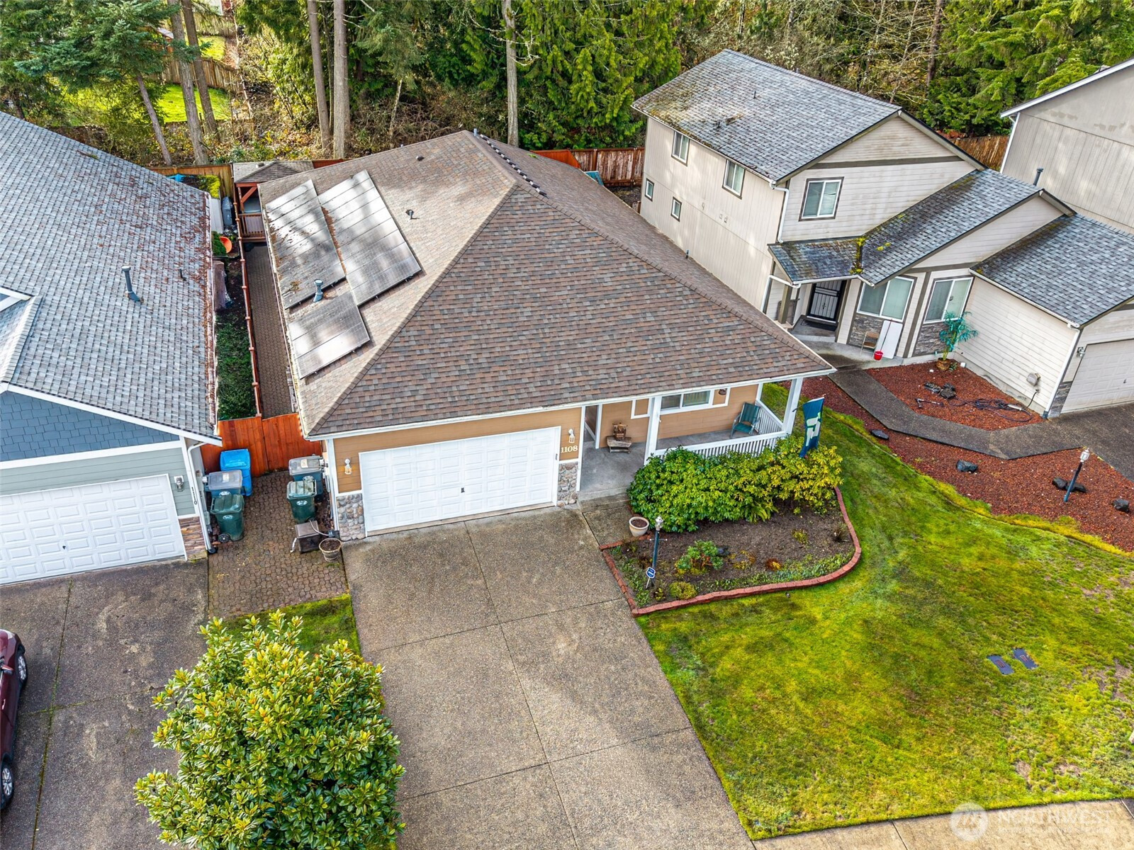 Welcome home to this beautifully well maintained 1,852 square foot Rambler! This 3 Bedroom, 2 bath home, has been updated inside & out. You’ll find durable laminate flooring entering the vaulted ceiling entryway, updated kitchen with newer stainless steel appliances. Open floor plan with a cozy living & dining room, with a large bay window, vaulted ceilings & gas fireplace! Spacious Primary suite offers the comfort of a 5 piece private bath, & huge walk-in closet with built in drawers & shelves. Low Maintenance fully fenced back yard with Gazebo covered Hot Tub, Trex decking, raised flower beds, & storage shed. 2 car garage includes storage shelves & workbench as well as overhead storage. Home amenities include - Solar Panels, New Fridge, New Gas water heater, 3 year old Heat Pump & Furnace, updated crawl space, 4 year old roof, & Hot Tub.
