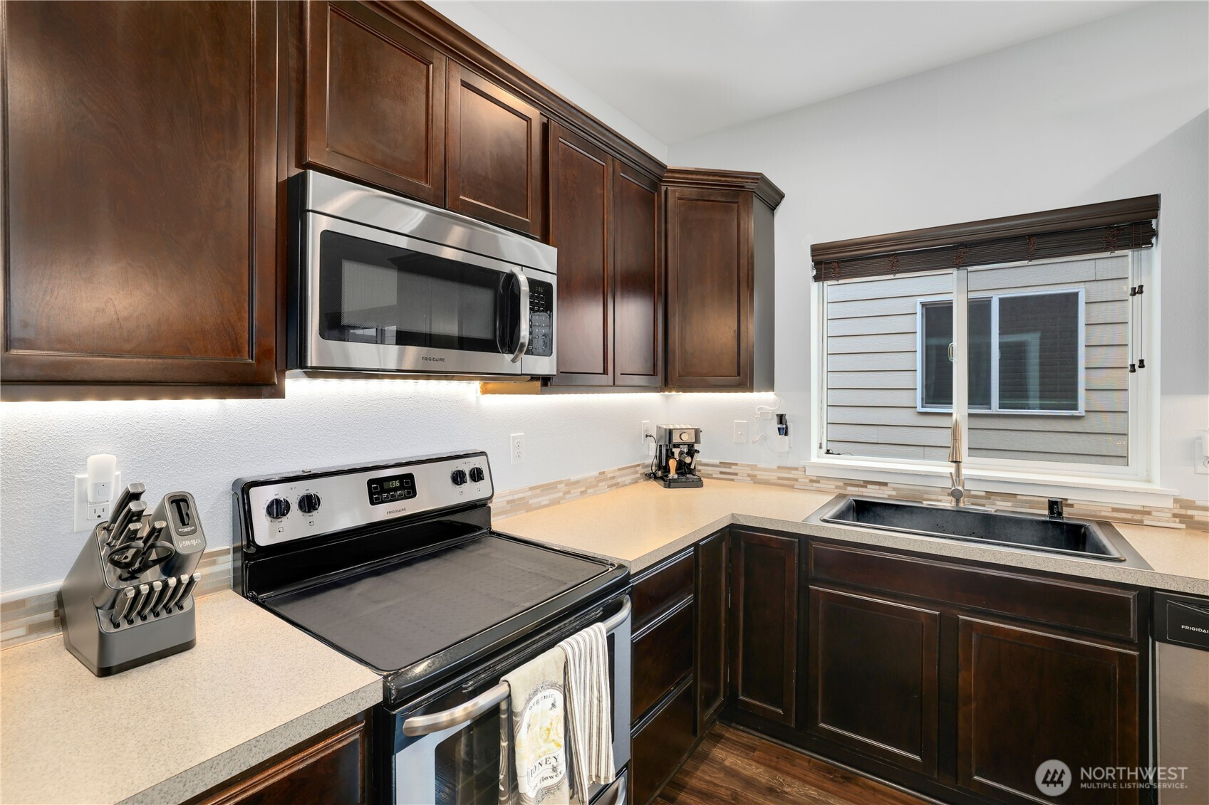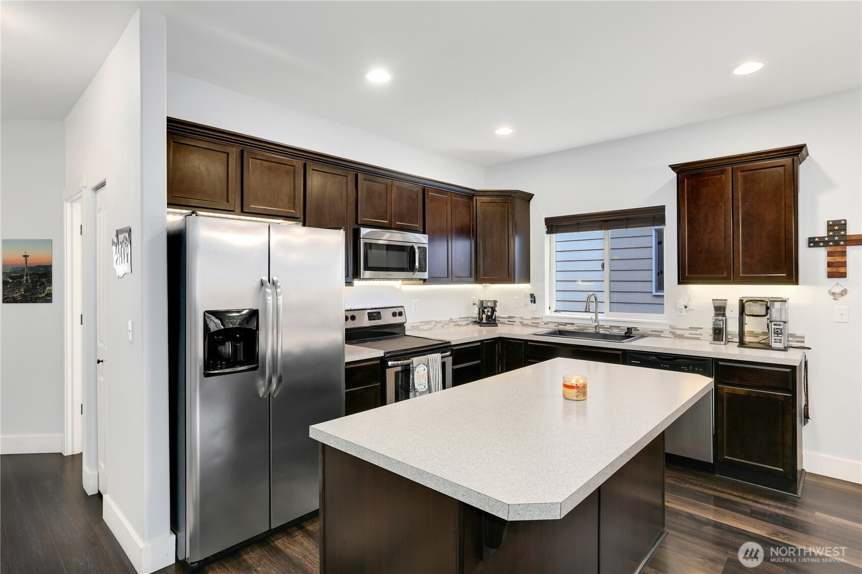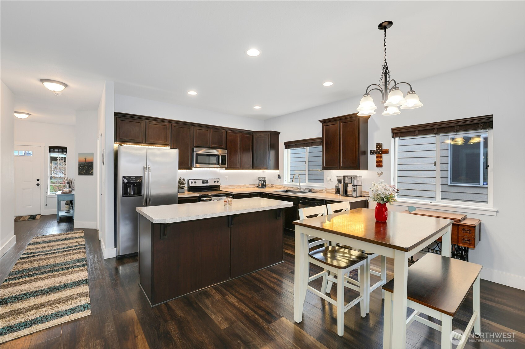 Welcome home to this beautifully updated 3-bedroom, 2-bath Spanaway rambler in excellent condition! This move-in ready home features brand new LVP flooring throughout, fresh paint, & updated trim & doors. Open concept dining & living room w/ a spacious kitchen boasting SS appliances, a large island, & huge walk-in pantry! The large primary bedroom offers comfort & privacy w/ a large walk-in closet, a beautifully updated 5-piece bath w/ a soaking tub, shower, & double sinks. Two additional beds & fully remodeled guest bath. Enjoy year-round outdoor living under the covered patio, ideal for relaxing & gatherings. Two car garage w/ Level 2 EV Charger. Conveniently located near JBLM, schools, shopping, & commuting routes. This one won't last!