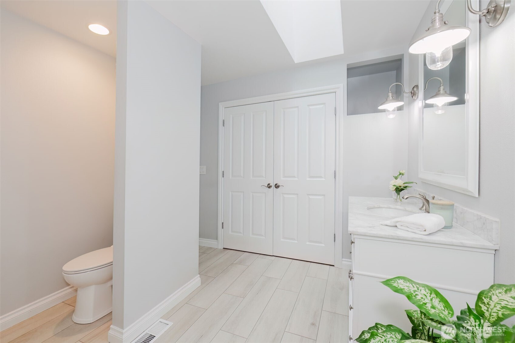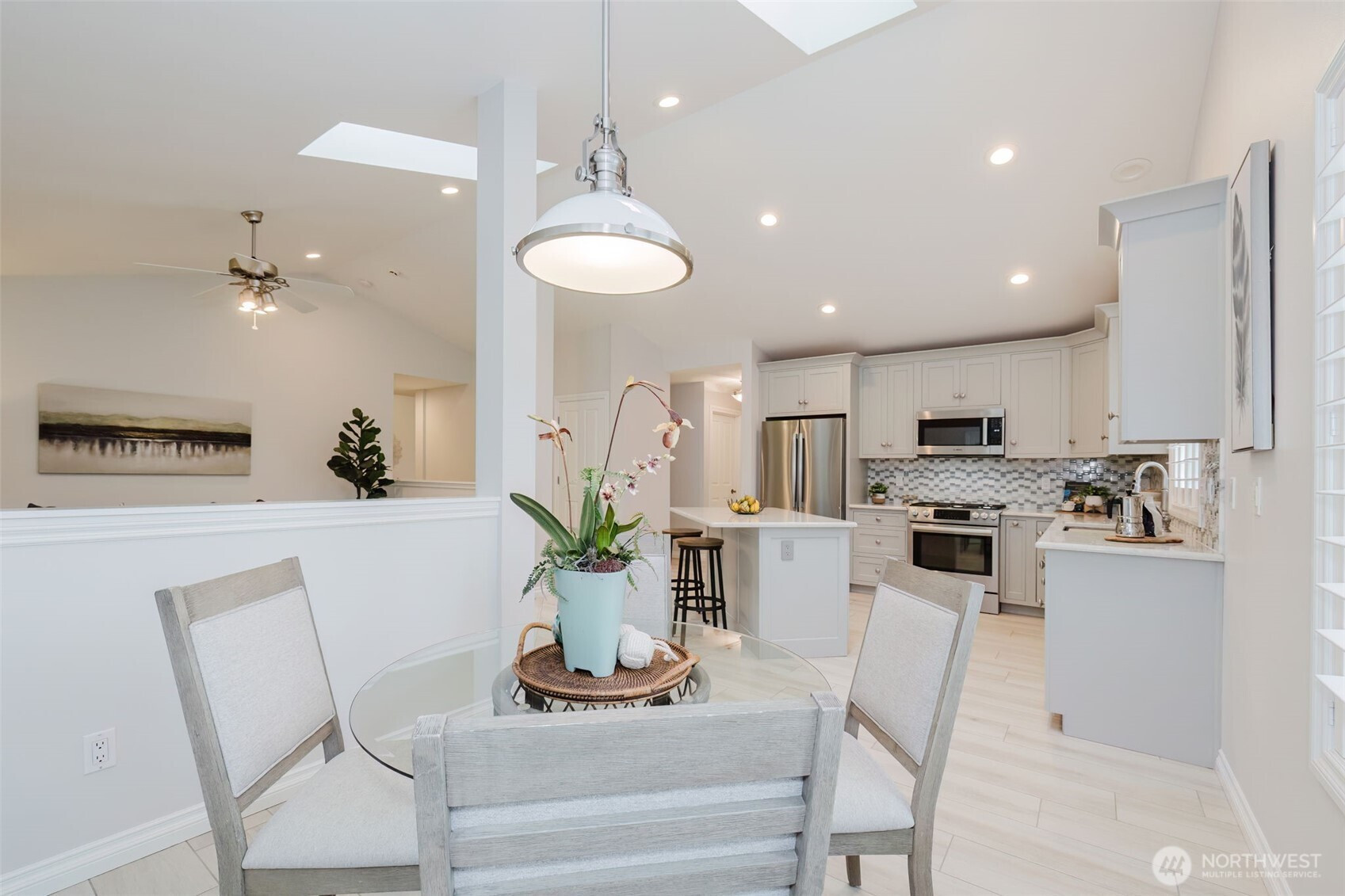 Welcome home to this beautifully maintained rambler offering the perfect blend of comfort, functionality, and privacy. This spacious 3-bedroom, 2-bath home features a desirable open floor plan with vaulted ceilings and skylights that fill the home with natural light. The well-designed kitchen is ideal for everyday living and entertaining, complete with quartz countertops, stainless steel appliances, and a generous walk-in pantry. The thoughtfully designed layout places the primary suite on its own side of the home, creating a true retreat with a luxurious 5-piece bath, jetted soaking tub, and walk-in closet. Additional features include gas heat, central A/C, and a brand-new roof for peace of mind. Step outside to enjoy the beautifully landscaped yard with mature plantings, a covered patio with natural gas BBQ hookup, and a hot tub—perfect for year-round entertaining. The fully fenced backyard backs to a peaceful greenbelt, providing added privacy and a serene setting. An oversized 3-car garage offers plenty of room for vehicles, storage, or hobbies. Located in a fantastic neighborhood with easy access to downtown Gig Harbor, Burnham Drive shopping, dining, and amenities, this home truly checks all the boxes.