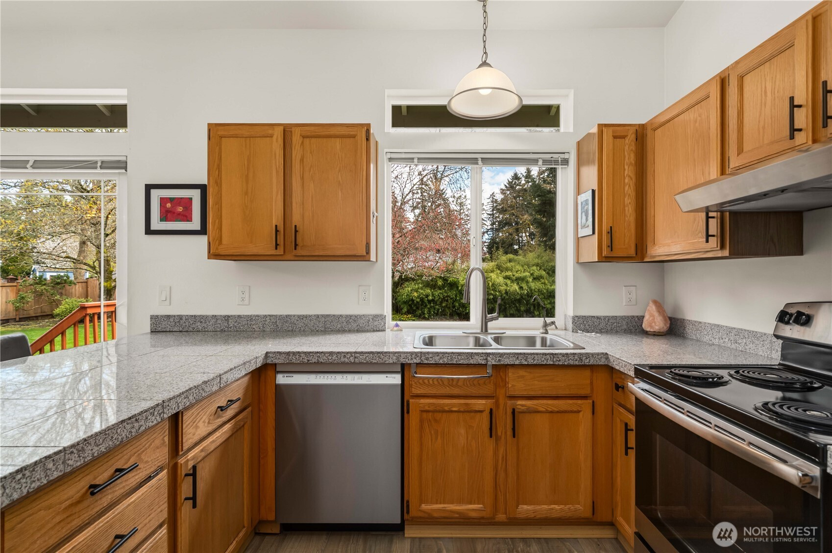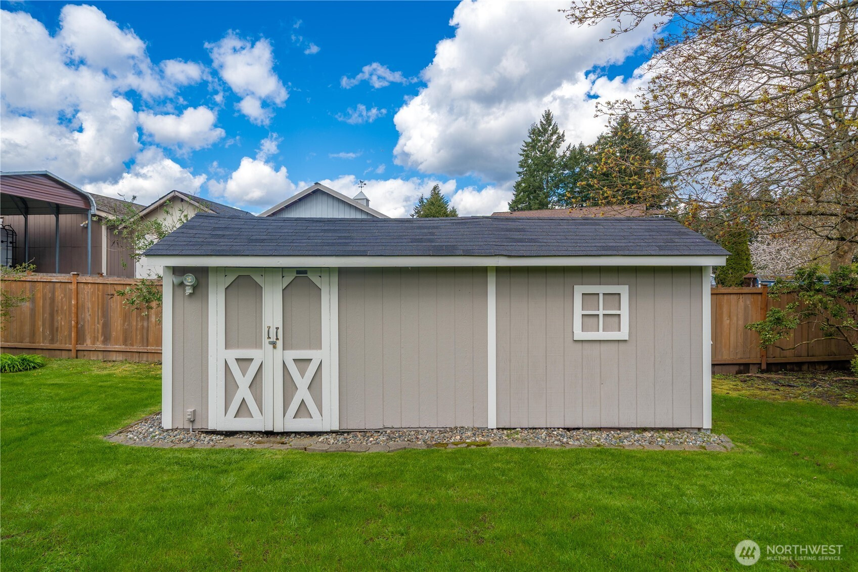 Welcome to this beautifully maintained tri-level home in the sought-after Saddlebrook community near Bonney Lake. With 4 bedrooms and 2.5 baths, this home offers vaulted ceilings, abundant natural light, porcelain tile flooring, and multiple living spaces. The bright living and dining areas flow into the kitchen with eating space and easy access to the Trex deck-perfect for indoor-outdoor living. The lower-level family room features a cozy gas fireplace. Pride of ownership shines throughout, with thoughtful updates including newer Milgard windows, Hardie Plank siding, new furnace and heat pump/AC (2yrs), water heater (5yrs), and fully insulated garage with newer insulated garage door. Generator-ready setup and water treatment with reverse osmosis drinking system. Set on a spacious 1/3-acre lot, the mature landscaping creates a stunning first impression. Enjoy a fully fenced yard with a sprinkler system, a peaceful Japanese garden, RV parking, and a 10x24 powered shed. No HOA. Heavenly infared sauna, washer, dryer, refrigerator, and generator are negotiable.