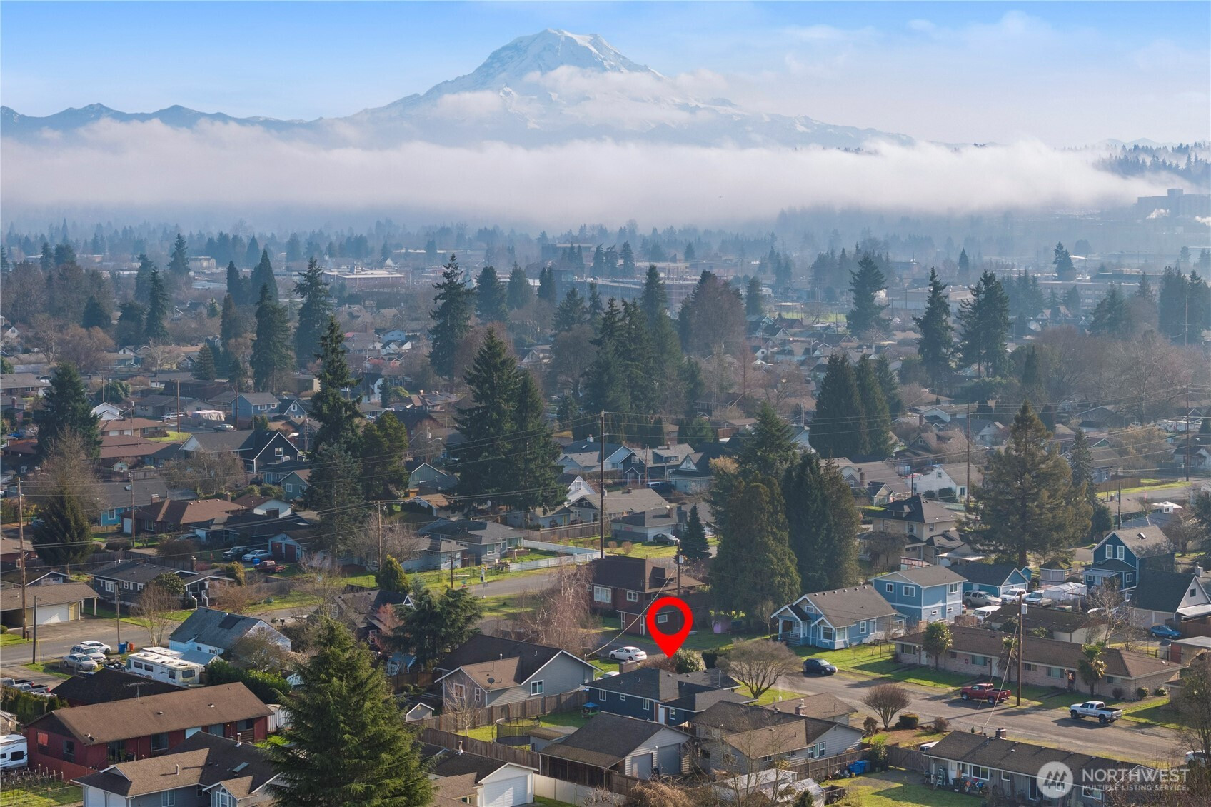 Wonderfully maintained and full of charm, this downtown Puyallup bungalow truly lives large. With 3 bedrooms and 1 bathroom, you’ll love the layout—featuring a private primary bedroom plus two generously sized additional bedrooms.Large windows fill the home with natural light and showcase views of the lush, oversized lot. When you walk inside, you are met with gleaming original hardwoods, a classic picture window, and a wood-burning fireplace. The efficient floorplan has excellent use of space, with an additional room that could be used for a home office, gym, dining are & more! And the location is hard to beat—just minutes to downtown Puyallup’s restaurants and boutique shops, the Sounder commuter train and garage, and Sam Peach Park. Summer plans will revolve around the Farmers Market and splash pad, and your fully fenced backyard is ready for gardening, entertaining, or simply enjoying your own outdoor space. Fresh paint, AC, and a tree swing - don't miss this house!