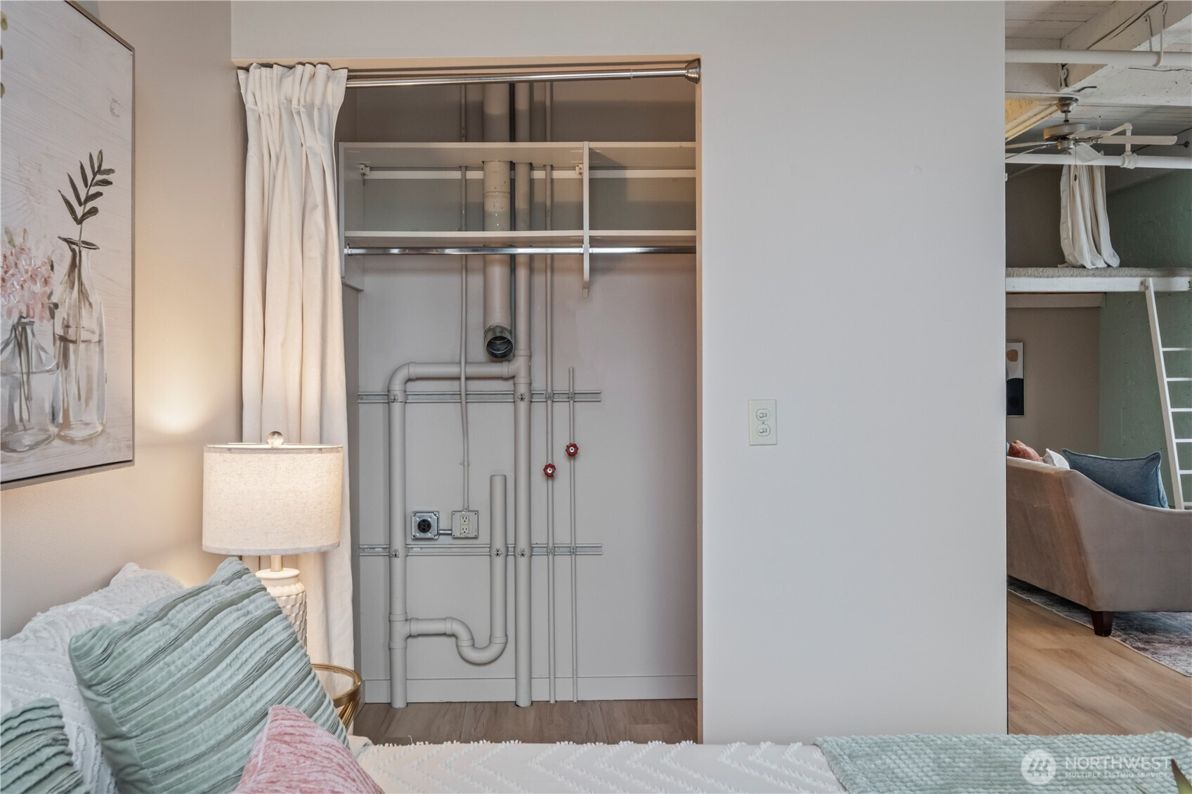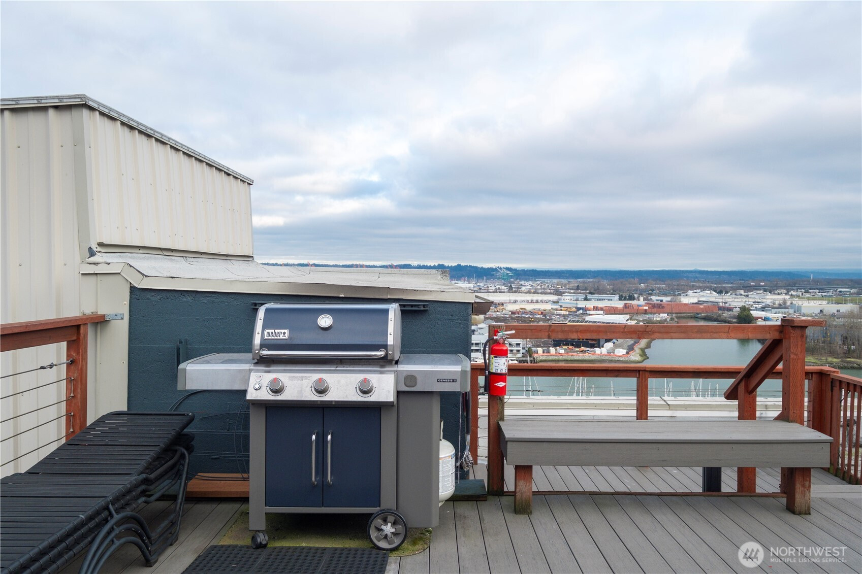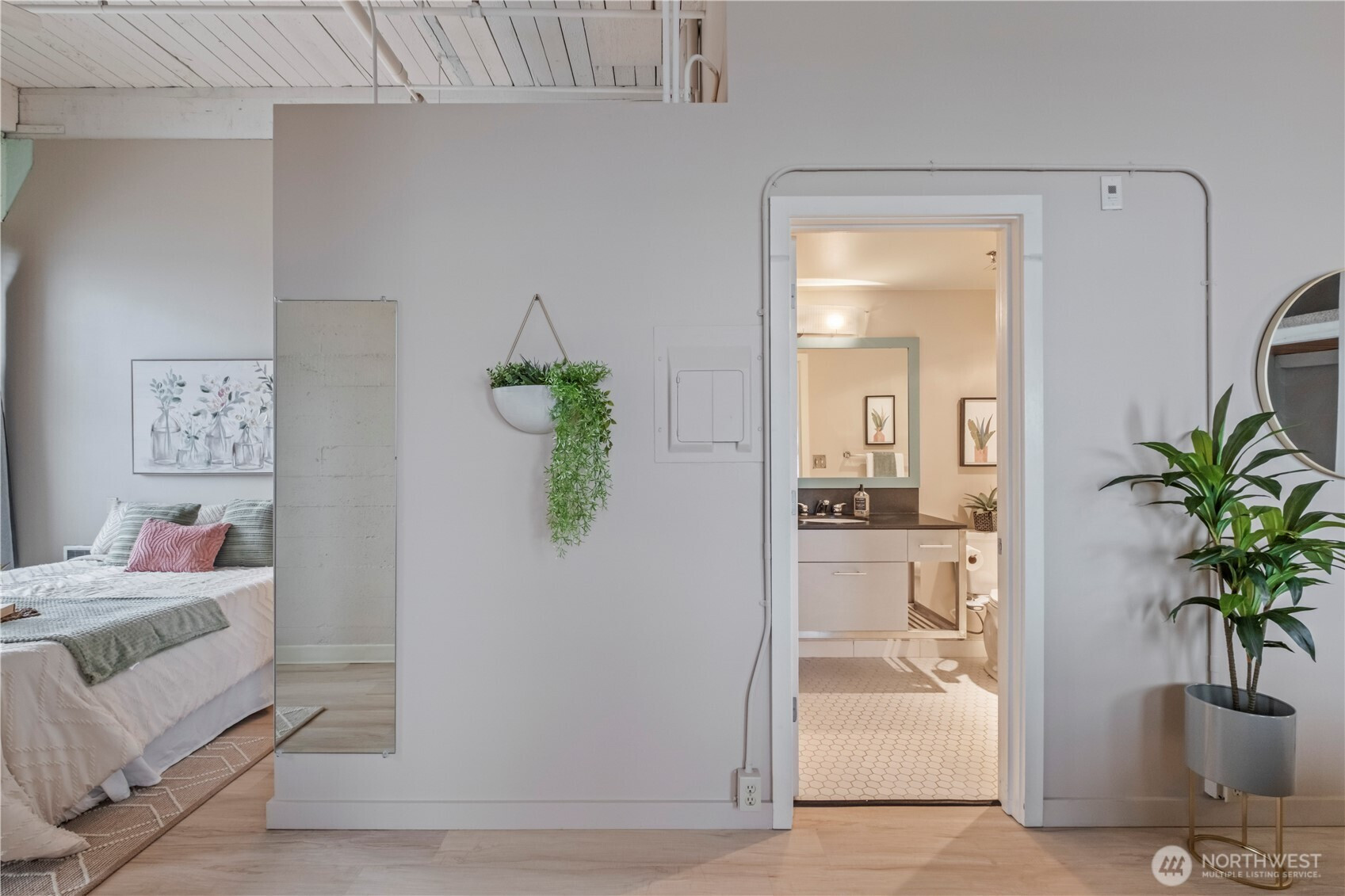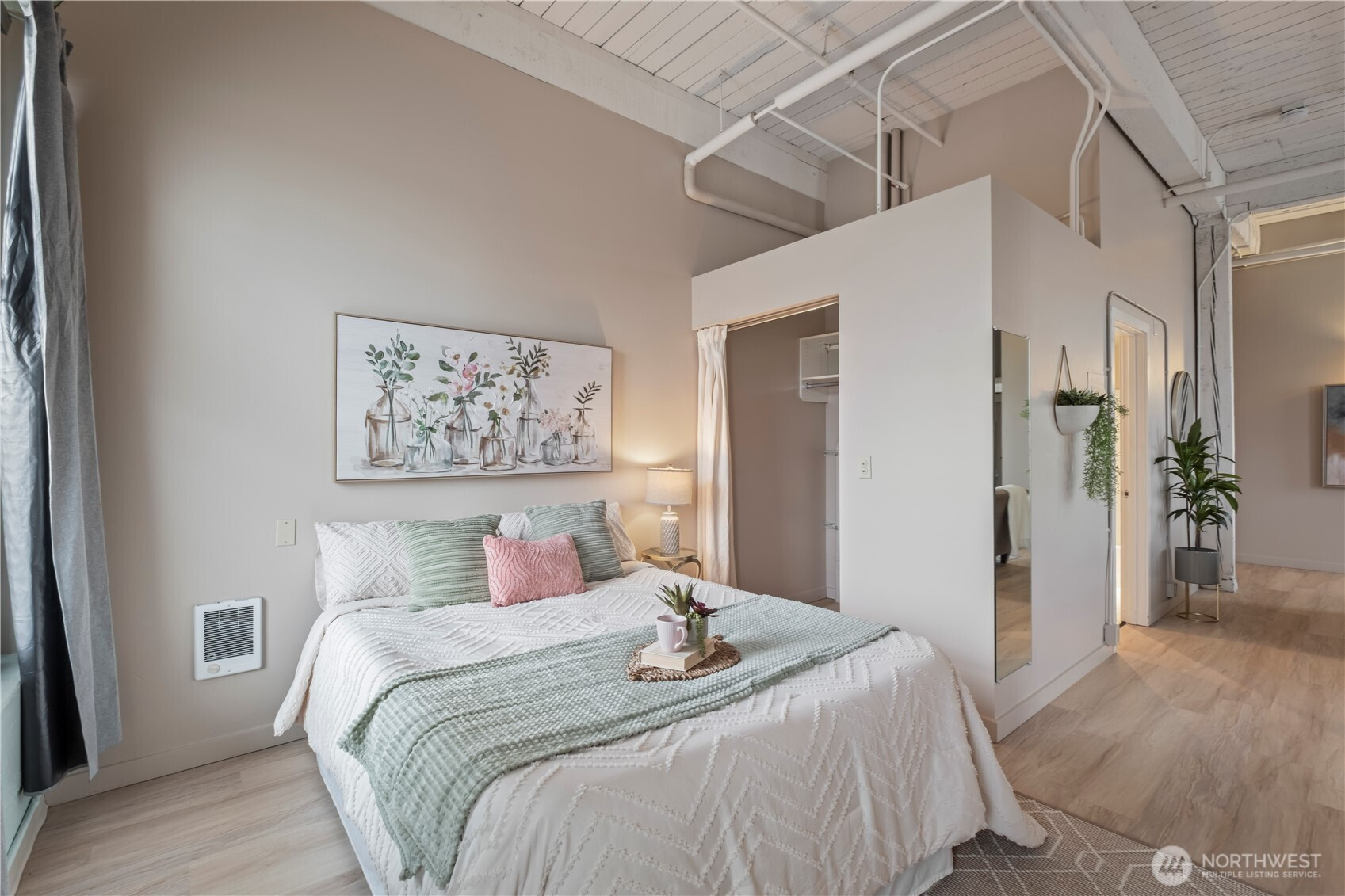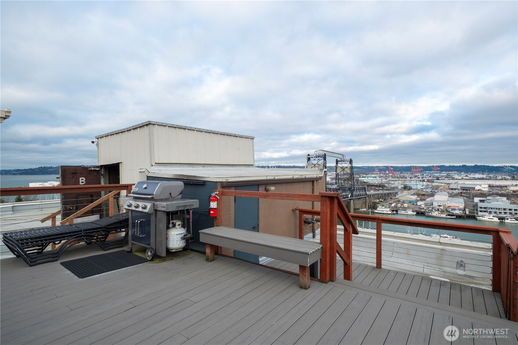 This top-floor penthouse at historic Cliff Street Lofts offers spectacular, unobstructed views of Mount Rainier, the Thea Foss Waterway, and the city skyline. The open-concept layout is among the premier units in the building, featuring a bank of six floor-to-ceiling windows and premium plank flooring that create a bright, refined living environment. The contemporary kitchen includes a distinctive industrial touch with original freight elevator up/down buttons integrated into the design. A spacious bedroom captures mountain views. Building amenities include secure premium owned garage parking near the entrance, a private storage locker, laundry facilities, and a rooftop deck with panoramic views, barbecue area, and garden space. Nearby highlights include the University of Washington Tacoma campus, Museum of Glass, Tacoma Art Museum, the Thea Foss Waterway, Point Ruston, and Point Defiance Park. Transit access includes the Tacoma Link Light Rail. Move-in ready.