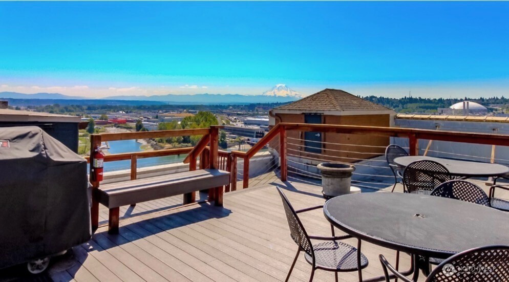 Urban living meets timeless character in this Downtown Tacoma studio. Ideally located near major freeways and the UW Tacoma campus, this open-concept home features soaring ceilings, exposed brick, and exposed beams that add warmth and charm. Enjoy flexible living with in-unit laundry hookups (in the closet) or you have the option to use a shared laundry room in the building. Unwind or entertain on the rooftop deck with breathtaking views of Mt. Rainier. Perfect for a commuter or investor seeking style, convenience, and an unbeatable location.