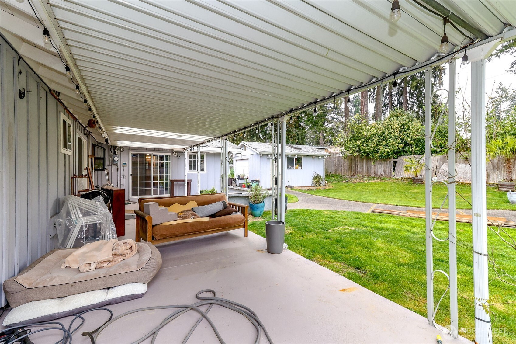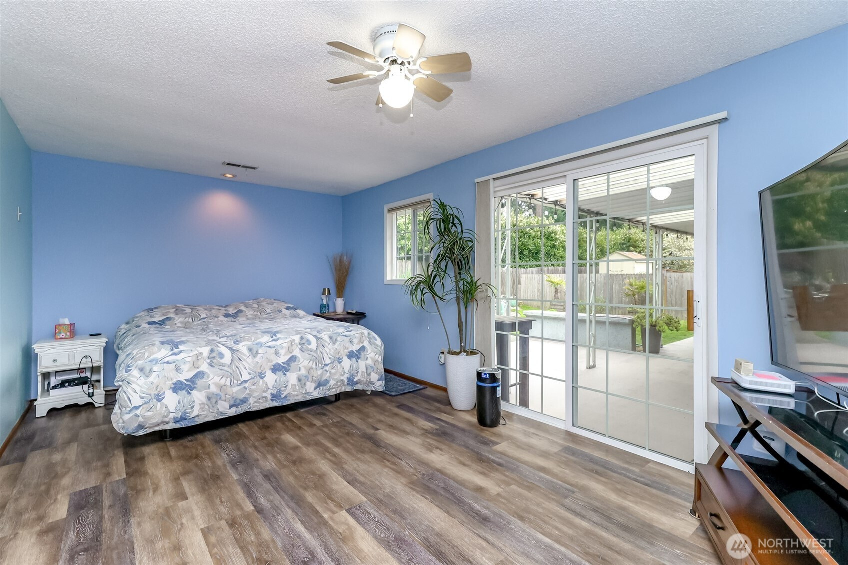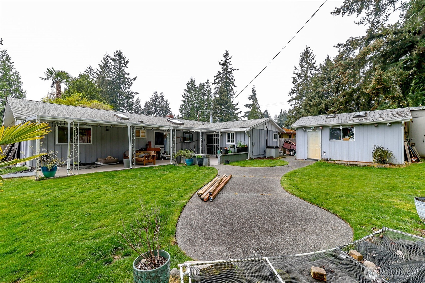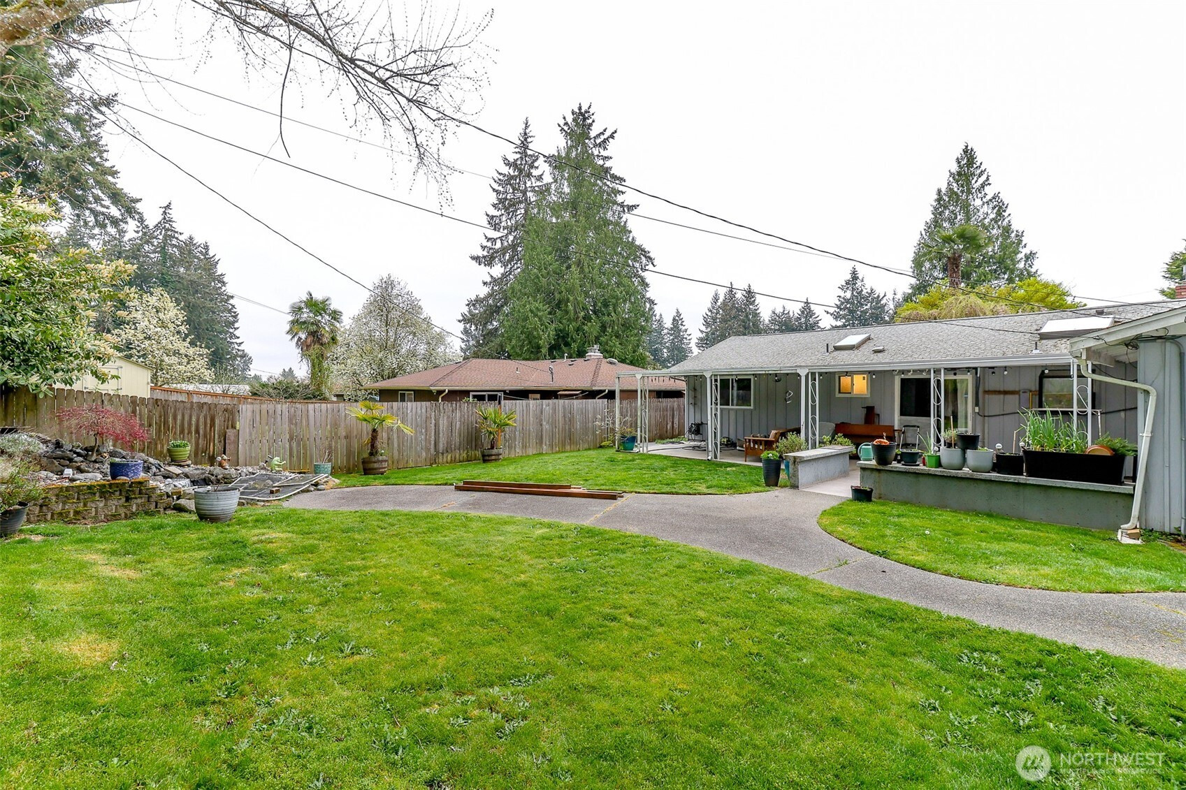 Perfect location in Lakewood! 4 bedroom, 2 Bathroom rambler. Lush landscape with enjoyable patios. Living room w/window seat & cozy gas FP. Hardwoods, skylights, high eff. furnace, tankless WH, & A/C! Primary bedroom with large en suite and the main bath has a walk-in tub. Sliding doors to amazing backyard leading to covered patio & waterfall w/ Koi pond. Family room w/gas stove. 2 car garage. Large detached shop and remote awnings, generator. Fully Fenced. Close to JBLM, schools, shopping & all amenities.