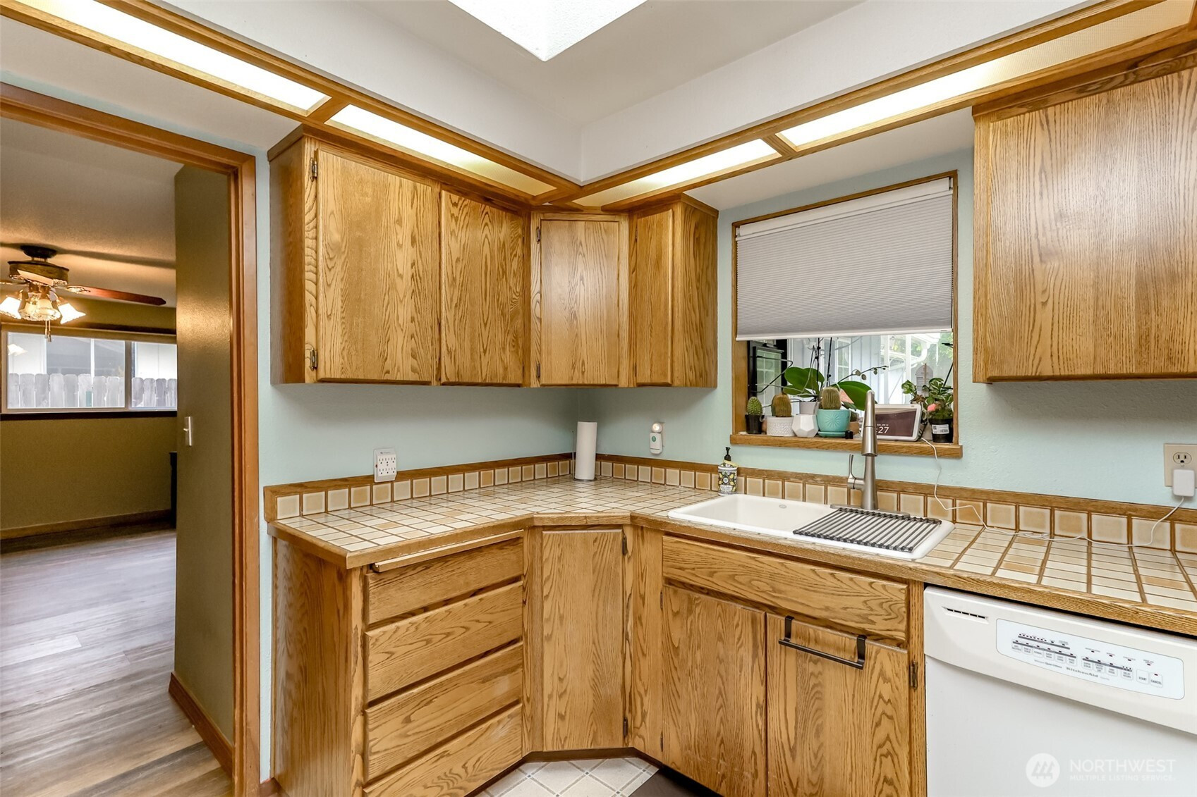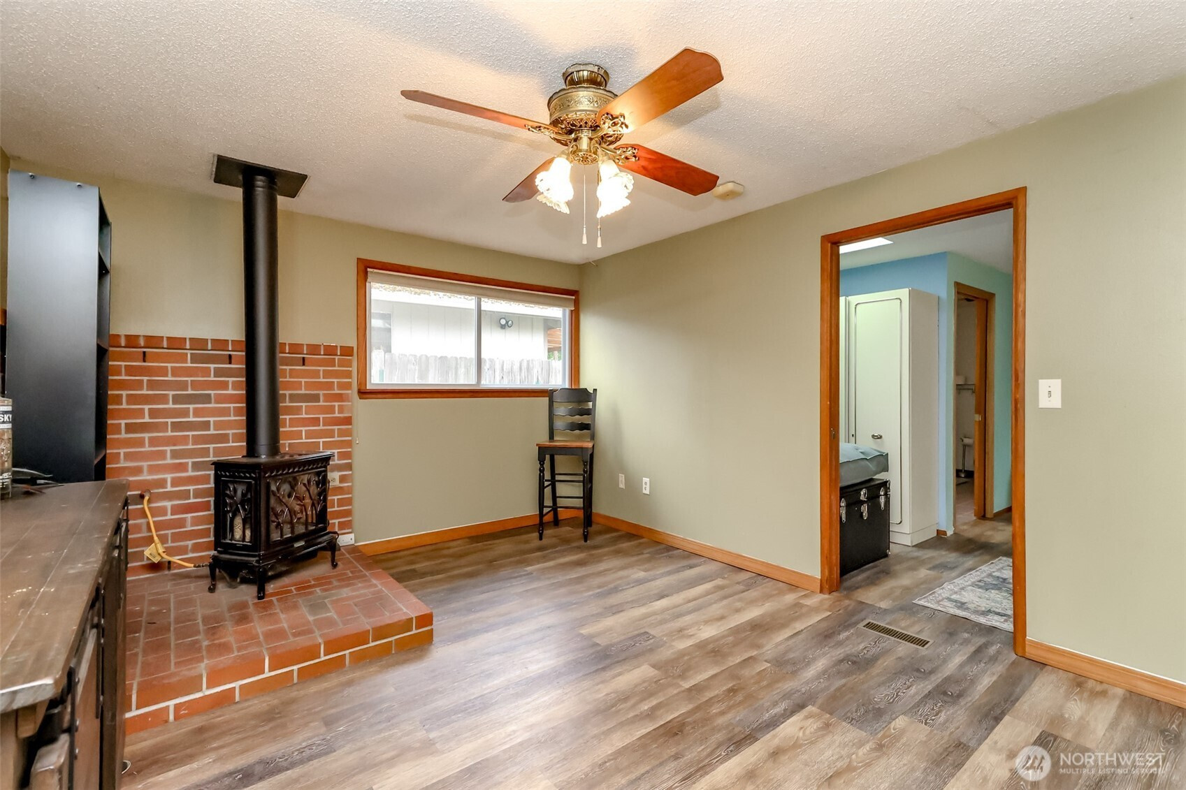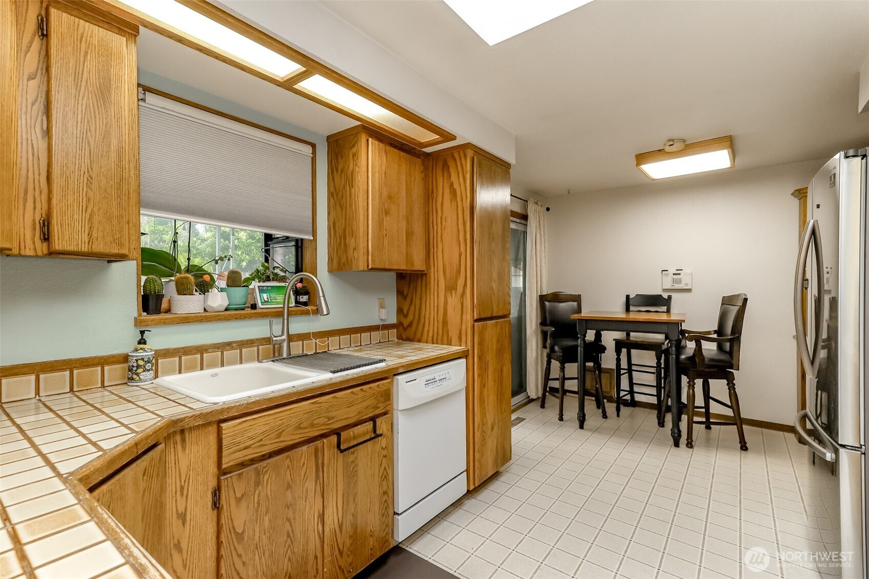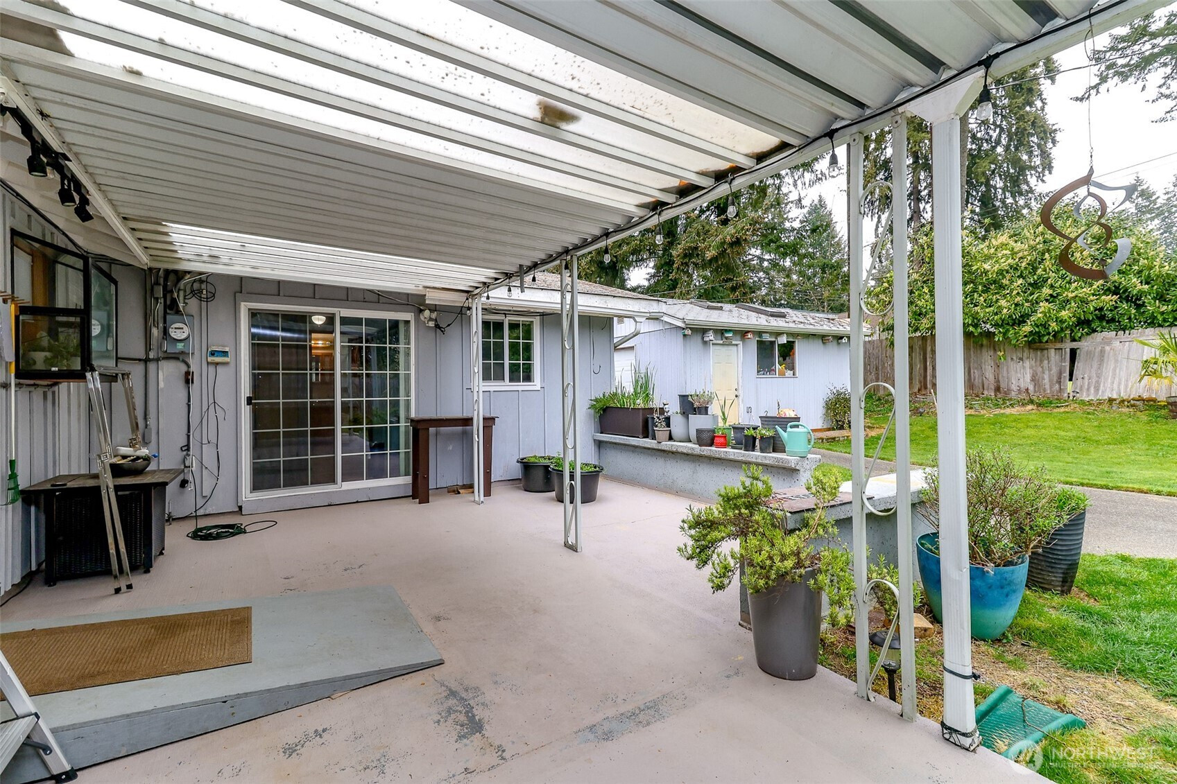 Perfect location in Lakewood! 4 bedroom, 2 Bathroom rambler. Lush landscape with enjoyable patios. Living room w/window seat & cozy gas FP. Hardwoods, skylights, high eff. furnace, tankless WH, & A/C! Primary bedroom with large en suite and the main bath has a walk-in tub. Sliding doors to amazing backyard leading to covered patio & waterfall w/ Koi pond. Family room w/gas stove. 2 car garage. Large detached shop and remote awnings, generator. Fully Fenced. Close to JBLM, schools, shopping & all amenities.