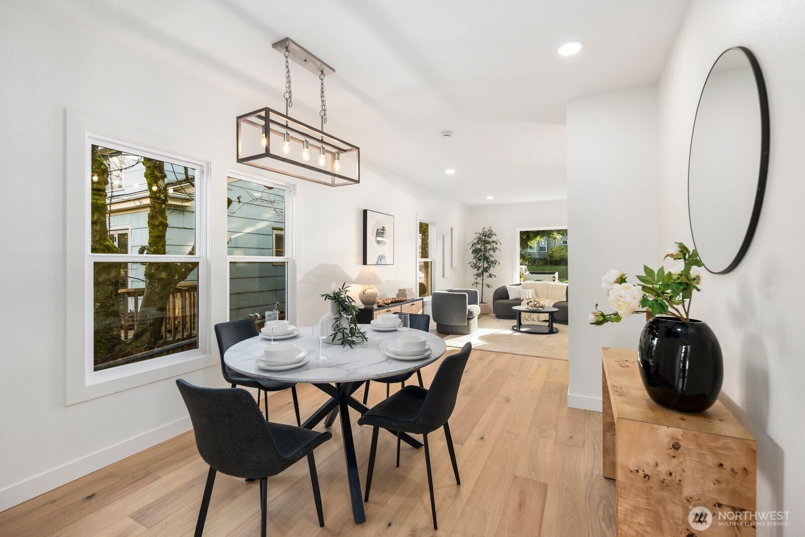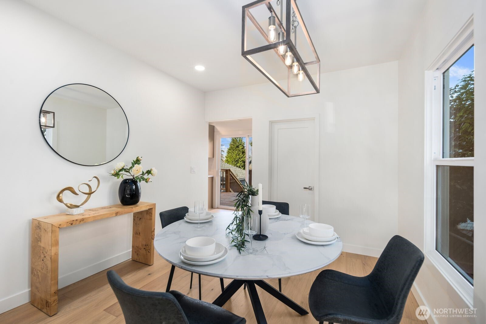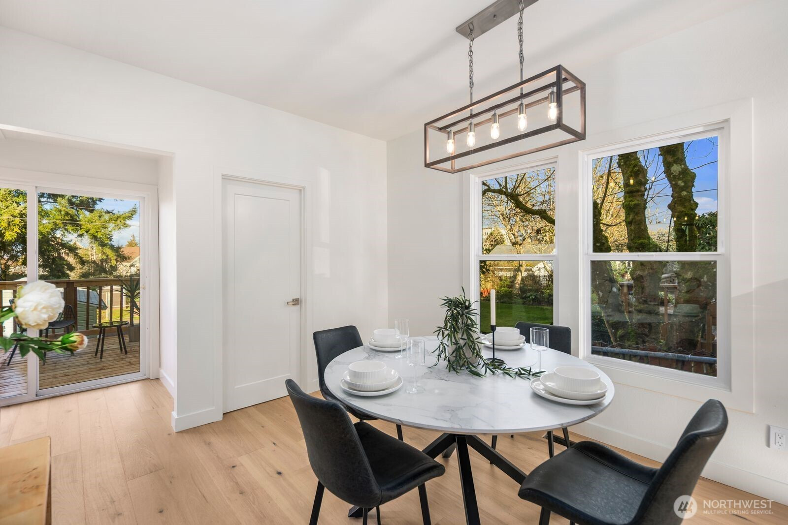 Welcome to this tastefully remodeled Craftsman in the heart of North Tacoma, where timeless character meets modern design. From the moment you step inside, meticulously crafted engineered hardwood flooring flows seamlessly throughout, setting the stage for a warm yet contemporary aesthetic. The stunning kitchen is a true showpiece, featuring modern wood-grain cabinetry, sleek white quartz counters, and stainless steel appliances that elevate both everyday living and effortless entertaining.With four spacious bedrooms, this home offers flexibility for guests, work-from-home needs, or creative pursuits. The updated bathroom impresses with an oversized tile shower, delivering a spa-inspired retreat. Downstairs, the finished basement unlocks generous bonus space—perfect for a media room, gym, or play area.Step outside to a newly installed backyard deck, ideal for summer gatherings and quiet evenings alike. A detached single-car garage adds convenience and storage. This is more than a home—it’s a beautifully reimagined Craftsman sanctuary in one of Tacoma’s most sought-after neighborhoods.