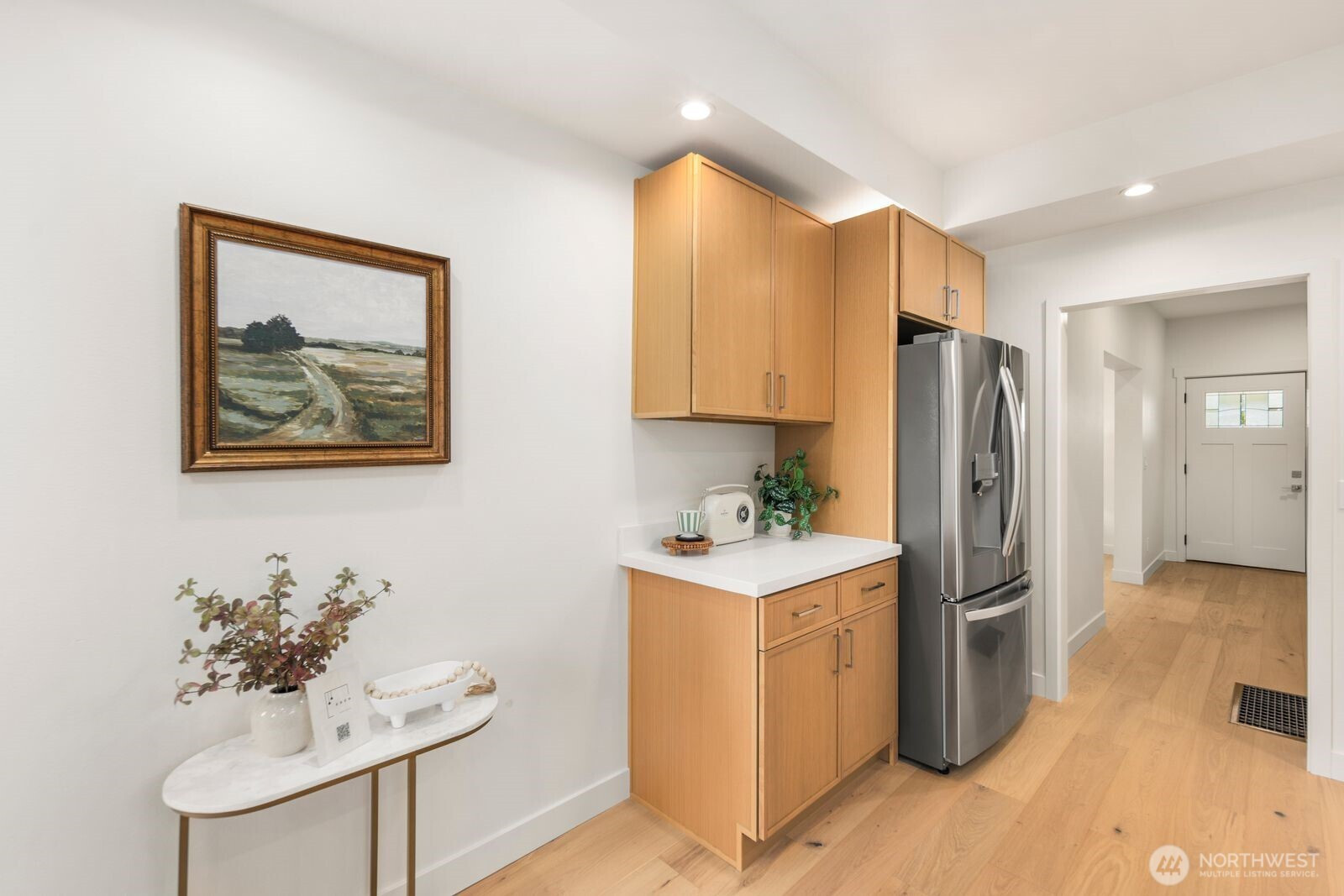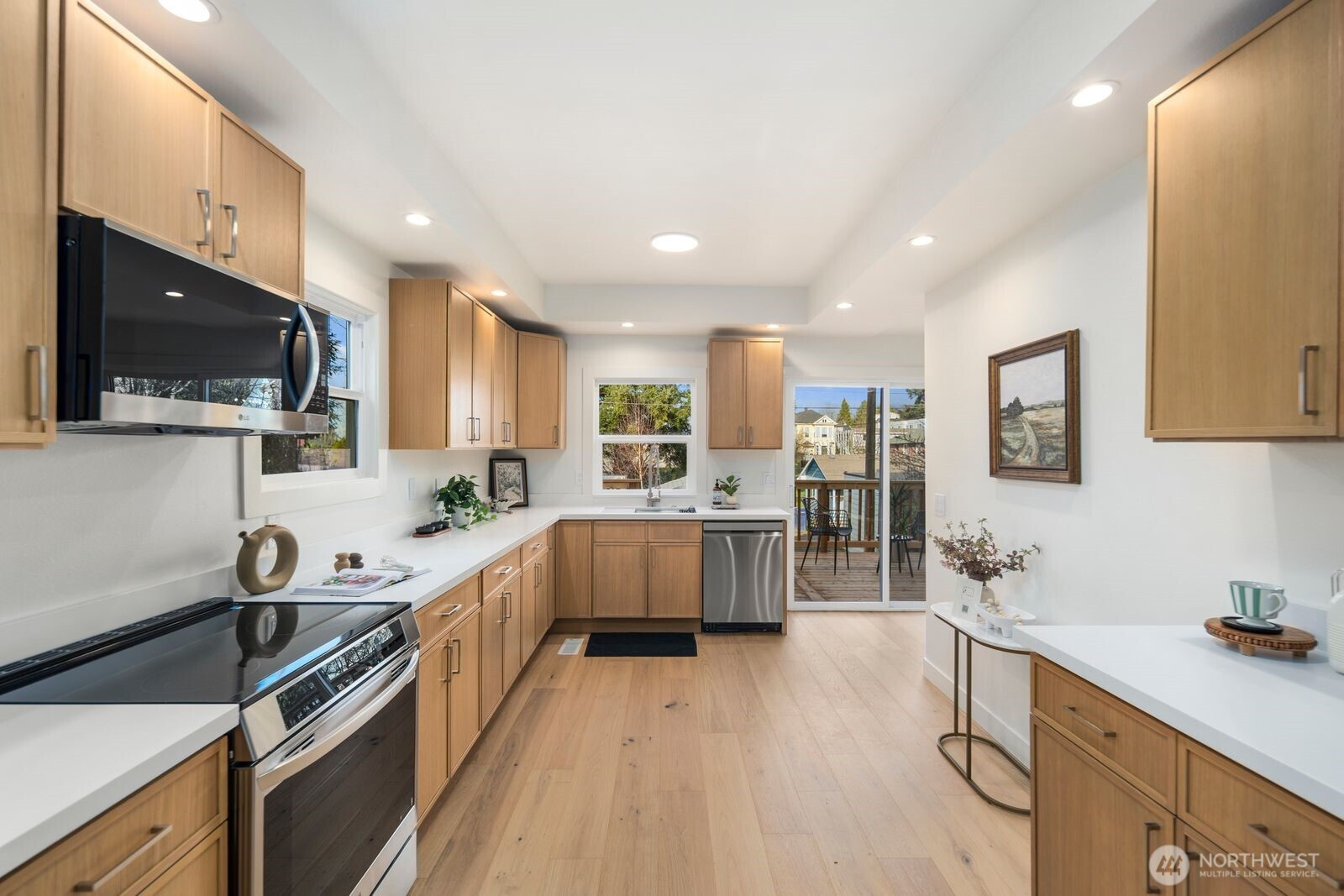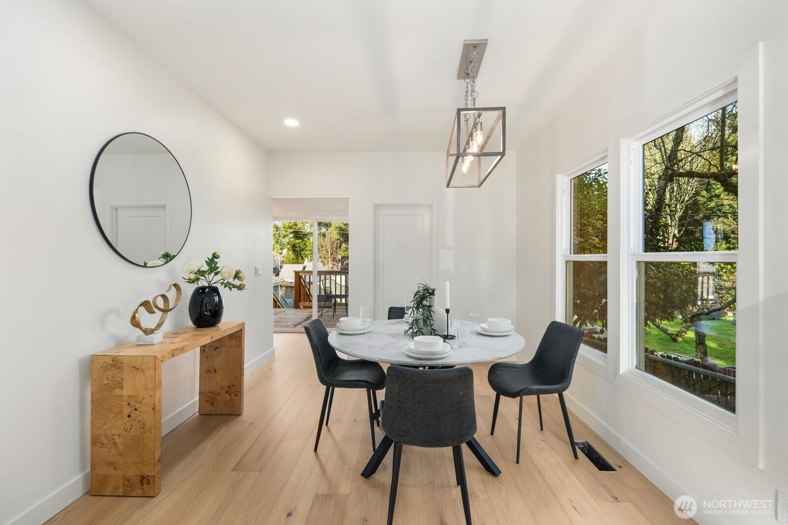 Welcome to this tastefully remodeled Craftsman in the heart of North Tacoma, where timeless character meets modern design. From the moment you step inside, meticulously crafted engineered hardwood flooring flows seamlessly throughout, setting the stage for a warm yet contemporary aesthetic. The stunning kitchen is a true showpiece, featuring modern wood-grain cabinetry, sleek white quartz counters, and stainless steel appliances that elevate both everyday living and effortless entertaining.With four spacious bedrooms, this home offers flexibility for guests, work-from-home needs, or creative pursuits. The updated bathroom impresses with an oversized tile shower, delivering a spa-inspired retreat. Downstairs, the finished basement unlocks generous bonus space—perfect for a media room, gym, or play area.Step outside to a newly installed backyard deck, ideal for summer gatherings and quiet evenings alike. A detached single-car garage adds convenience and storage. This is more than a home—it’s a beautifully reimagined Craftsman sanctuary in one of Tacoma’s most sought-after neighborhoods.