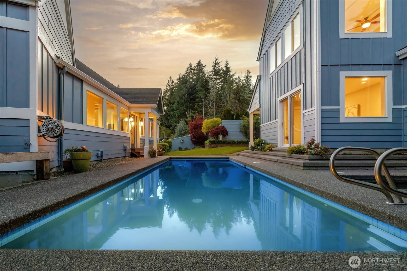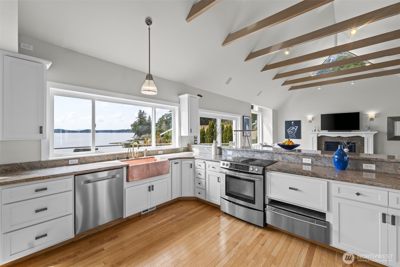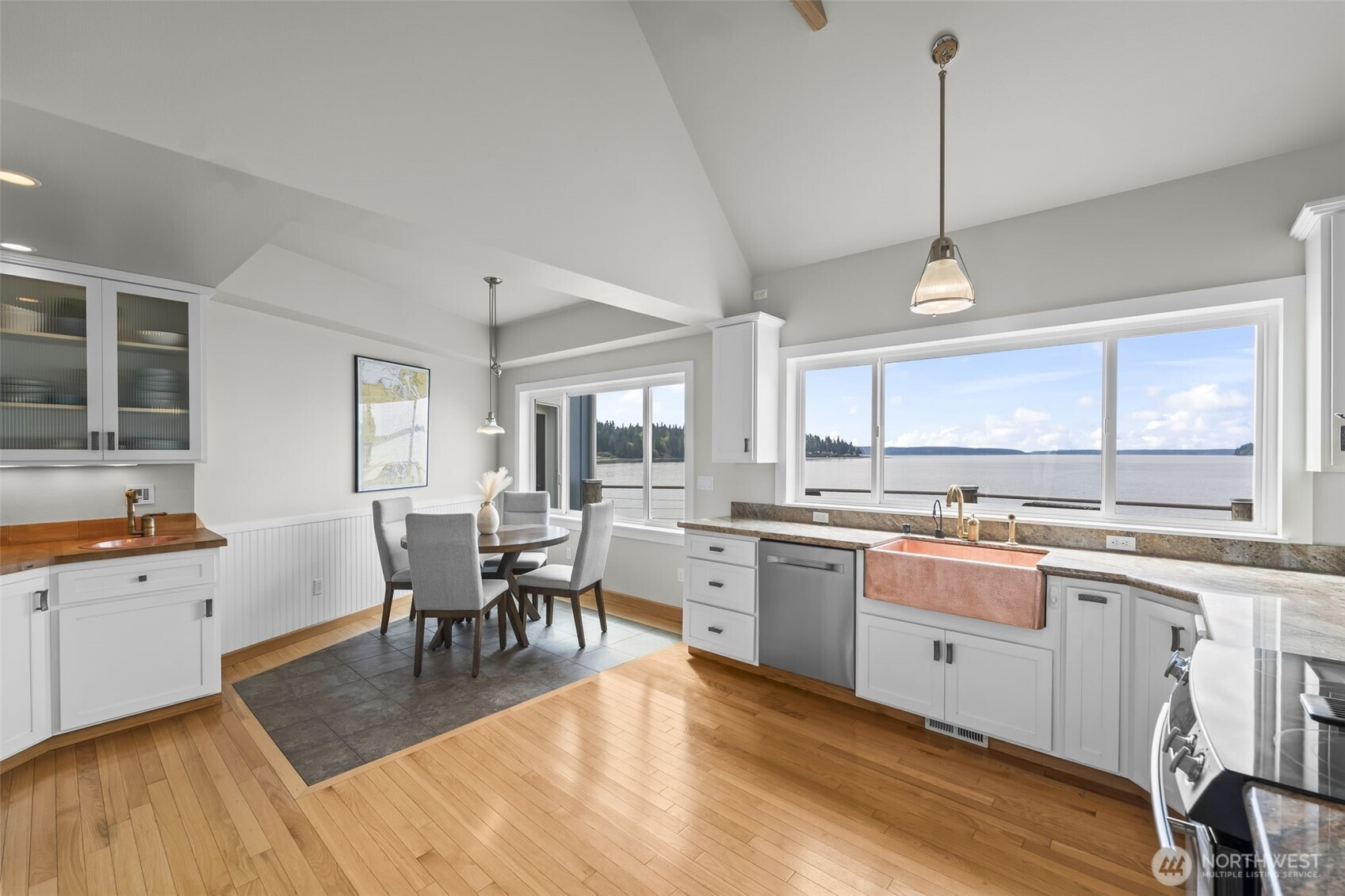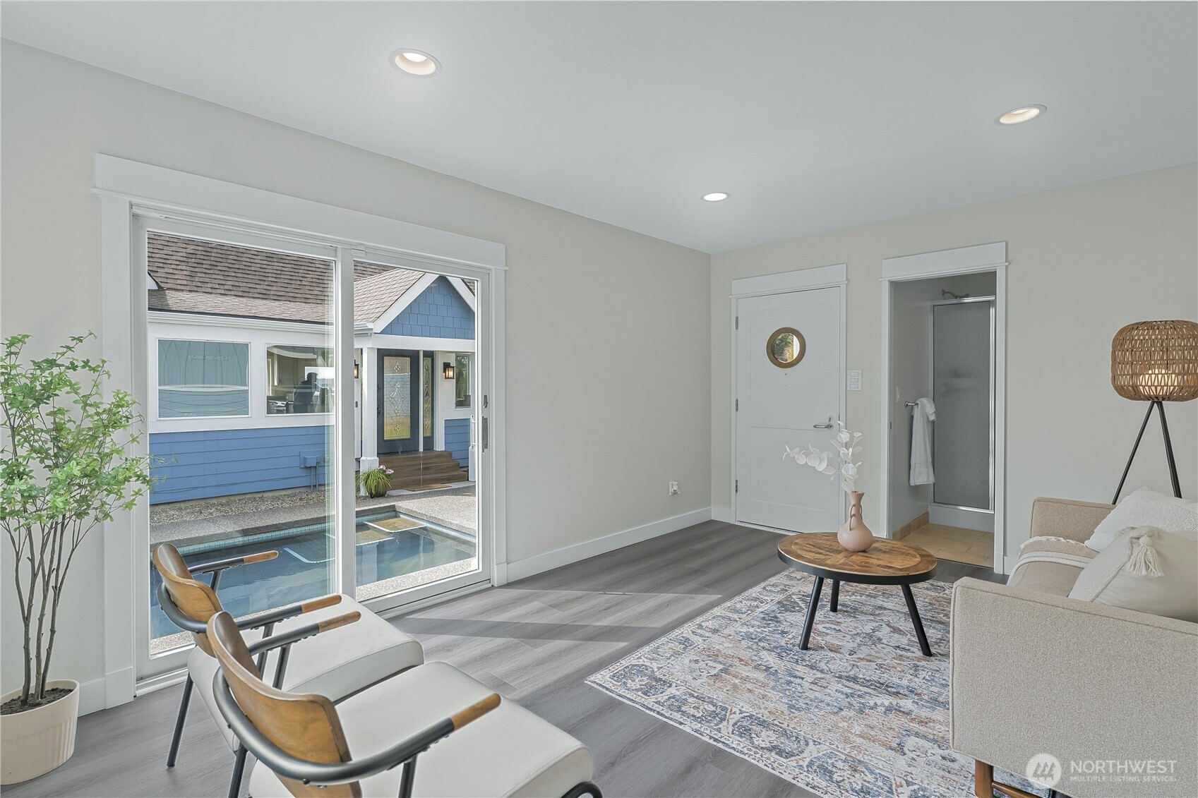 Waterfront retreat at the mouth of Rocky Bay with 90 feet of low-bank shoreline and true southern exposure, offering all-day natural light and expansive Puget Sound views from nearly every room. Soaring ceilings, hardwood floors, and an open-concept kitchen and living area flow seamlessly to multiple view decks, ideal for indoor-outdoor living. Nearly $100K in upgrades, including major systems, interior updates, and improvements to both the main home and detached guest house. Flexible layout with main-floor living, plus additional space for guests, remote work, or entertaining. Multiple view decks extend the living experience outdoors, making the water your everyday backdrop. Set on nearly half an acre with a pool, spa, private beach access, and detached guest quarters, perfect for both everyday living and hosting. Enjoy beach walks, wildlife sightings, and peaceful low-bank waterfront living in the Pacific Northwest. From long, relaxed walks on the beach with family and friends to quiet evenings watching the sunset, eagles overhead, and seals just offshore, don’t miss this rare opportunity to own a private slice of Pacific Northwest paradise.