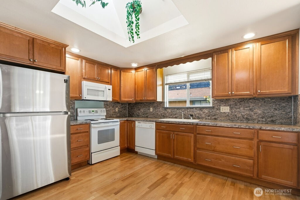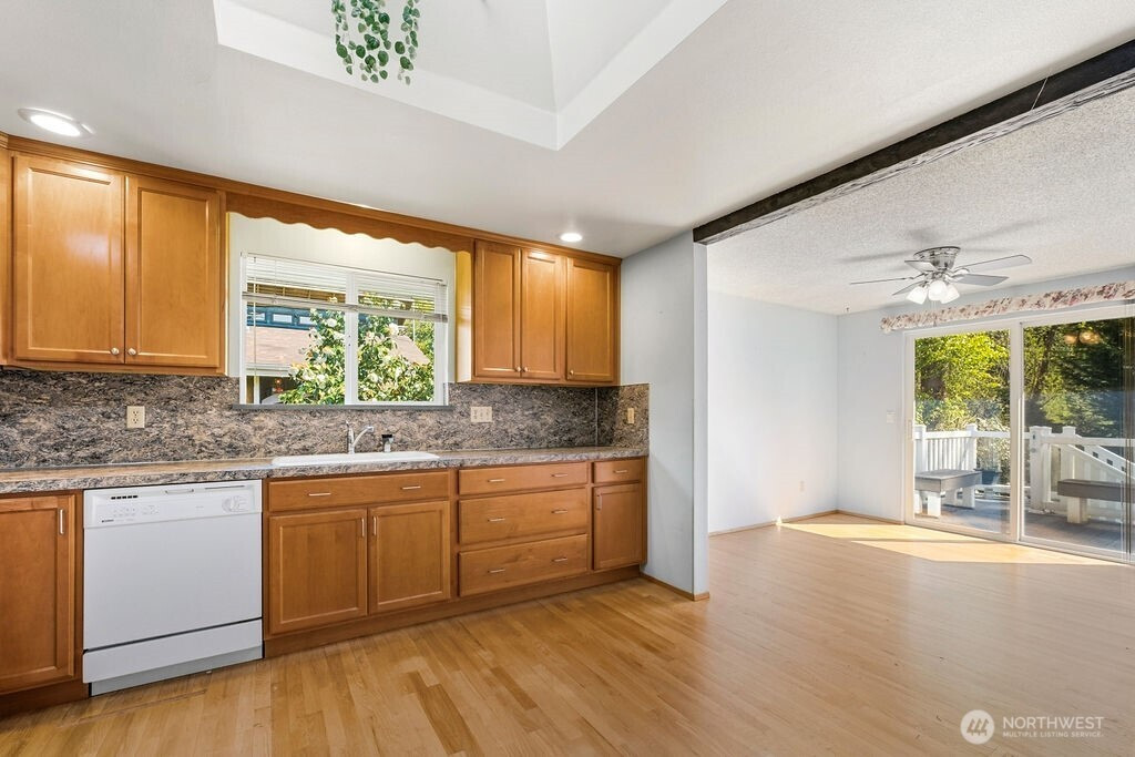 Well-maintained 2,824 sq ft home in Lakewood featuring a fully equipped ADU-style lower level with its own kitchen, offering flexibility for multi-generational living, rental income, or guest space. This spacious two-level home includes 3 bedrooms and a functional layout with comfortable living areas on the main level. The lower level provides a private living option with a full second kitchen, making it ideal for extended living or income potential (buyer to verify).Enjoy the peaceful setting as the home backs to a natural area, offering added privacy and a serene backdrop. The property is well cared for and move-in ready, with plenty of space for everyday living, entertaining, or flexible use. Conveniently located near JBLM, parks, shopping, dining, and commuter routes, this home combines location, versatility, and value.A rare opportunity to own a home with ADU potential, dual living spaces, and a private natural setting in Lakewood.