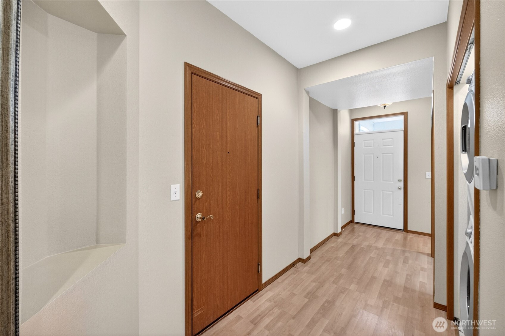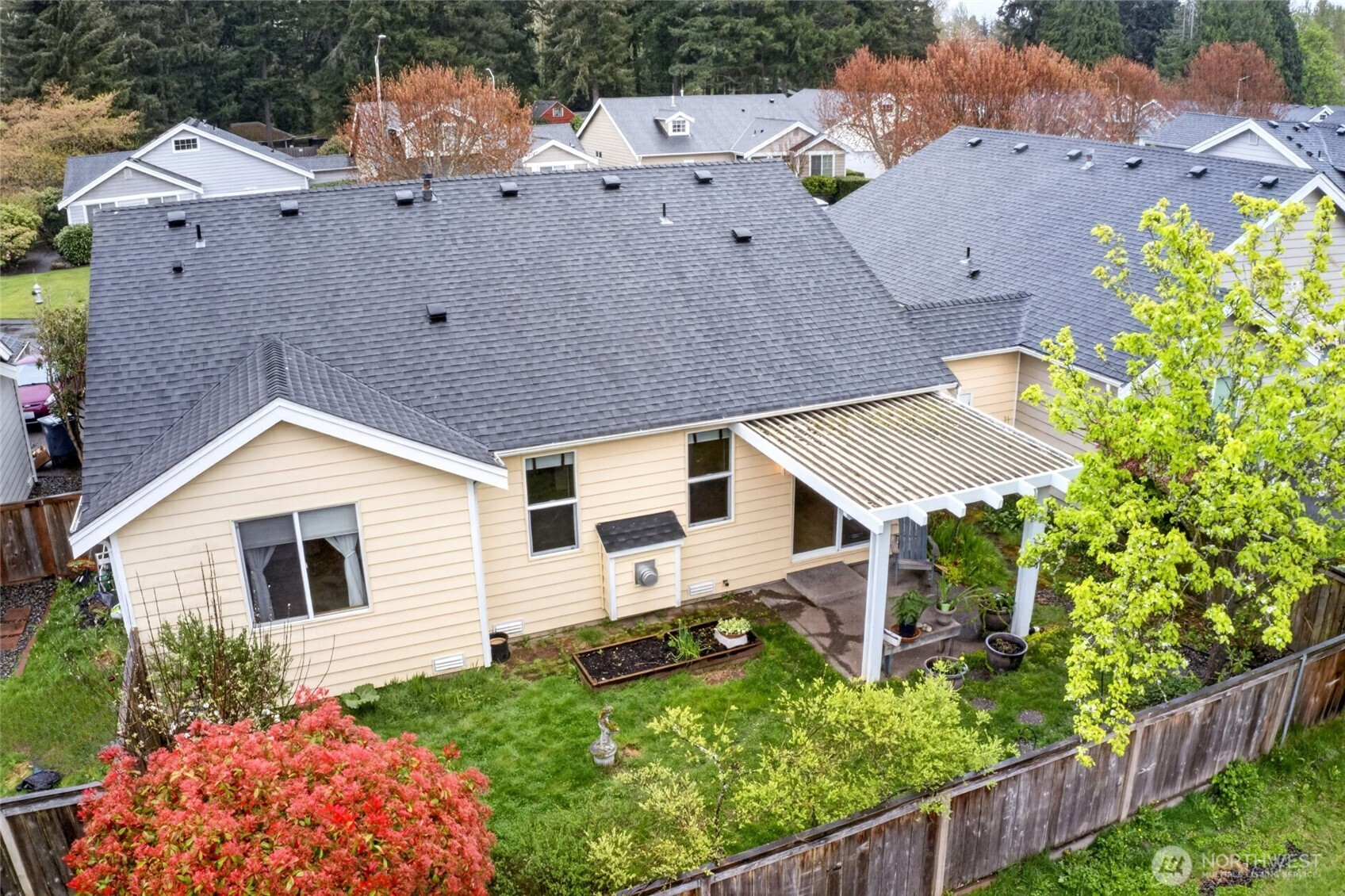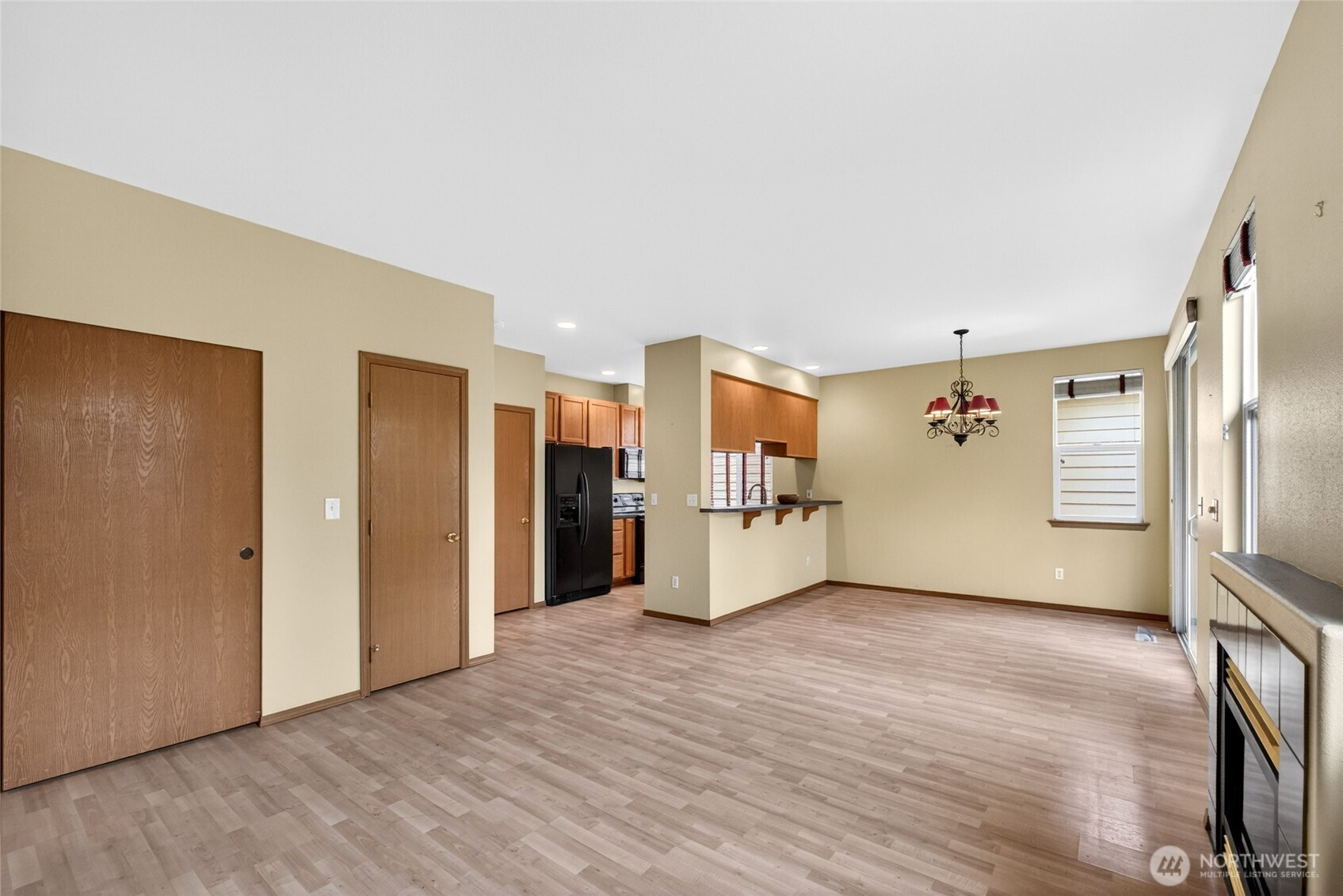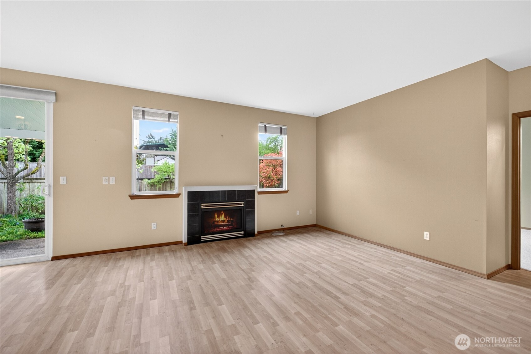 Easy living starts here with the right layout and upgrades already in place. This single-story home features an open-concept design that feels connected and easy to live in, with a kitchen breakfast bar flowing into the living area and a cozy gas fireplace. Thoughtful design places the primary suite apart from the secondary bedrooms, creating natural privacy and flexibility for guests, work-from-home space, or shared living. Practical updates like a tankless water heater, new garage door system, and fresh carpet add comfort and peace of mind, along with an included front-load washer and dryer. Step outside to a covered patio designed for year-round enjoyment, from morning coffee to evening unwinding. With exterior maintenance handled and thoughtful improvements throughout, this home is built for those ready to simplify without sacrificing comfort.
