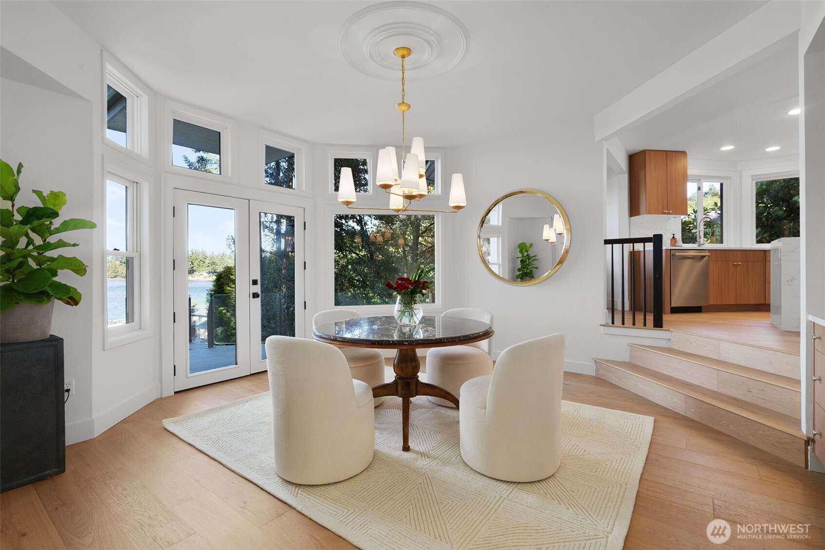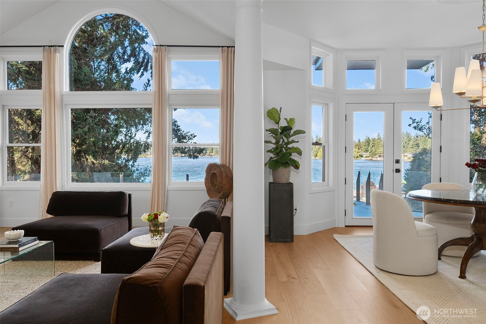 Gracious & comfortable WATERFRONT living. Named "Best American Living Award" by NAHB for its original design to take advantage of 55' of DIRECT WATERFRONT on LAKE STEILACOOM. Dramatic entry feeds to soaring ceilings; walls of glass overlook the lake; open concept kitchen w/ BACK KITCHEN w/ second oven, Fridge, abundant storage. Main level office w/ 1 of 3 Wood Fireplaces; UPPER LEVEL primary w/ dramatic view deck overlooking lake; spa like bath; huge walk-in closet w/ WASH/DRY. Lower level holds SAUNA; wet bar; second WASH/DRY; family room and bedrooms. Freshly updated with styling for today's taste; close to TACOMA COUNTRY AND GOLF CLUB and amenities. A soothing setting with unique design; imagine the lifestyle; breathe and take it in.