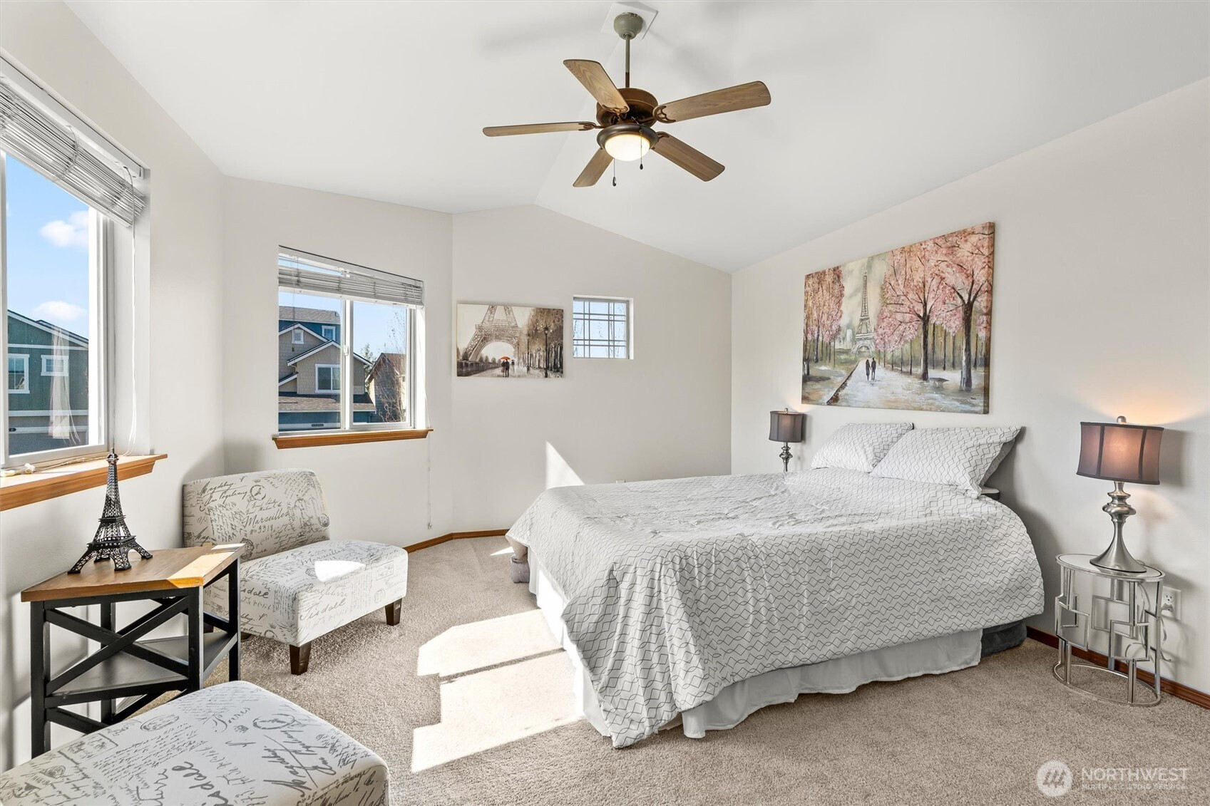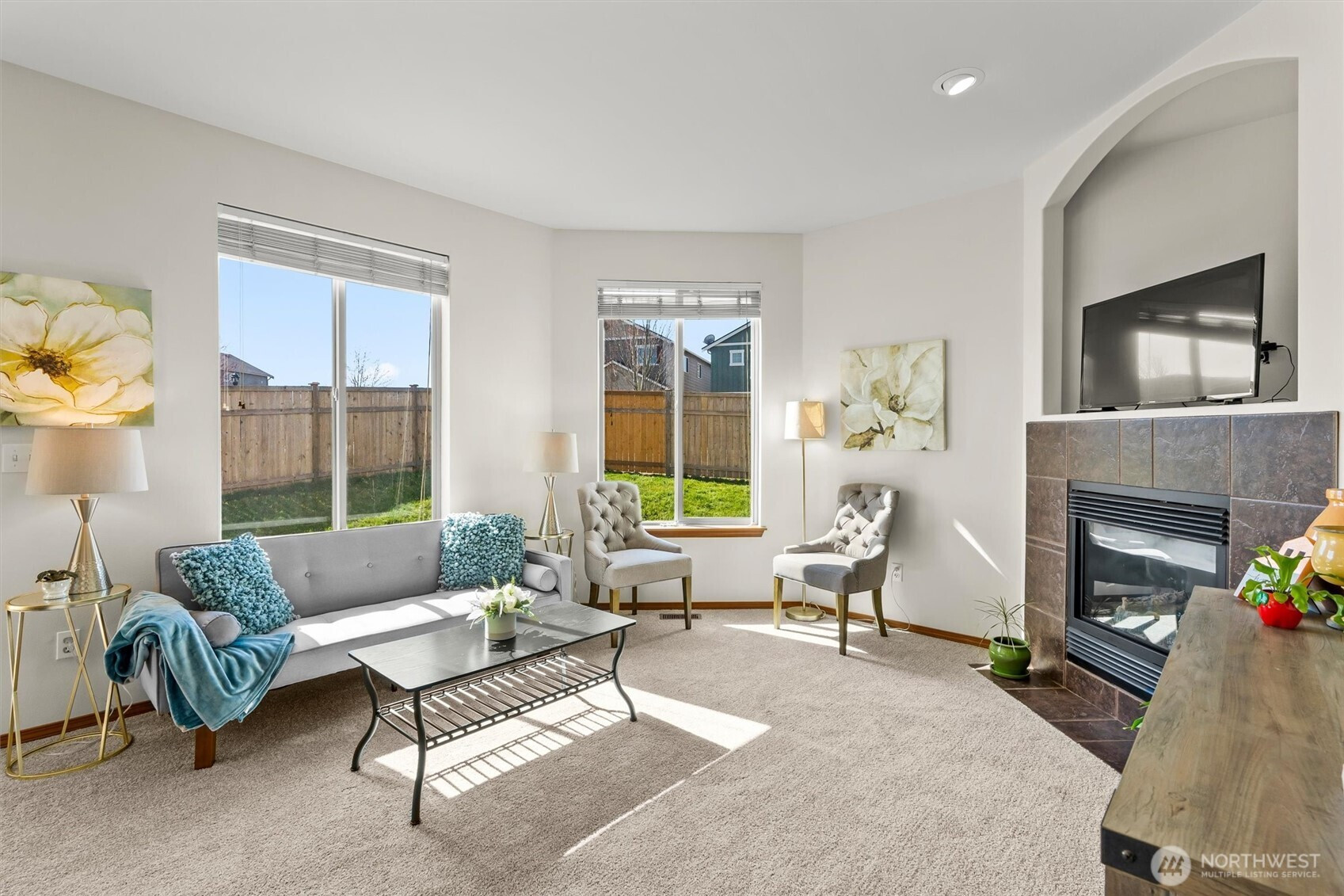 Welcome to the sought after Lipoma Firs community. This 4 bedroom, 2.5 bath home offers 1,726 sq ft of living space, with a brand new roof, new carpet and freshly painted inside and even newer solar panels!!! The Great room features a corner gas fireplace and flows to a separate dining area just off the kitchen. The kitchen provides generous cabinetry and counter space for easy meal prep. Upstairs you will find a loft area, convenient upstairs laundry, and ceiling fans for comfort. The primary bedroom includes a walk-in closet and private ensuite with a 5-pc bath. Additional features include classic six panel white doors, a two car garage, fenced backyard, and a desirable corner lot. Community features include neighborhood parks, playgrounds, and a dog park. Convenient location near South Hill shopping, dining, and commuter options.