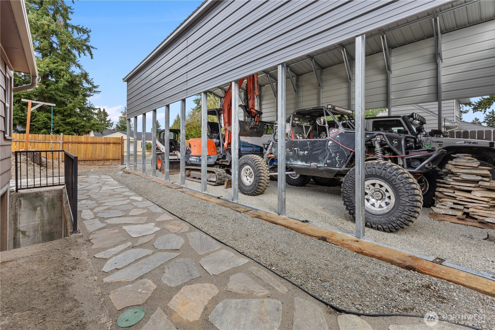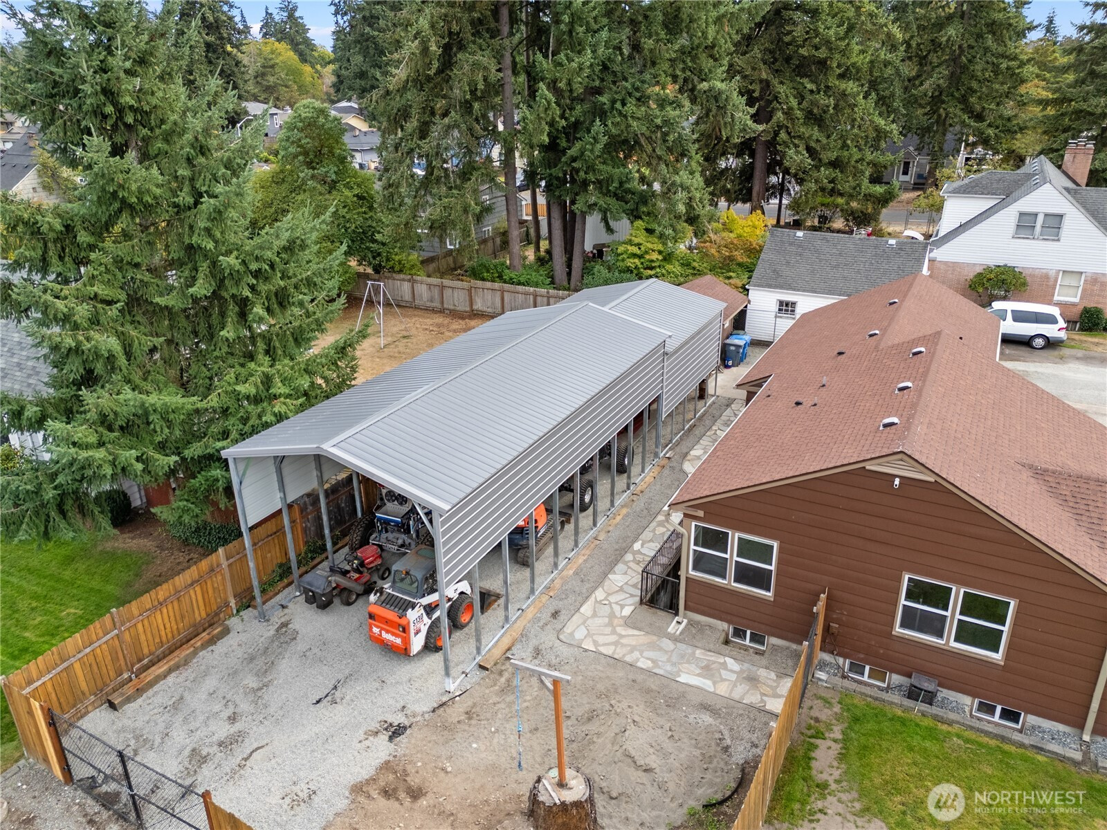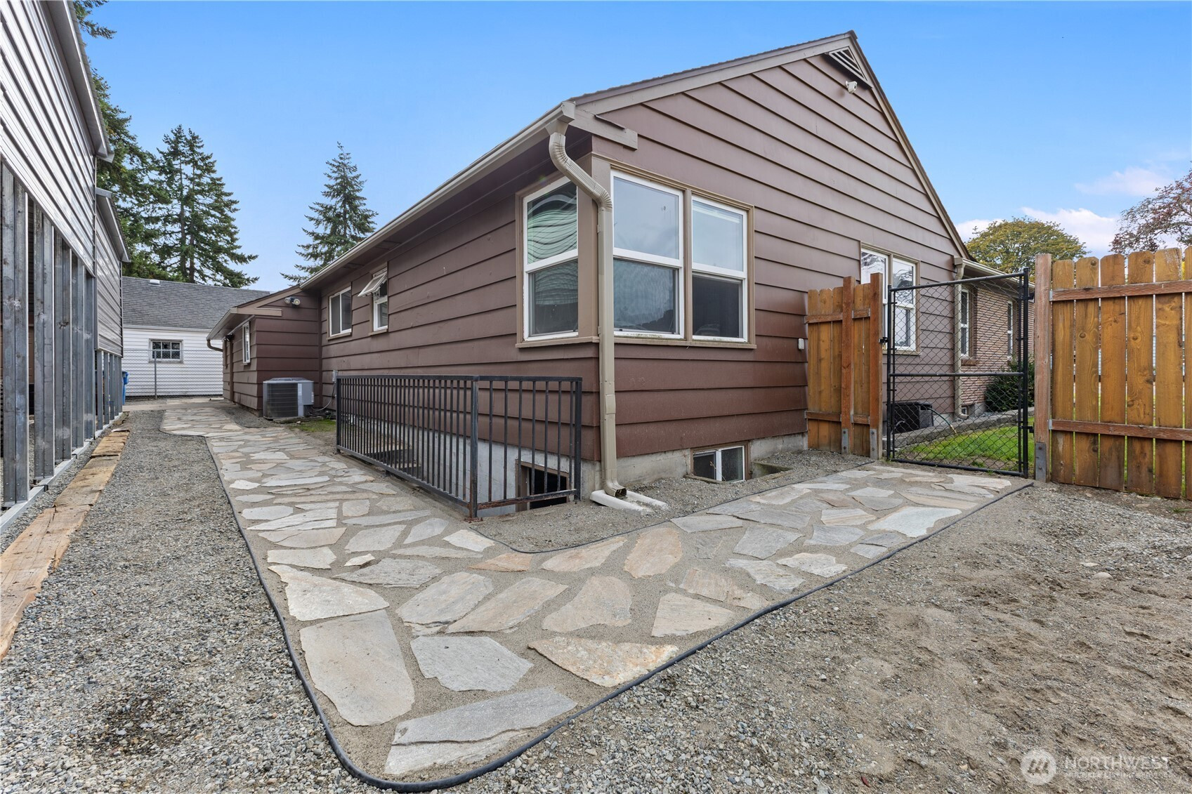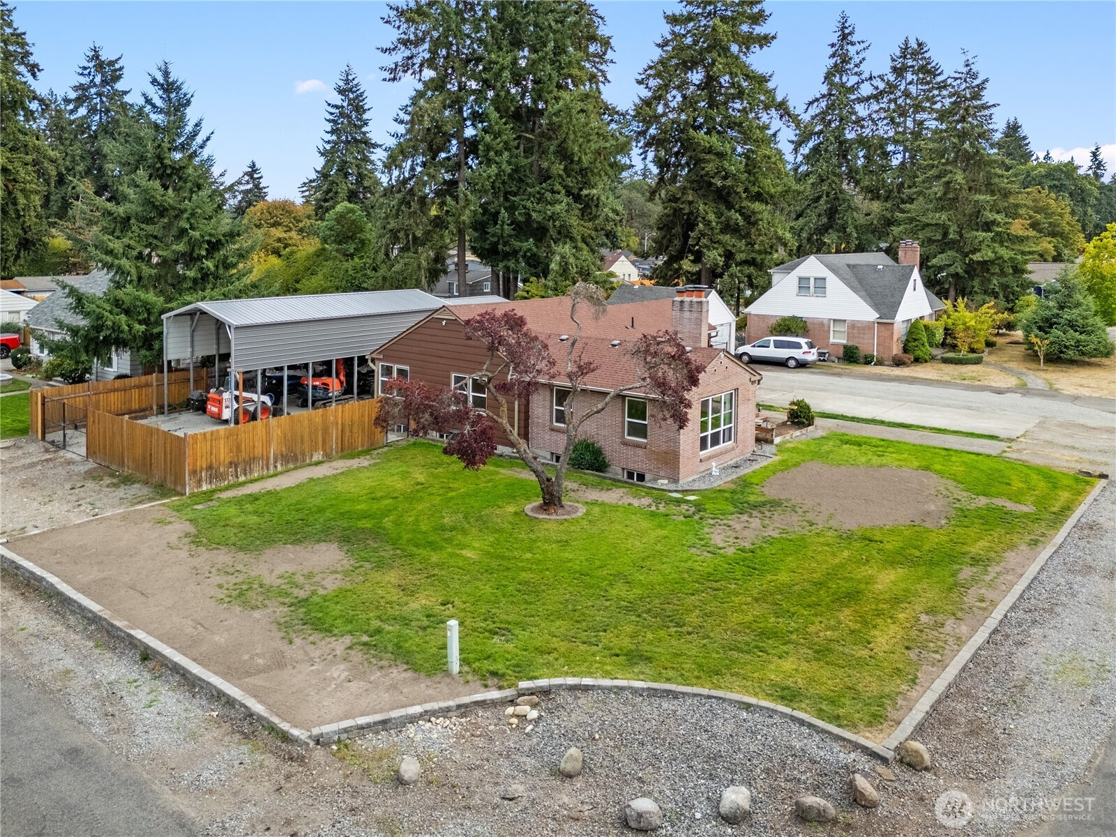 Prime Corner Lot in PLU Neighborhood! This quality, 4-bedroom rambler with a basement offers timeless craftsmanship & modern updates. Inside: original hardwoods, solid wood doors, and upgraded lighting. The Gourmet Kitchen features granite counters, dual stove, GE Profile appliances, & radiant heated tile floors. Bath has a high-tech shower. Lower level: flex area (4th bedroom or office) and large unfinished space with ADU potential with separate entrance! Key upgrades: NEW Heat Pump/Furnace, Milgard windows, laundry, & storage. Exterior: NEW flat stone path, 360 fencing, remote app-controlled sprinkler system, & security lighting. The HUGE Carport structure provides covered parking for 6+ vehicles + RV. Minutes from PLU, dining & shopping