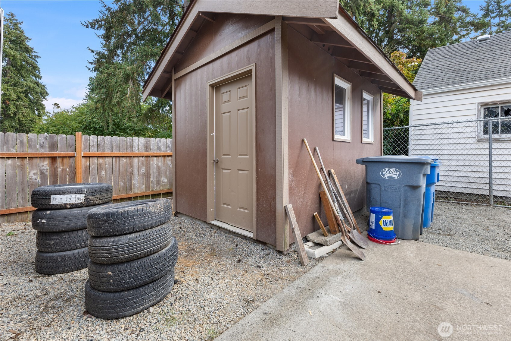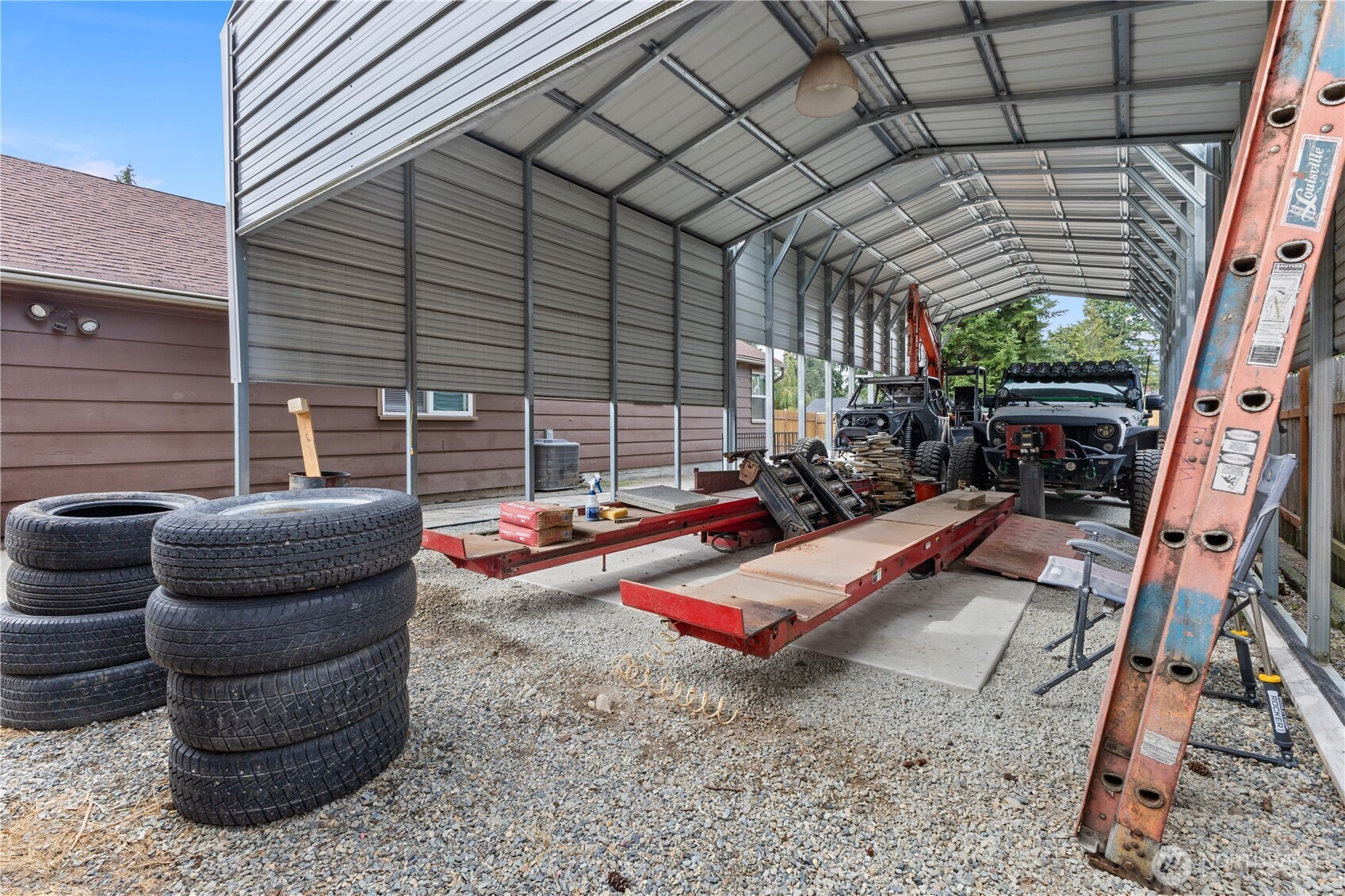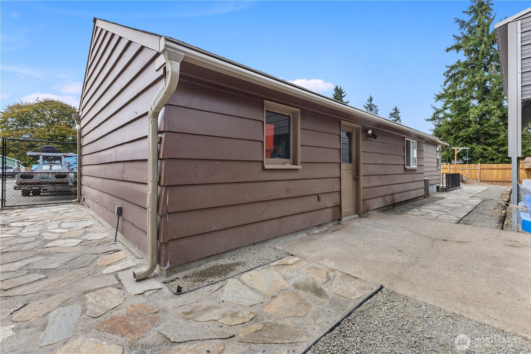 Prime Corner Lot in PLU Neighborhood! This quality, 4-bedroom rambler with a basement offers timeless craftsmanship & modern updates. Inside: original hardwoods, solid wood doors, and upgraded lighting. The Gourmet Kitchen features granite counters, dual stove, GE Profile appliances, & radiant heated tile floors. Bath has a high-tech shower. Lower level: flex area (4th bedroom or office) and large unfinished space with ADU potential with separate entrance! Key upgrades: NEW Heat Pump/Furnace, Milgard windows, laundry, & storage. Exterior: NEW flat stone path, 360 fencing, remote app-controlled sprinkler system, & security lighting. The HUGE Carport structure provides covered parking for 6+ vehicles + RV. Minutes from PLU, dining & shopping