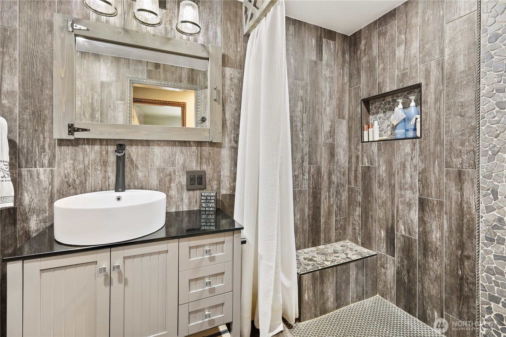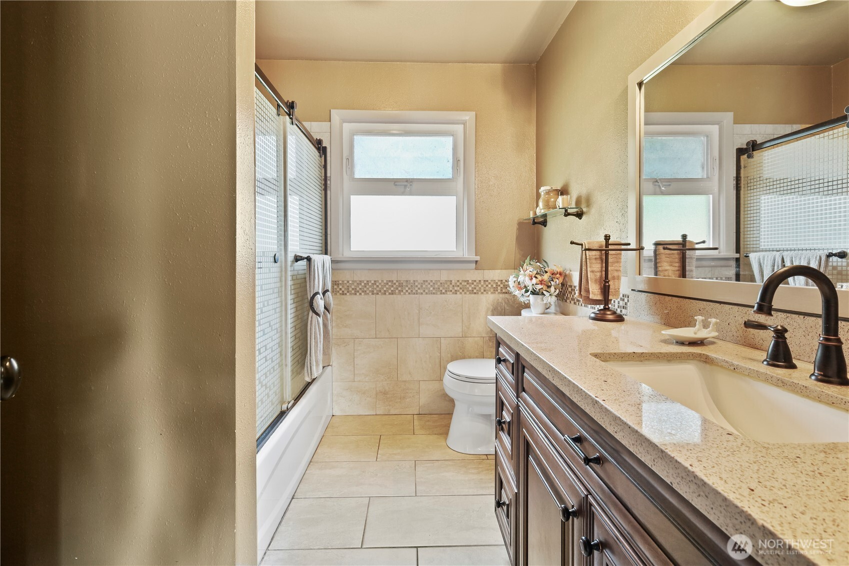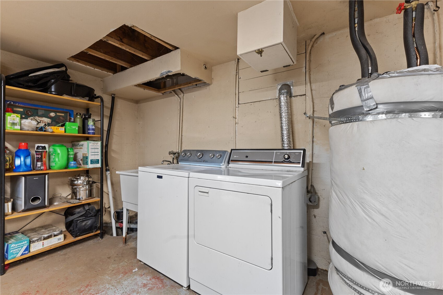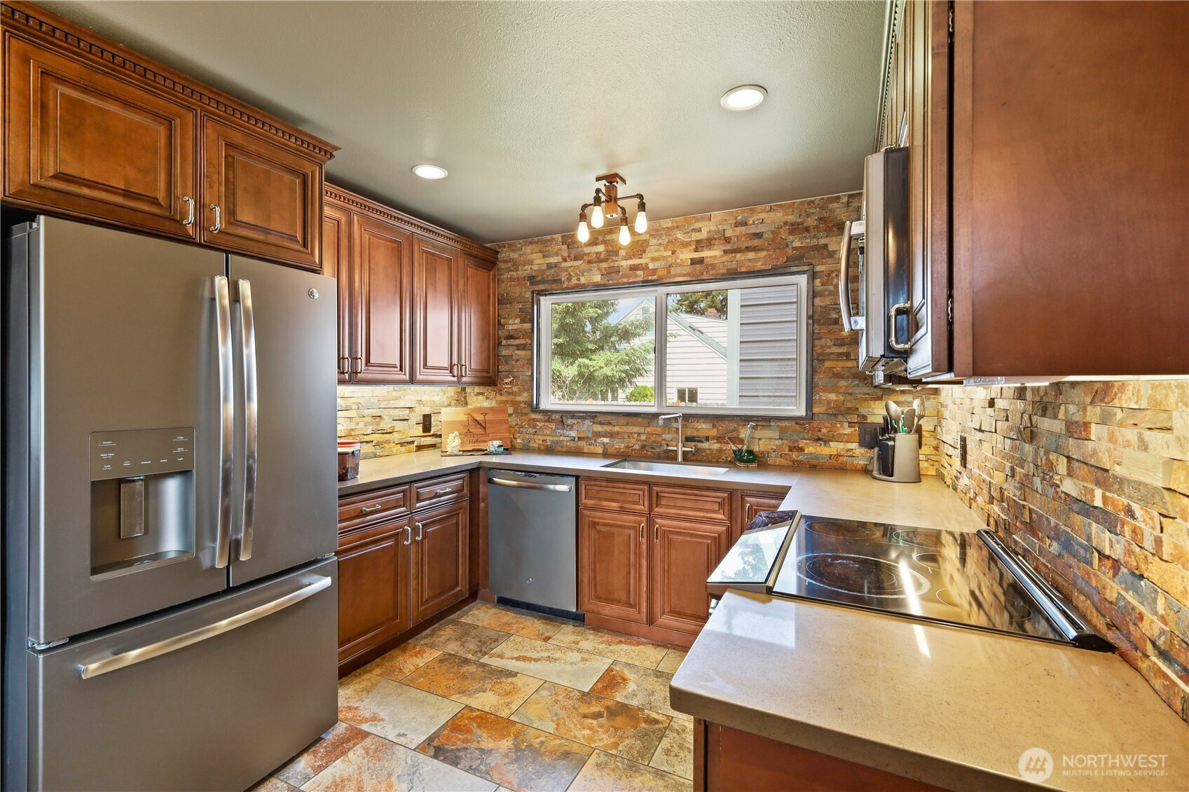 Prime Corner Lot in PLU Neighborhood! This quality, 4-bedroom rambler with a basement offers timeless craftsmanship & modern updates. Inside: original hardwoods, solid wood doors, and upgraded lighting. The Gourmet Kitchen features granite counters, dual stove, GE Profile appliances, & radiant heated tile floors. Bath has a high-tech shower. Lower level: flex area (4th bedroom or office) and large unfinished space with ADU potential with separate entrance! Key upgrades: NEW Heat Pump/Furnace, Milgard windows, laundry, & storage. Exterior: NEW flat stone path, 360 fencing, remote app-controlled sprinkler system, & security lighting. The HUGE Carport structure provides covered parking for 6+ vehicles + RV. Minutes from PLU, dining & shopping