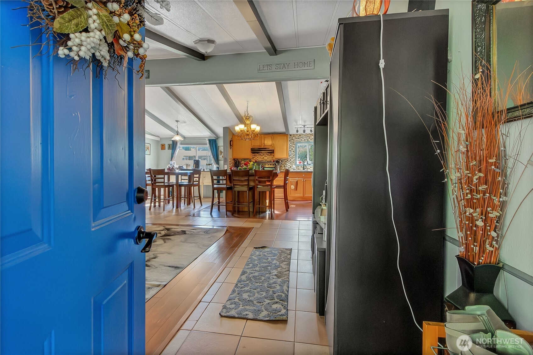 Affordable living in ALL-AGES Shiloh Park! This 3-bed, 2-bath, 1,404 sq ft home sits on a rare .29-acre leased lot with mature landscaping, fruit trees, and great parking. Enjoy a refreshed kitchen with an island, granite tile counters, updated cabinets, tile backsplash, and modern appliances—all included! Stay comfortable year-round with a cozy wood stove and efficient mini-split for heat and A/C. Relax on the covered back deck and appreciate the fully fenced back yard which has a hot tub, greenhouse, fish pond, two storage sheds and even comes with firewood. The roof, gutters, and siding were replaced in 2014. Shiloh Park is an all-ages community with spacious lots and affordable space rent. Don’t miss this opportunity!